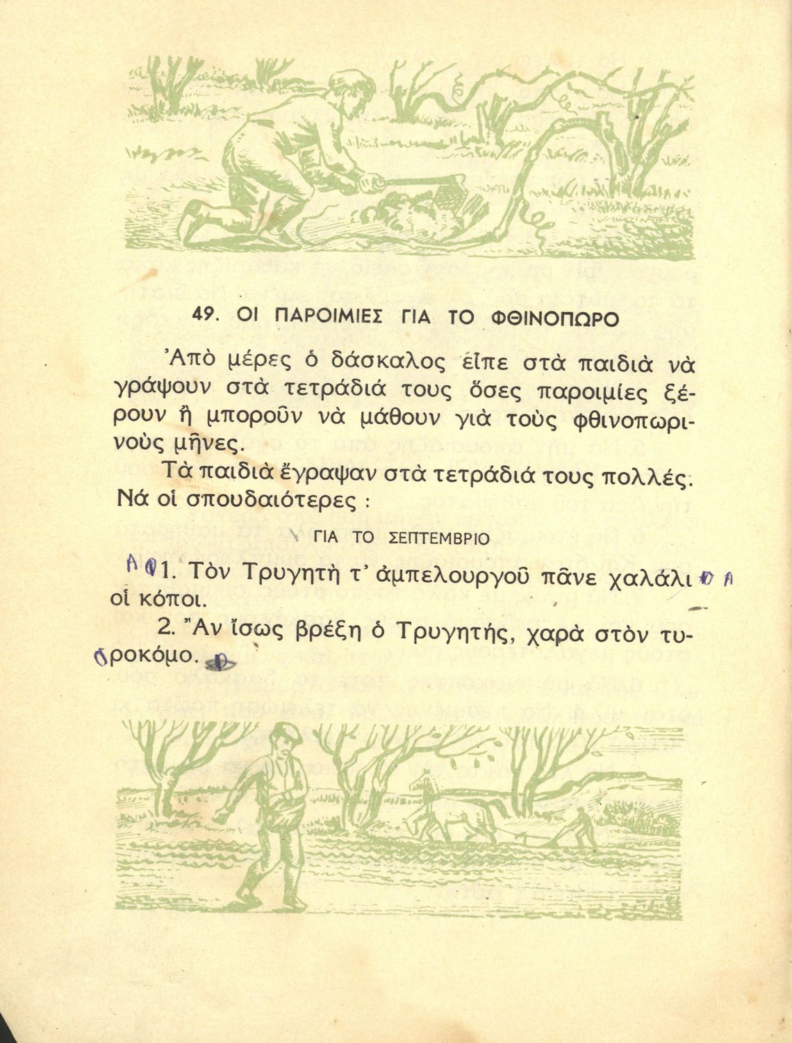 Αναγνωστικό Δ' Δημοτικού που είναι χωρισμένο σύμφωνα με τις εποχές του χρόνου και περιλαμβάνει ποιήματα και πεζά εμπνευσμένα από τη ζωή στην ύπαιθρο, την εθνική, οικογενειακή και κοινωνική ζωή, τη θρησκευτική ...