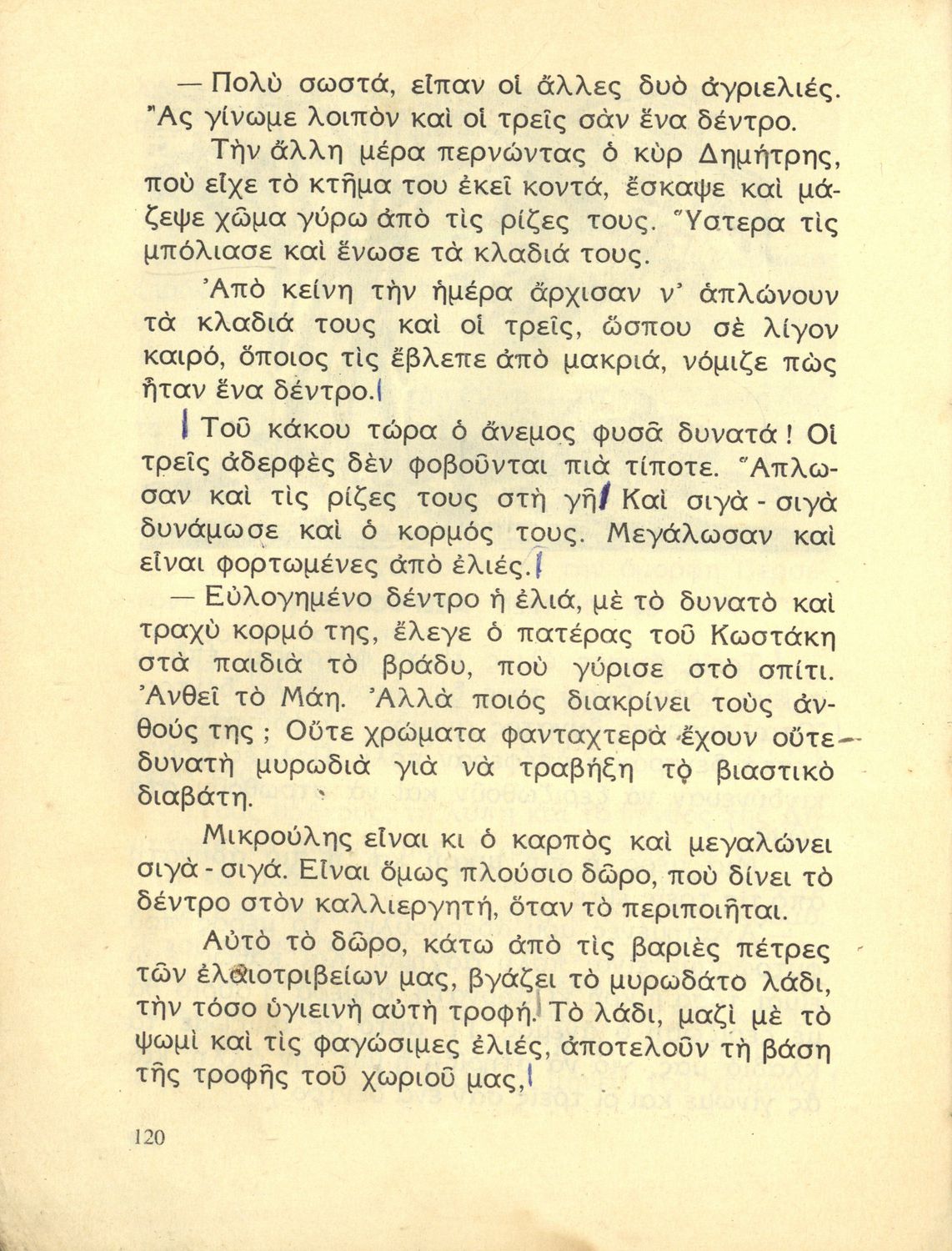 Αναγνωστικό Ε΄ Δημοτικού που περιέχει κείμενα εμπνευσμένα από την εθνική, κοινωνική και οικογενειακή ζωή και την ελληνική φύση, μυθολογία και ιστορία.