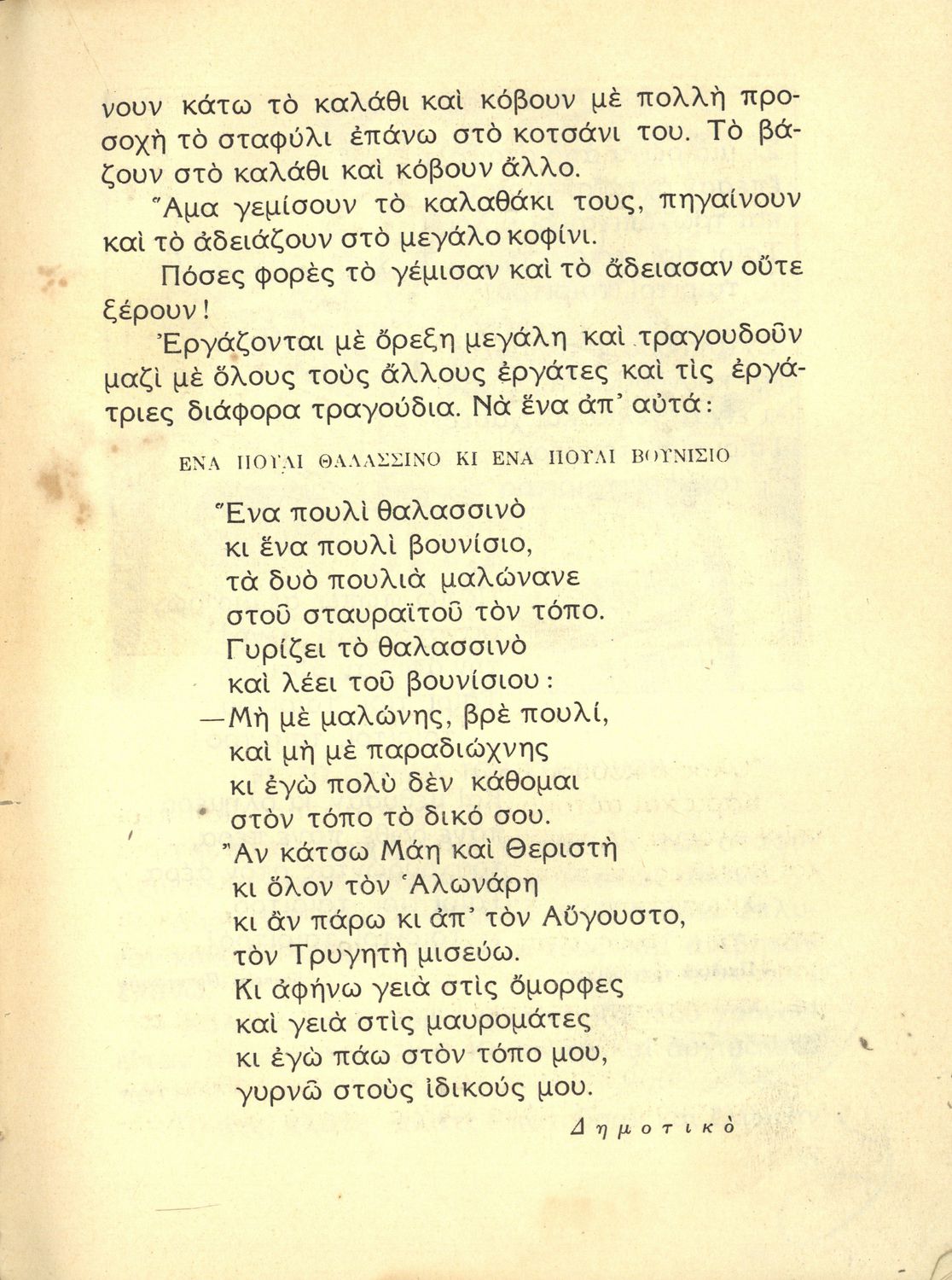 Αναγνωστικό Γ΄ Δημοτικού που περιέχει πεζά και ποιήματα εμπνευσμένα από την κοινωνική και οικογενειακή ζωή του τόπου. Περιέχει και ερωτήσεις κατανόησης και λεξιλογικές ασκήσεις.