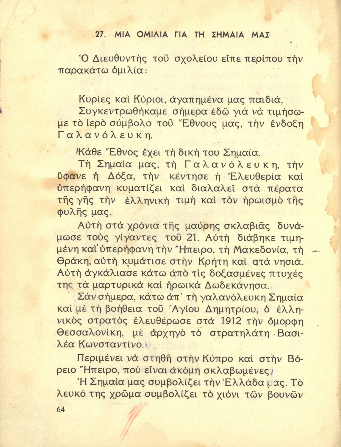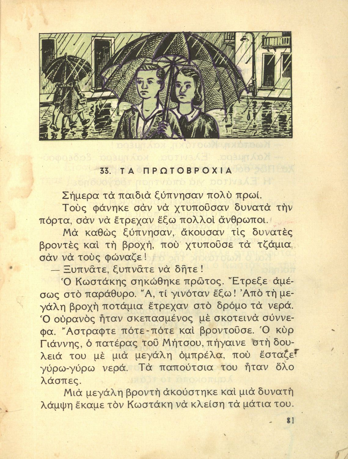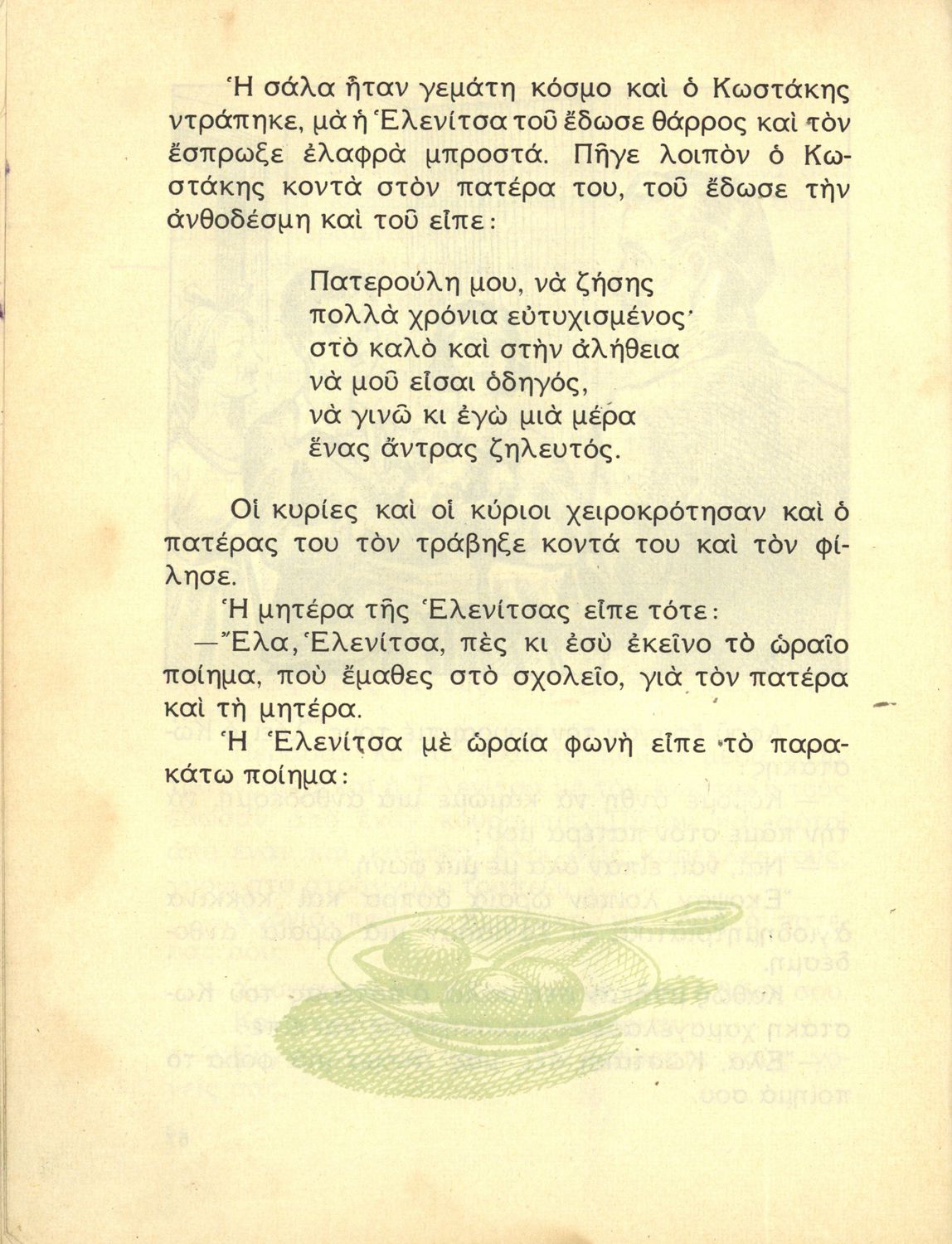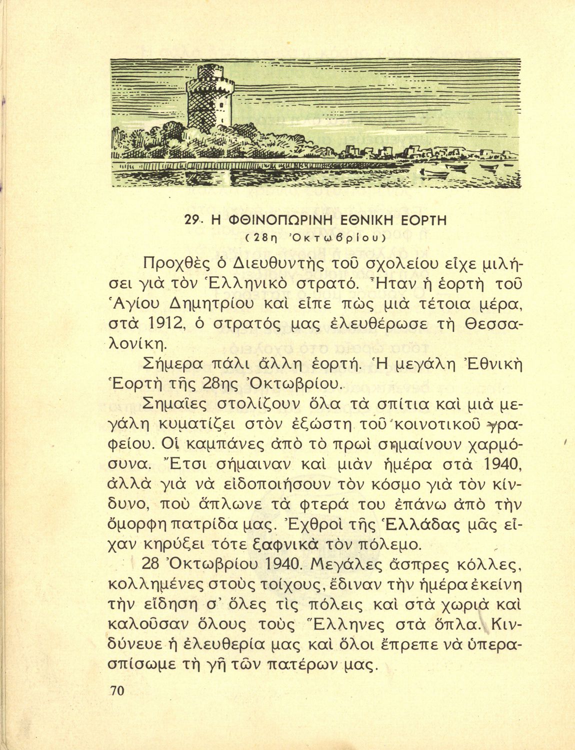 Αναγνωστικό της ΣΤ΄ Δημοτικού που κυκλοφόρησε σε 7.000 αντίτυπα 25 ημέρες πριν την 4η Αυγούστου 1936, οπότε κατά την επόμενη σχολική χρονιά διδάχτηκε ελάχιστα και η έκδοσή του με αυτή την μορφή σταμάτησε.