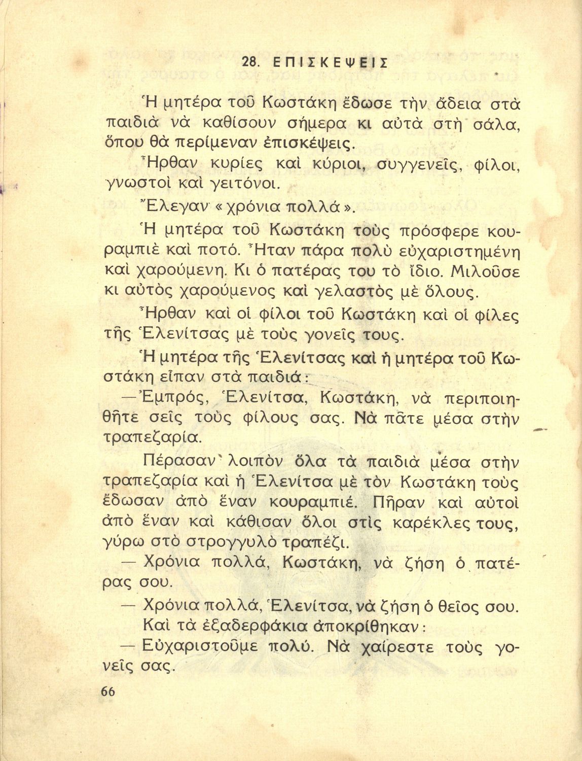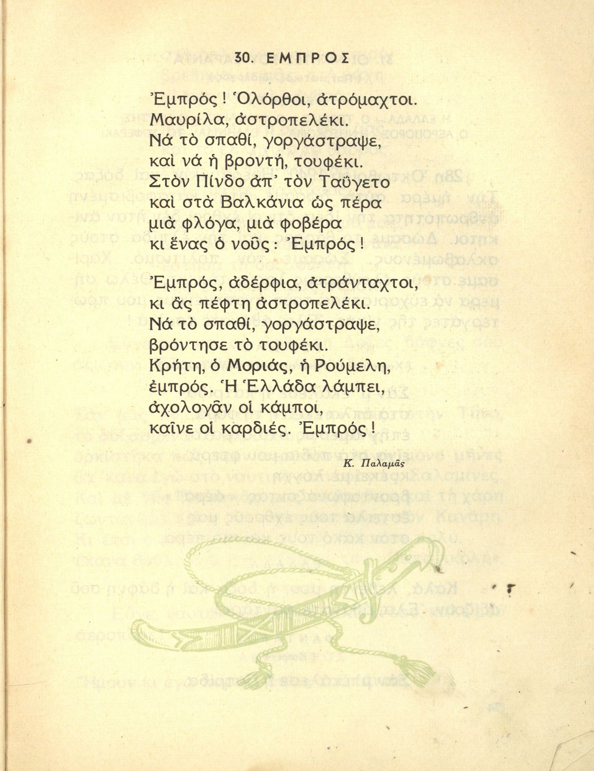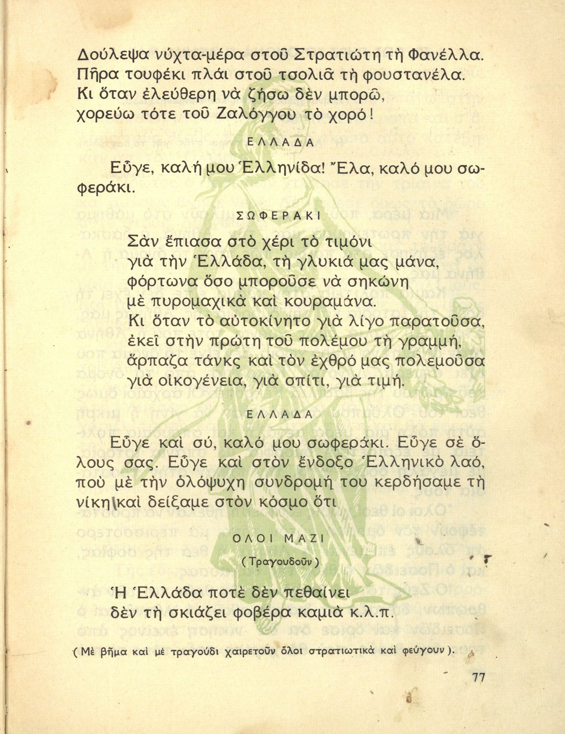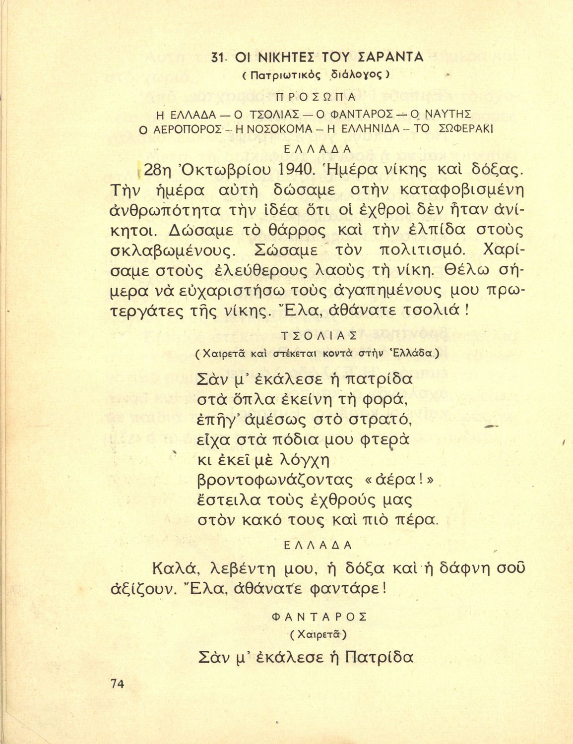 Αναγνωστικό της ΣΤ΄ Δημοτικού που κυκλοφόρησε σε 7.000 αντίτυπα 25 ημέρες πριν την 4η Αυγούστου 1936, οπότε κατά την επόμενη σχολική χρονιά διδάχτηκε ελάχιστα και η έκδοσή του με αυτή την μορφή σταμάτησε.