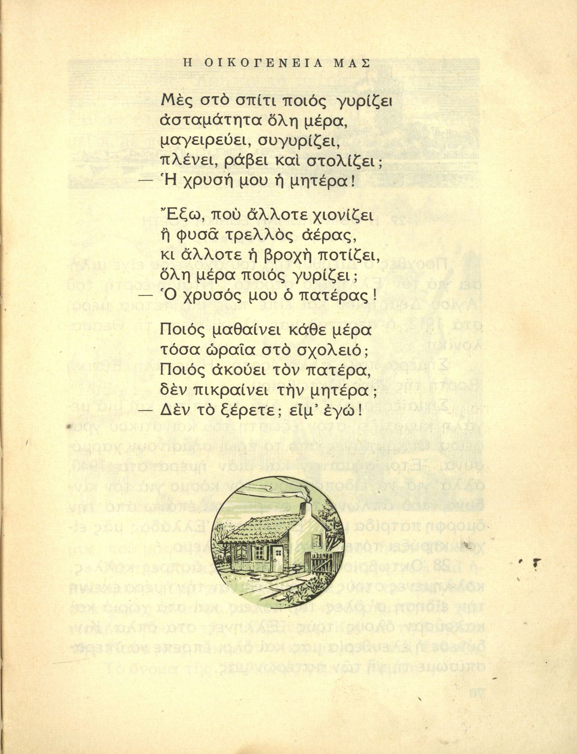 Αναγνωστικό Ε΄ Δημοτικού που περιέχει πεζά και ποιήματα εμπνευσμένα από τη θρησκευτική, εθνική, κοινωνική ζωή καθώς και από τις ασχολίες των Ελλήνων, την αρχαία και σύγχρονη ελληνική ιστορία και τον πολιτισμό.