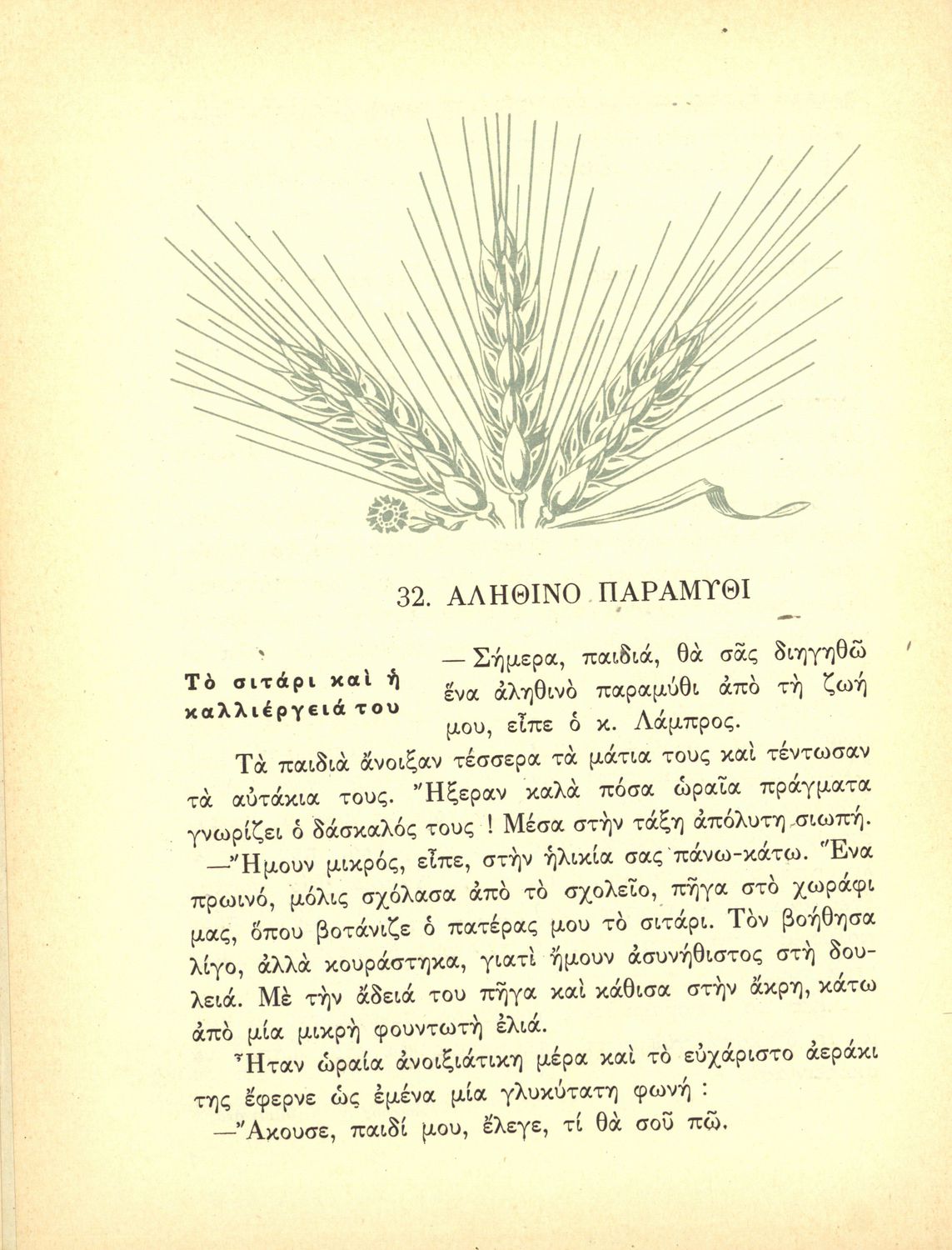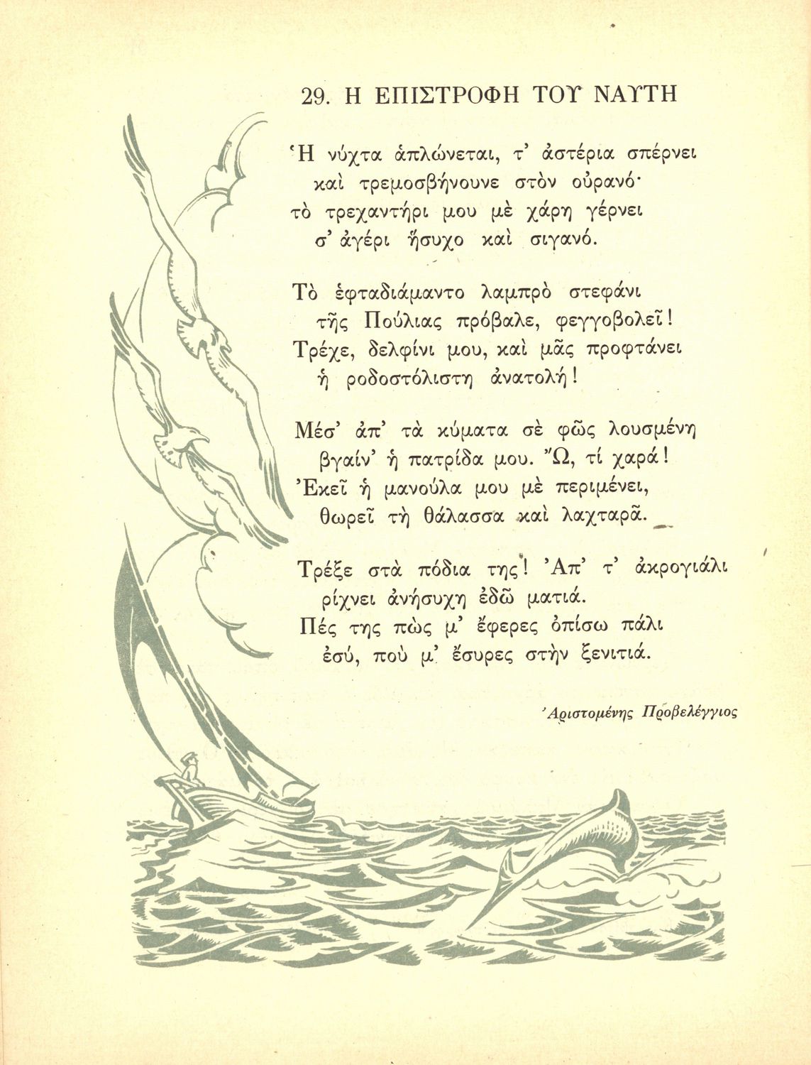 Αναγνωστικό Ε΄ Δημοτικού που περιέχει πεζά και ποιήματα εμπνευσμένα από τη θρησκευτική, εθνική, κοινωνική ζωή καθώς και από τις ασχολίες των Ελλήνων, την αρχαία και σύγχρονη ελληνική ιστορία και τον πολιτισμό.
