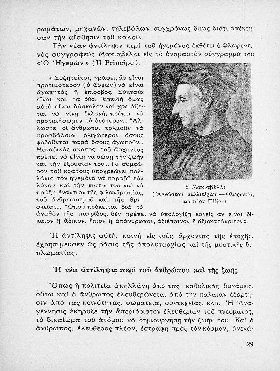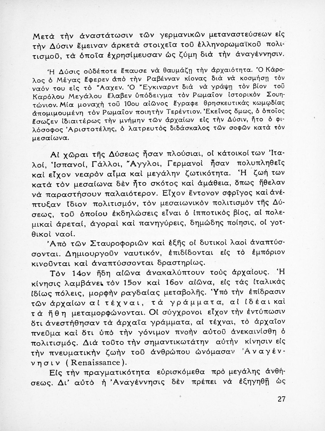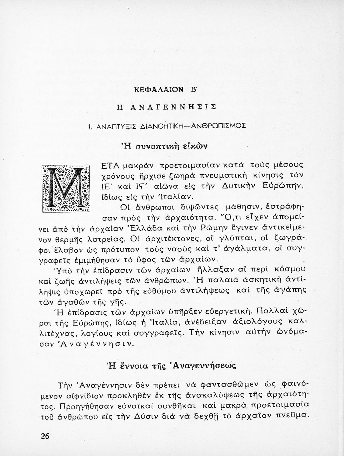 Βαθμίδα εκπαίδευσης: Δευτεροβάθμια Τάξη: Ε' Γυμνασίου Μάθημα: Ιστορία Γλώσσα: Απλή καθαρεύουσα Παρουσίαση περιεχομένου: Σχολικό εγχειρίδιο Ιστορίας Ε΄ Γυμνασίου που καλύπτει την περίοδο της Αναγέννησης και του Διαφωτισμού στην Ευρώπη και την προετοιμασία της Ελληνικής Επανάστασης. |