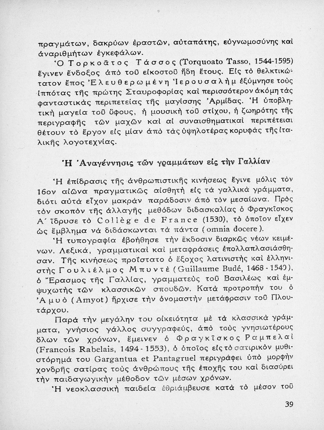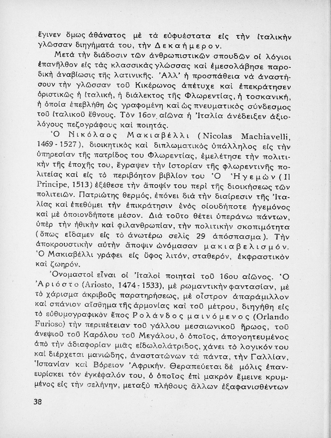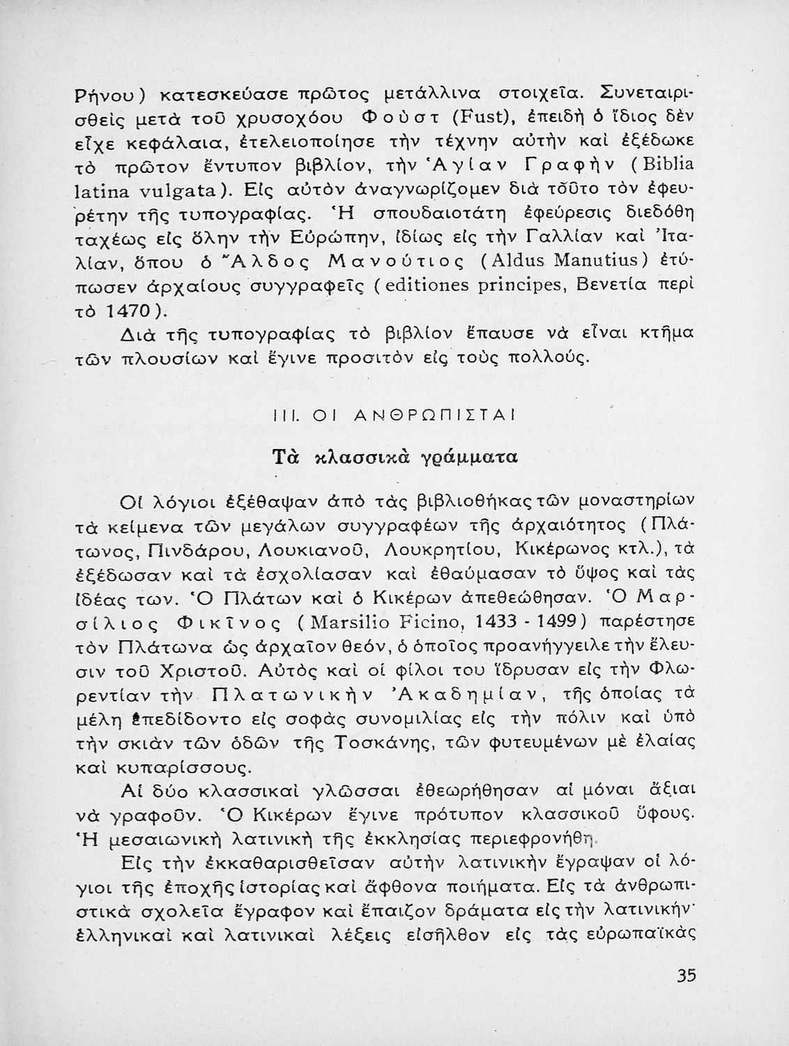 Βαθμίδα εκπαίδευσης: Δευτεροβάθμια Τάξη: Ε' Γυμνασίου Μάθημα: Ιστορία Γλώσσα: Απλή καθαρεύουσα Παρουσίαση περιεχομένου: Σχολικό εγχειρίδιο Ιστορίας Ε΄ Γυμνασίου που καλύπτει την περίοδο της Αναγέννησης και του Διαφωτισμού στην Ευρώπη και την προετοιμασία της Ελληνικής Επανάστασης. |