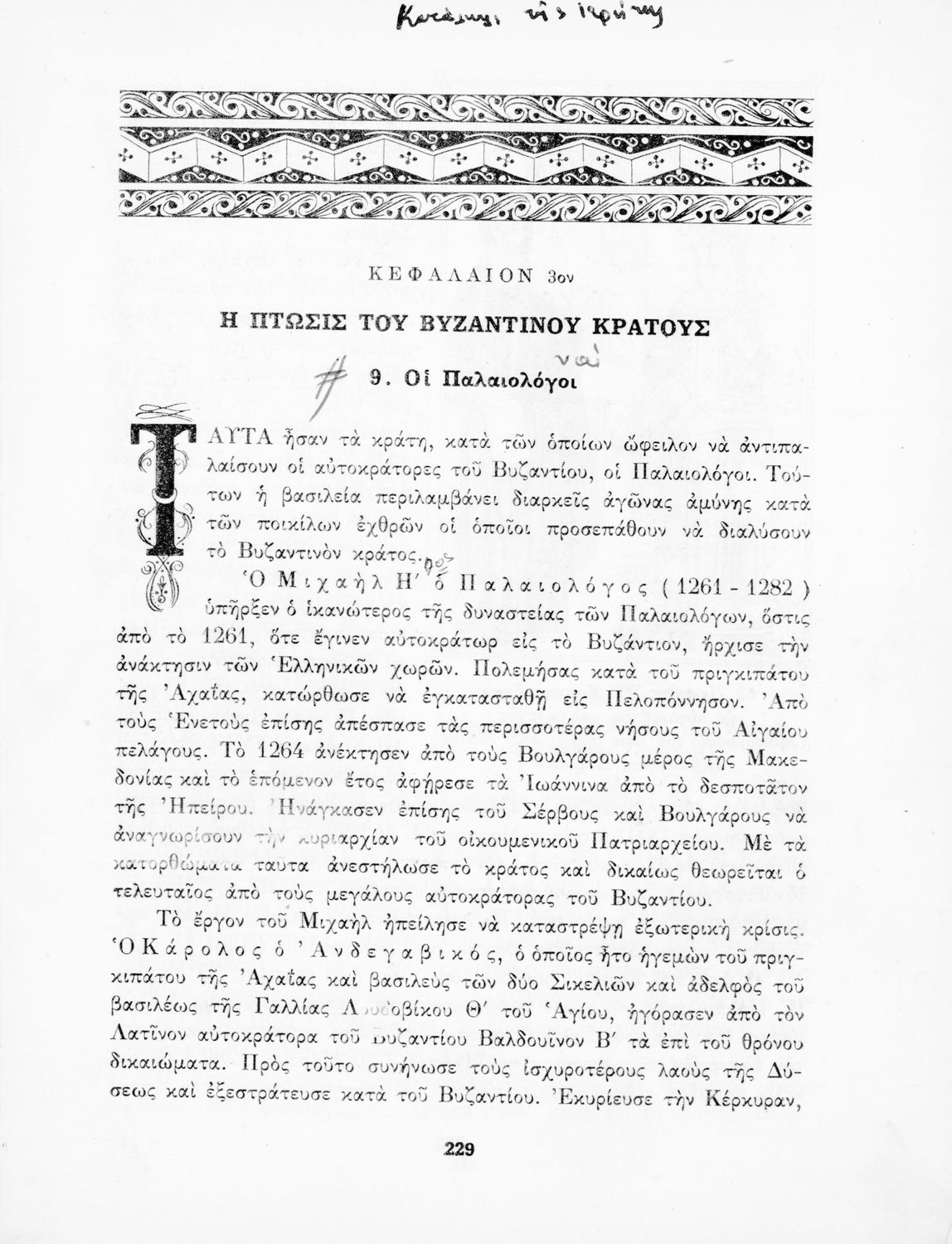 Τίτλος: Ιστορία των Μέσων Χρόνων από του Μ. Κωνσταντίνου μέχρι της Αλώσεως της Κωνσταντινουπόλεως υπό των Τούρκων. Δια την Δ΄ Γυμνασίου