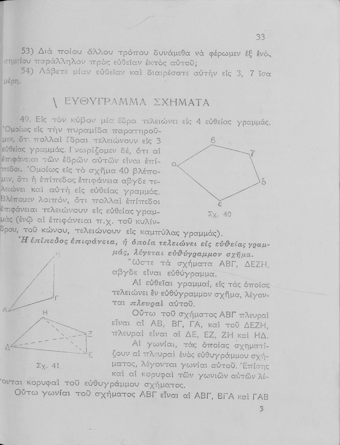 Σχολικό εγχειρίδιο Γεωμετρίας για τα Γυμνάσια και τα Αστικά Σχολεία που είναι χωρισμένο σε Επιπεδομετρία και Στερεομετρία και περιλαμβάνει θεωρία και ασκήσεις.
