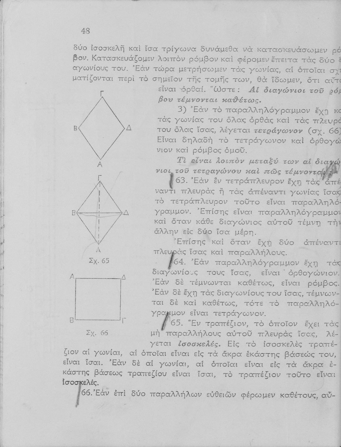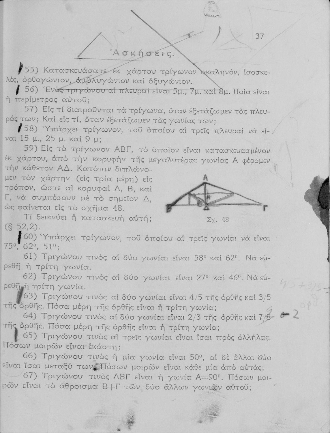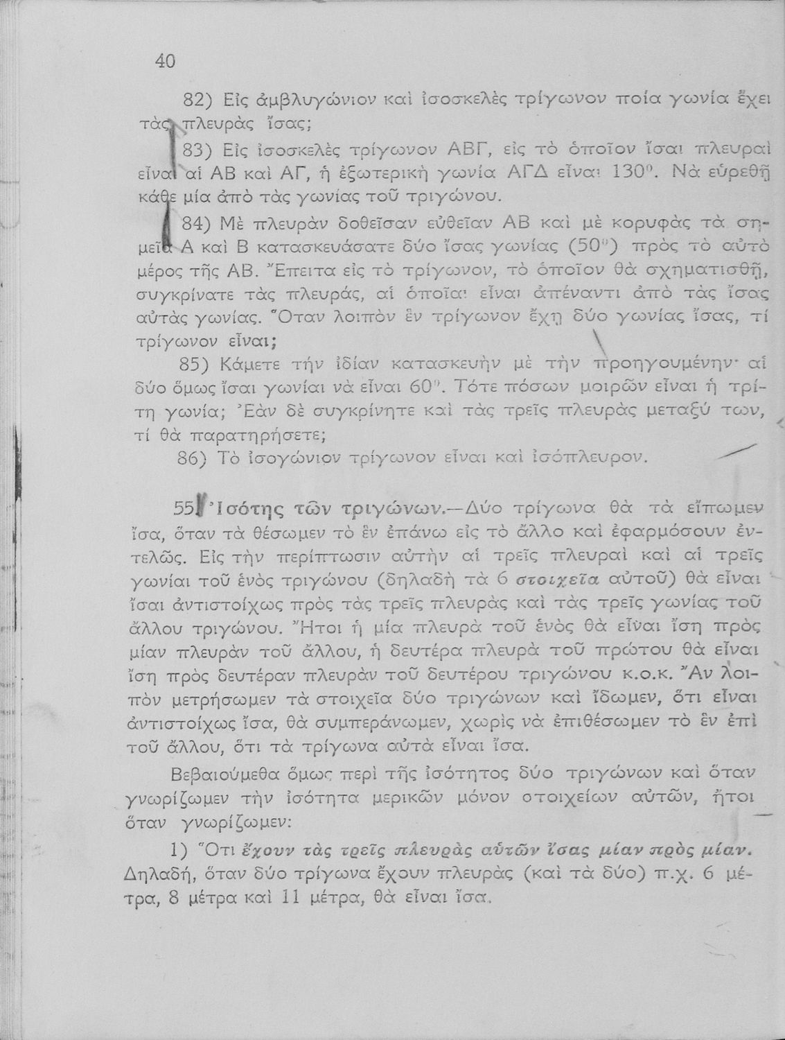 Σχολικό εγχειρίδιο Γεωμετρίας για τα Γυμνάσια και τα Αστικά Σχολεία που είναι χωρισμένο σε Επιπεδομετρία και Στερεομετρία και περιλαμβάνει θεωρία και ασκήσεις.