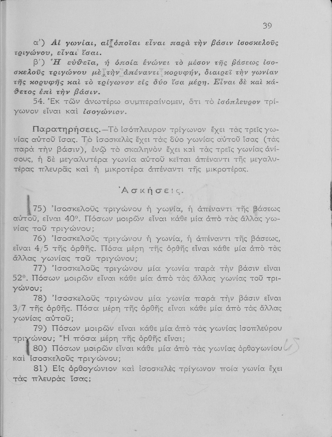 Σχολικό εγχειρίδιο Γεωμετρίας για τα Γυμνάσια και Αστικά Σχολεία που περιλαμβάνει θεωρία και ασκήσεις και είναι χωρισμένο σε Επιπεδομετρία και Στερεομετρία.