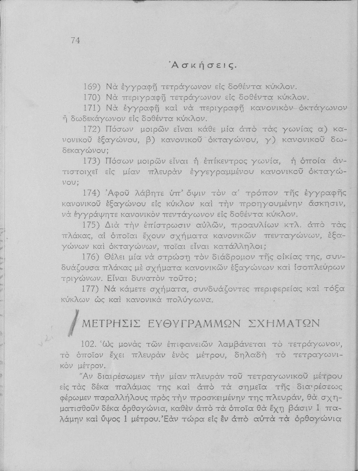 Σχολικό εγχειρίδιο Γεωμετρίας για τα Γυμνάσια και τα Αστικά Σχολεία που είναι χωρισμένο σε Επιπεδομετρία και Στερεομετρία και περιλαμβάνει θεωρία και ασκήσεις.