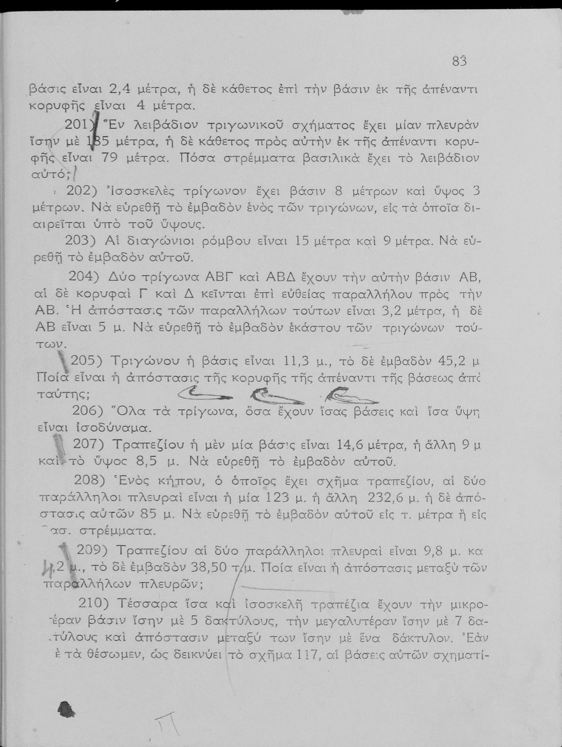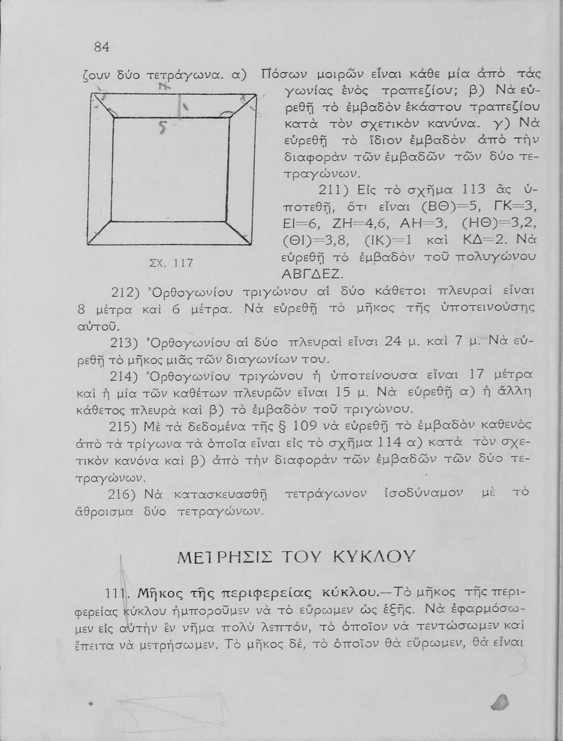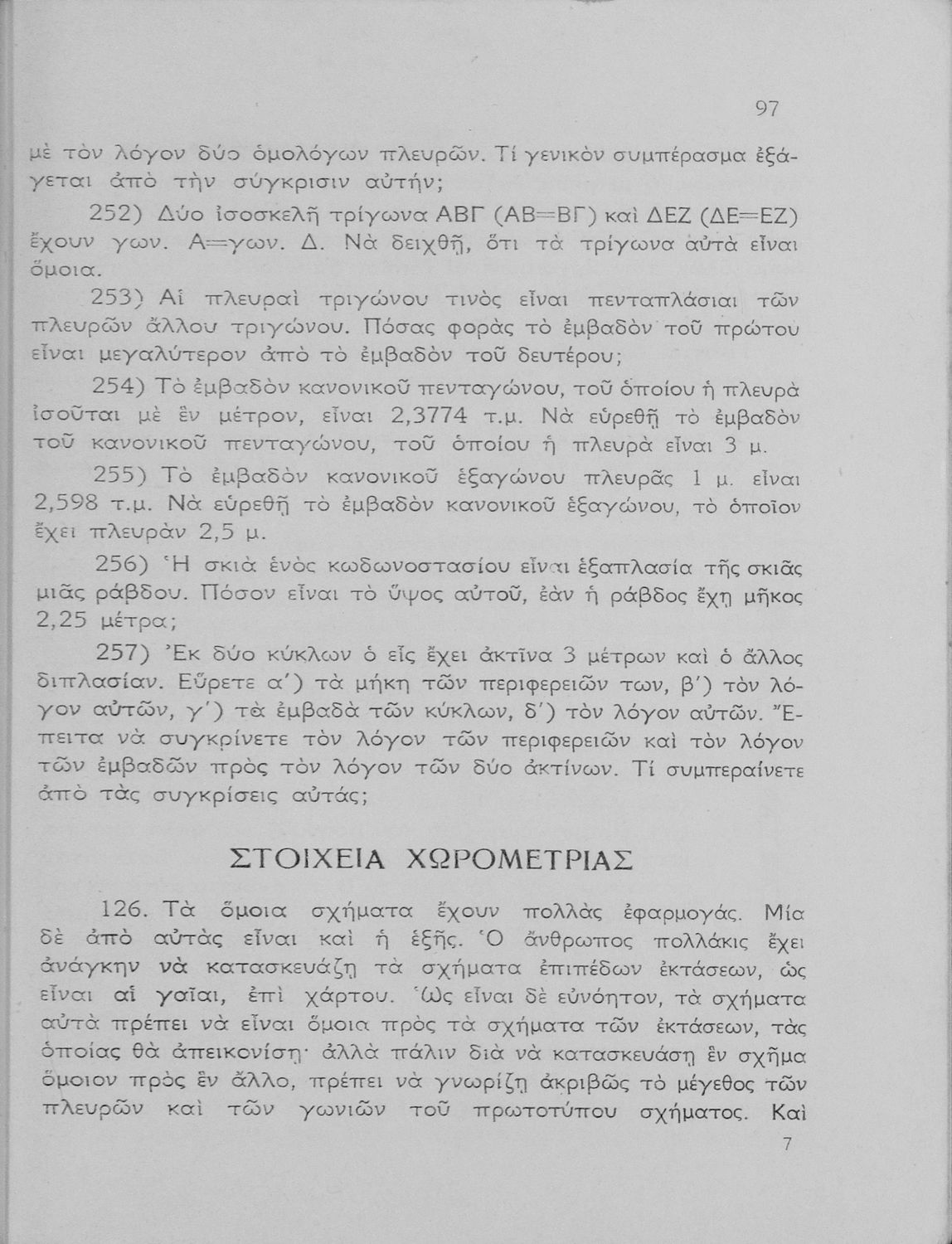 Σχολικό εγχειρίδιο Γεωμετρίας για τα Γυμνάσια και τα Αστικά Σχολεία που είναι χωρισμένο σε Επιπεδομετρία και Στερεομετρία και περιλαμβάνει θεωρία και ασκήσεις.