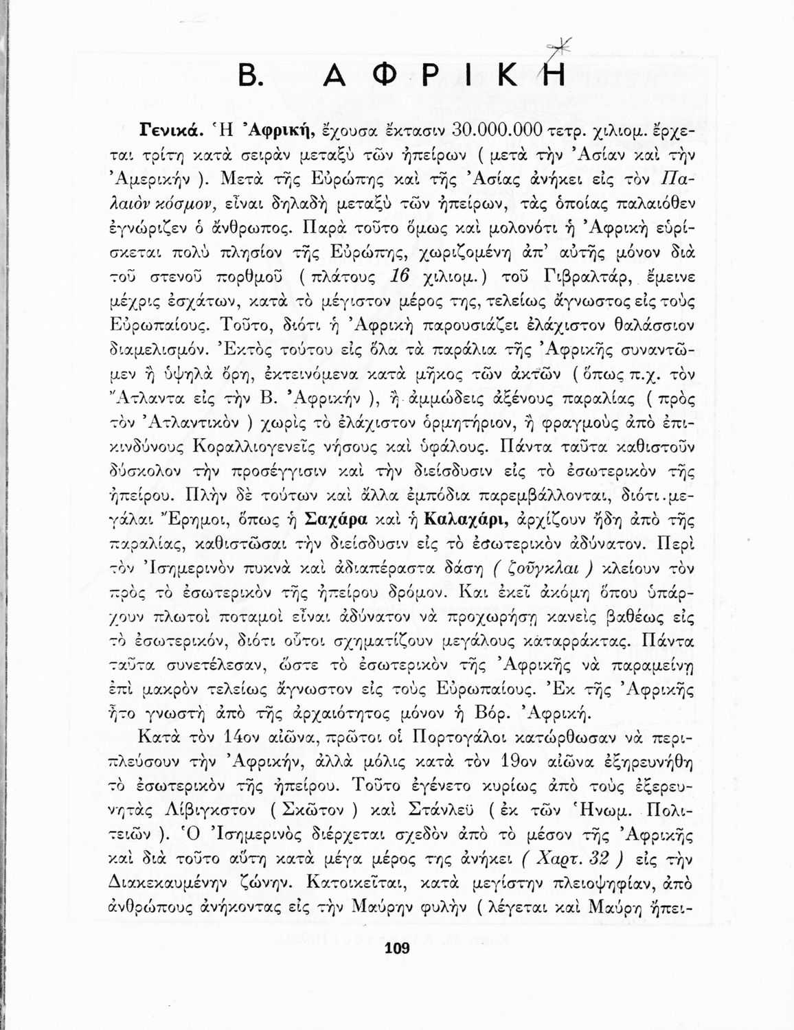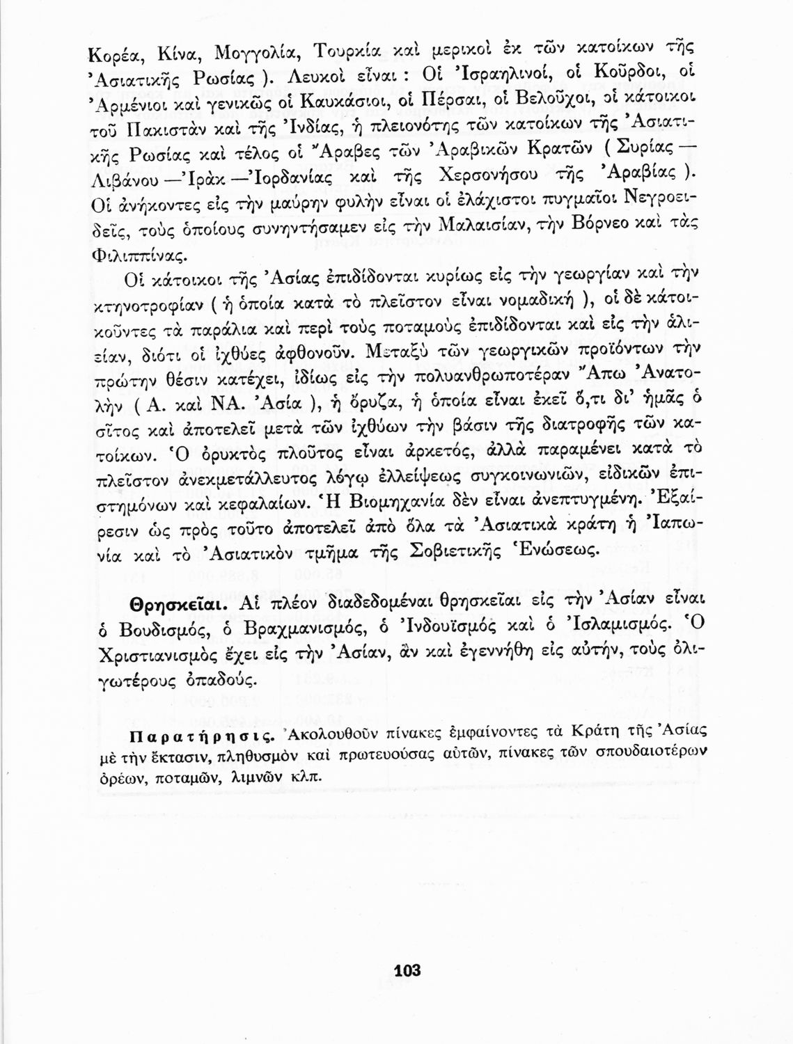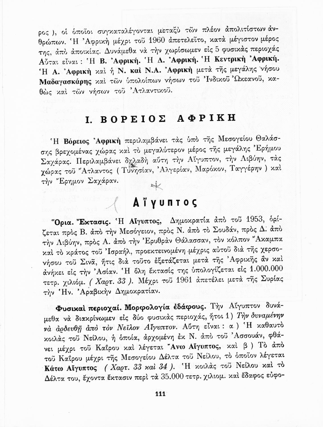 Σχολικό εγχειρίδιο Γεωγραφίας που εξετάζει ενδεικτικές χώρες και περιοχές από τις πέντε ηπείρους εκτός της Ευρώπης από γεωφυσική και οικονομική πλευρά. Φέρει το σύμβολο της δικτατορίας.
