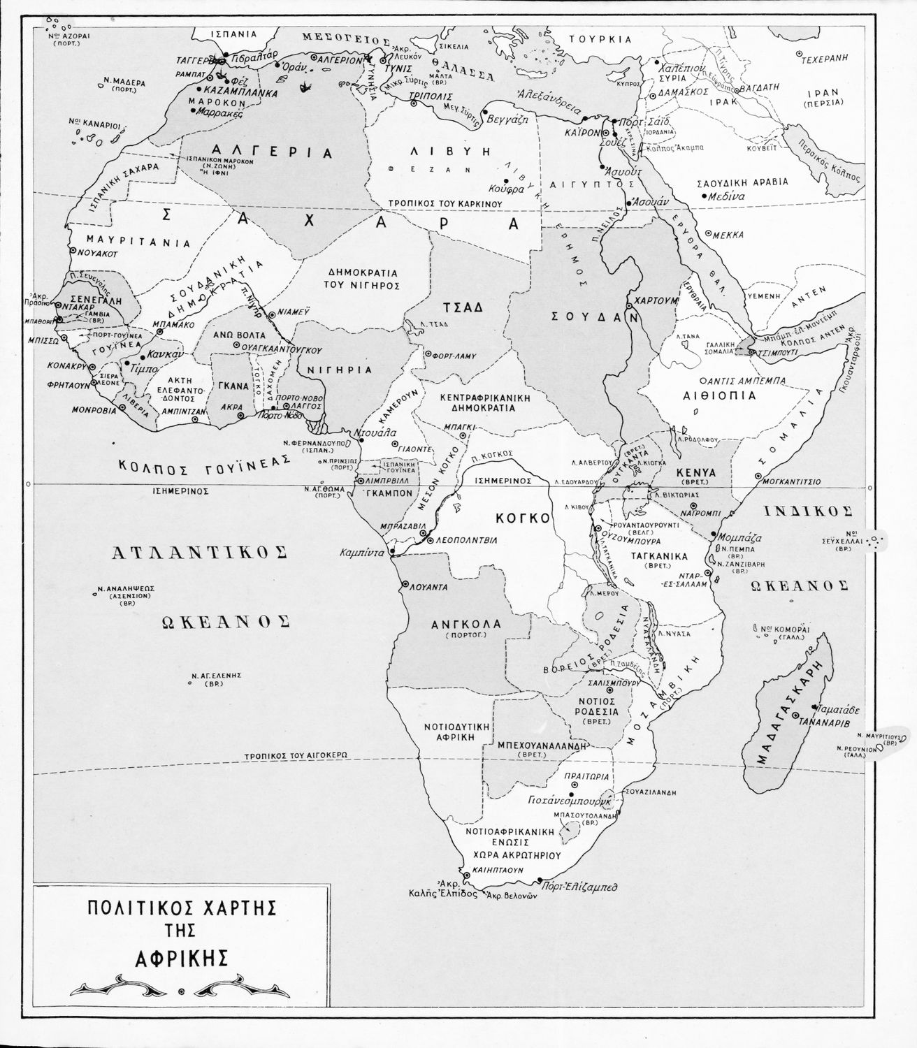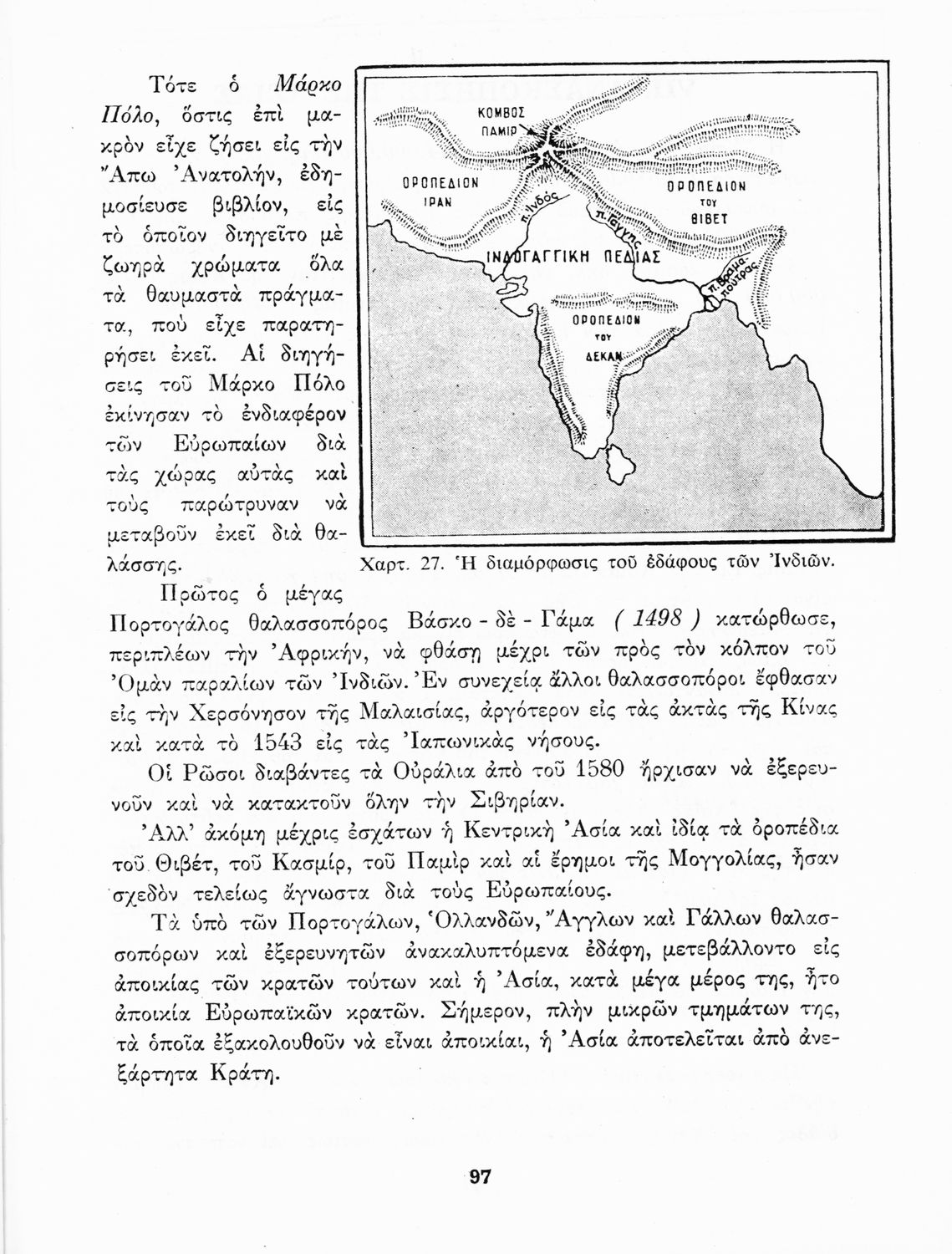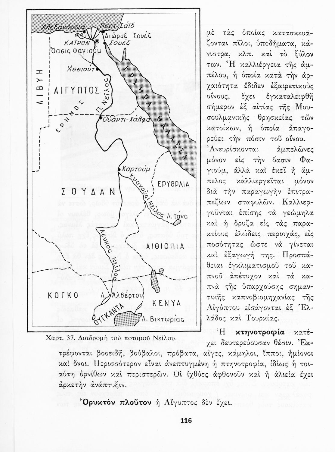 Σχολικό εγχειρίδιο Γεωγραφίας που εξετάζει ενδεικτικές χώρες και περιοχές από τις πέντε ηπείρους εκτός της Ευρώπης από γεωφυσική και οικονομική πλευρά. Φέρει το σύμβολο της δικτατορίας.