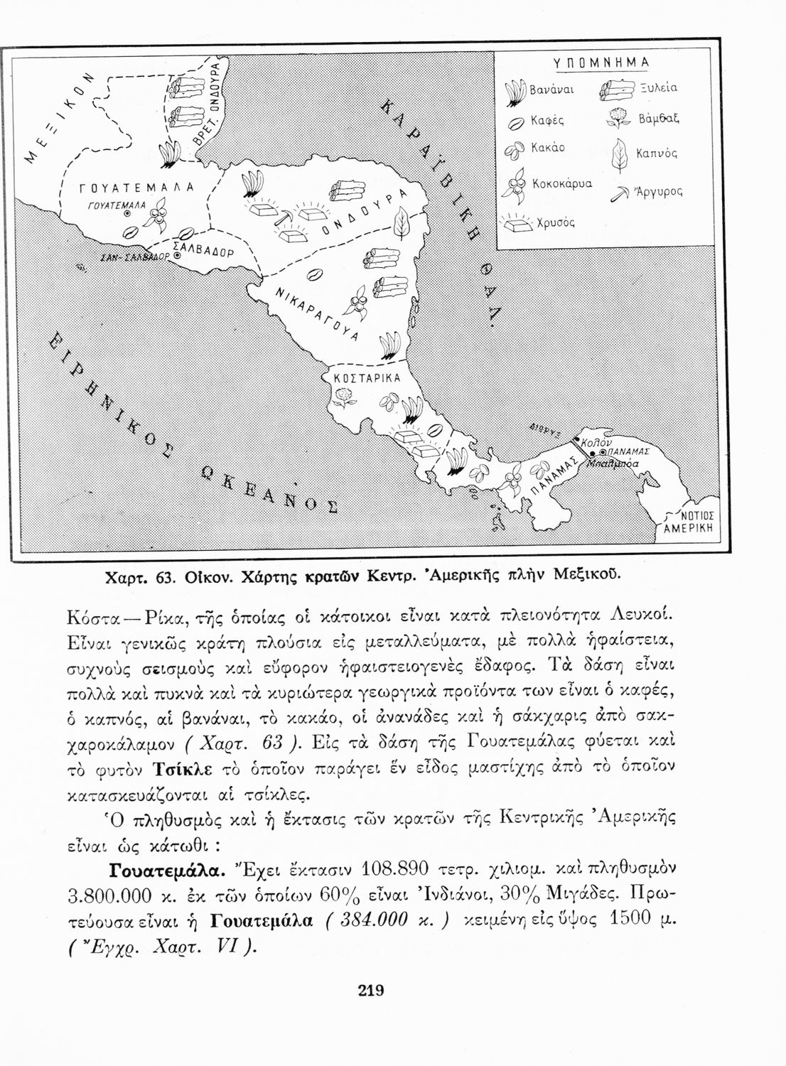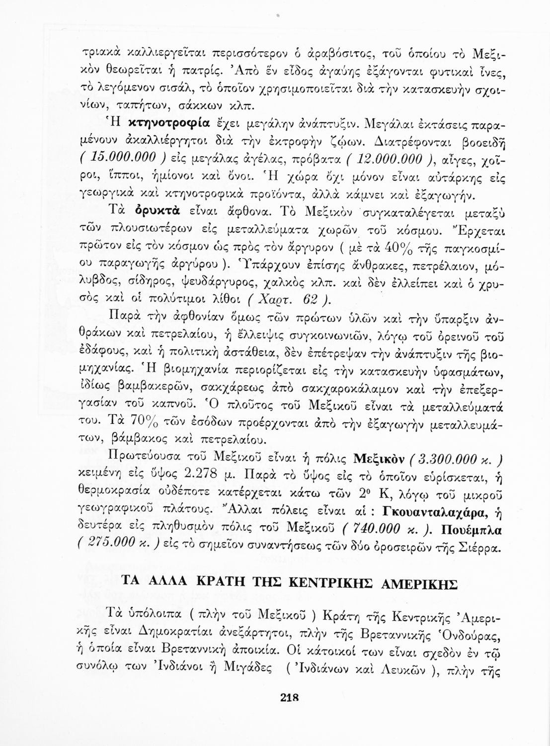 Σχολικό εγχειρίδιο Γεωγραφίας που εξετάζει ενδεικτικές χώρες και περιοχές από τις πέντε ηπείρους εκτός της Ευρώπης από γεωφυσική και οικονομική πλευρά. Φέρει το σύμβολο της δικτατορίας.