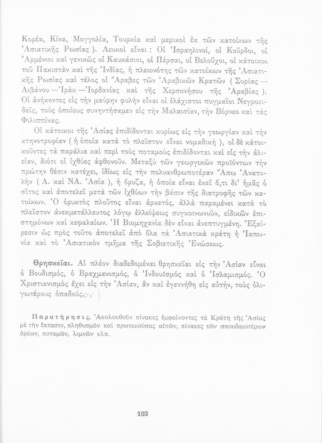 Μάθημα: Γεωγραφία Γλώσσα: Απλή καθαρεύουσα Παρουσίαση περιεχομένου: Σχολικό εγχειρίδιο Γεωγραφίας που εξετάζει ενδεικτικές χώρες και περιοχές από τις πέντε ηπείρους εκτός της Ευρώπης από γεωφυσική και οικονομική πλευρά. |