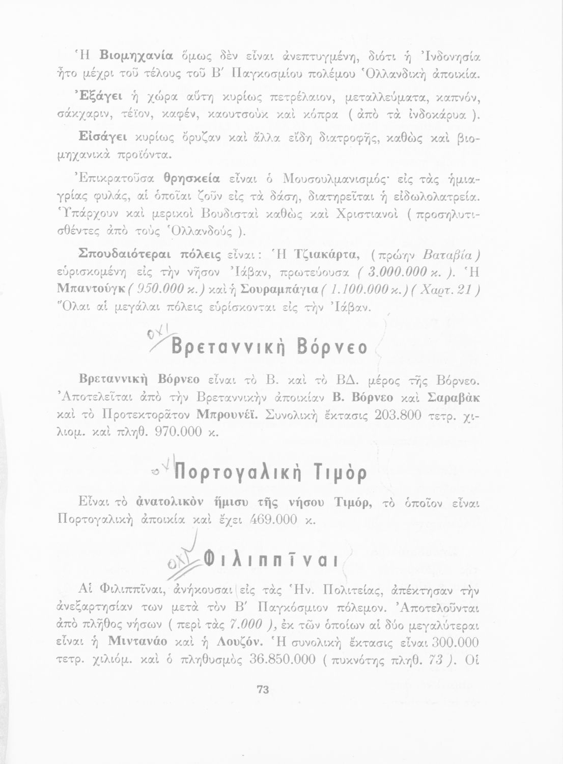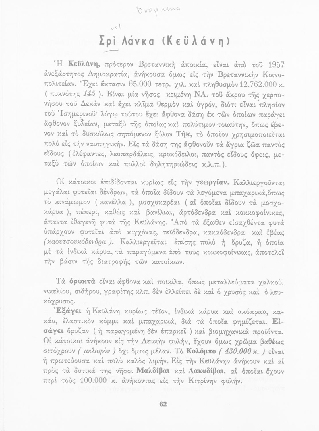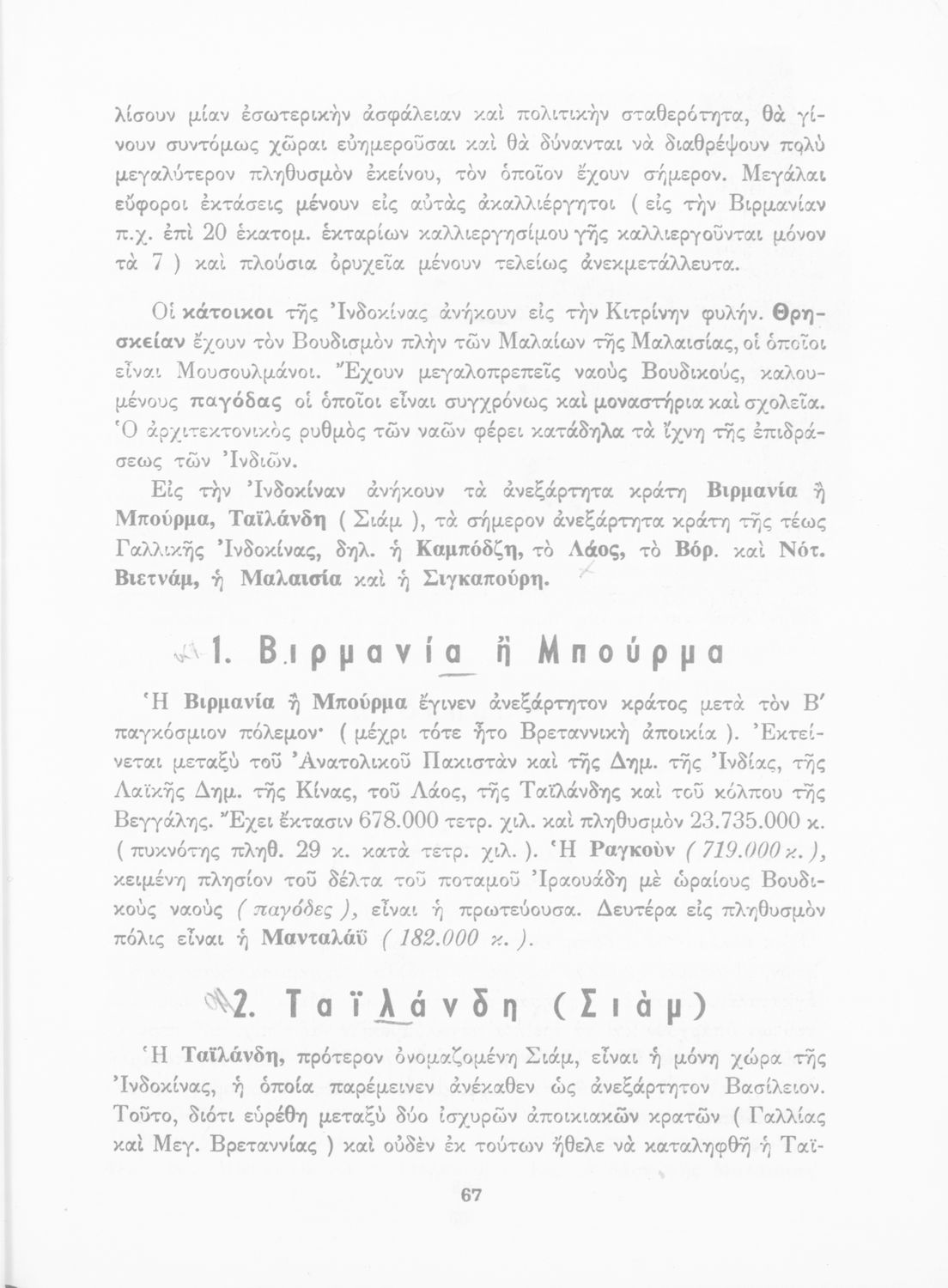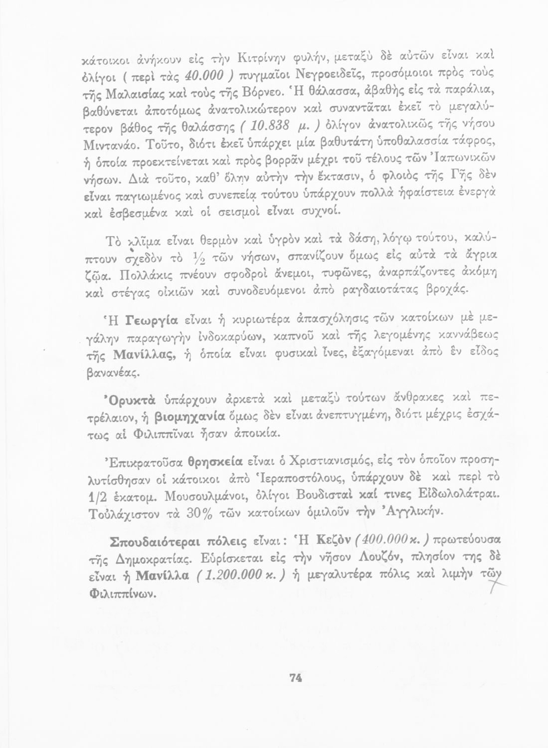 Μάθημα: Γεωγραφία Γλώσσα: Απλή καθαρεύουσα Παρουσίαση περιεχομένου: Σχολικό εγχειρίδιο Γεωγραφίας που εξετάζει ενδεικτικές χώρες και περιοχές από τις πέντε ηπείρους εκτός της Ευρώπης από γεωφυσική και οικονομική πλευρά. |