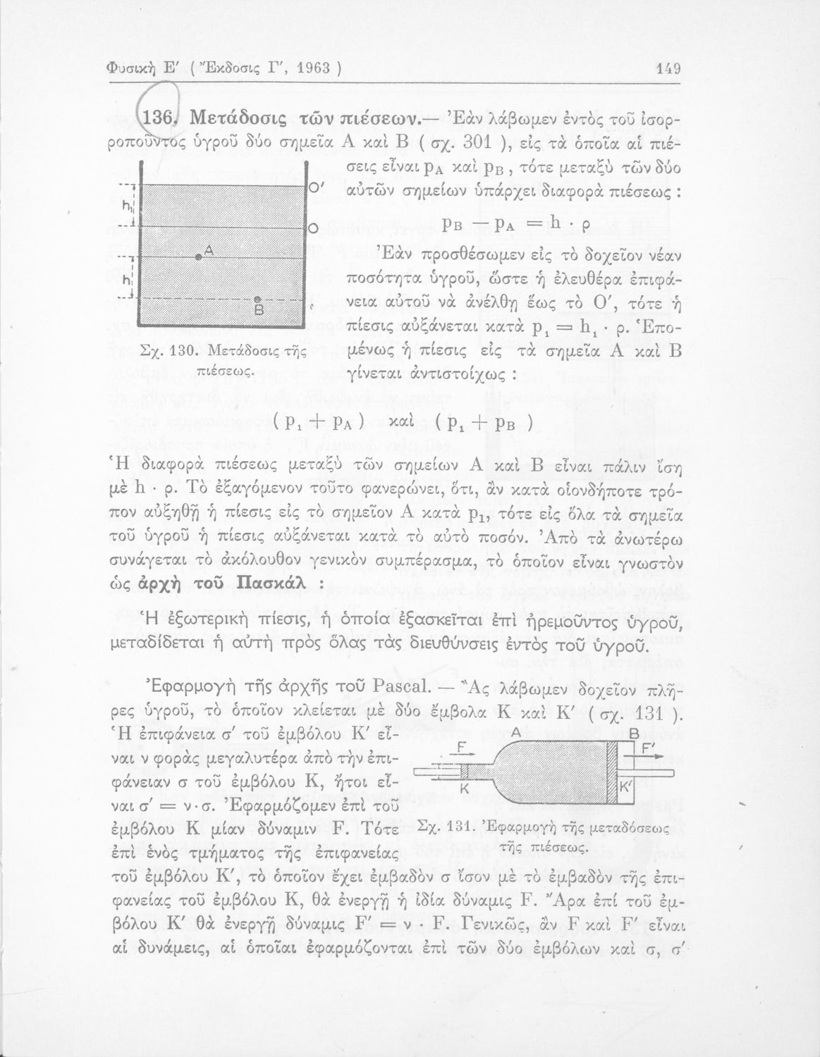 Σχολικό εγχειρίδιο της Ε΄ Τάξης των Γυμνασίων Παλαιού Τύπου για το μάθημα της Φυσικής. Παρέχει βασικές γνώσεις της Φυσικής επιστήμης. Αναλύει τα φαινόμενα της μηχανικής, της βαρύτητας, της υδροστατικής της ...