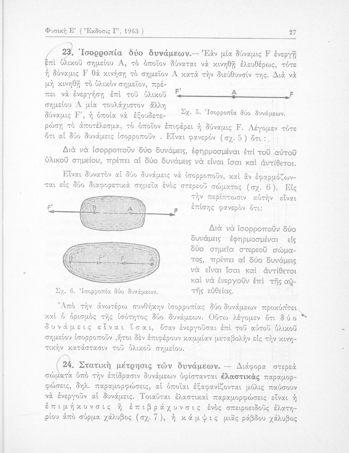 Σχολικό εγχειρίδιο Φυσικής που απευθύνεται σε μαθητές της Ε΄ Γυμνασίου με σκοπό την ερμηνεία φυσικών φαινομένων και μεγεθών (φυσικά μεγέθη, ενέργεια, κίνηση κ.ά.). Προσδιορίζονται δυνάμεις και ισορροπία αυτών σε στερεά, υγρά και αέρια σώματα και ερμηνεύονται οι φυσικοί νόμοι που διέπουν τα φαινόμενα αυτά. Γίνεται αναλυτική περιγραφή των διάφορων πεδίων της φυσικής επιστήμης.