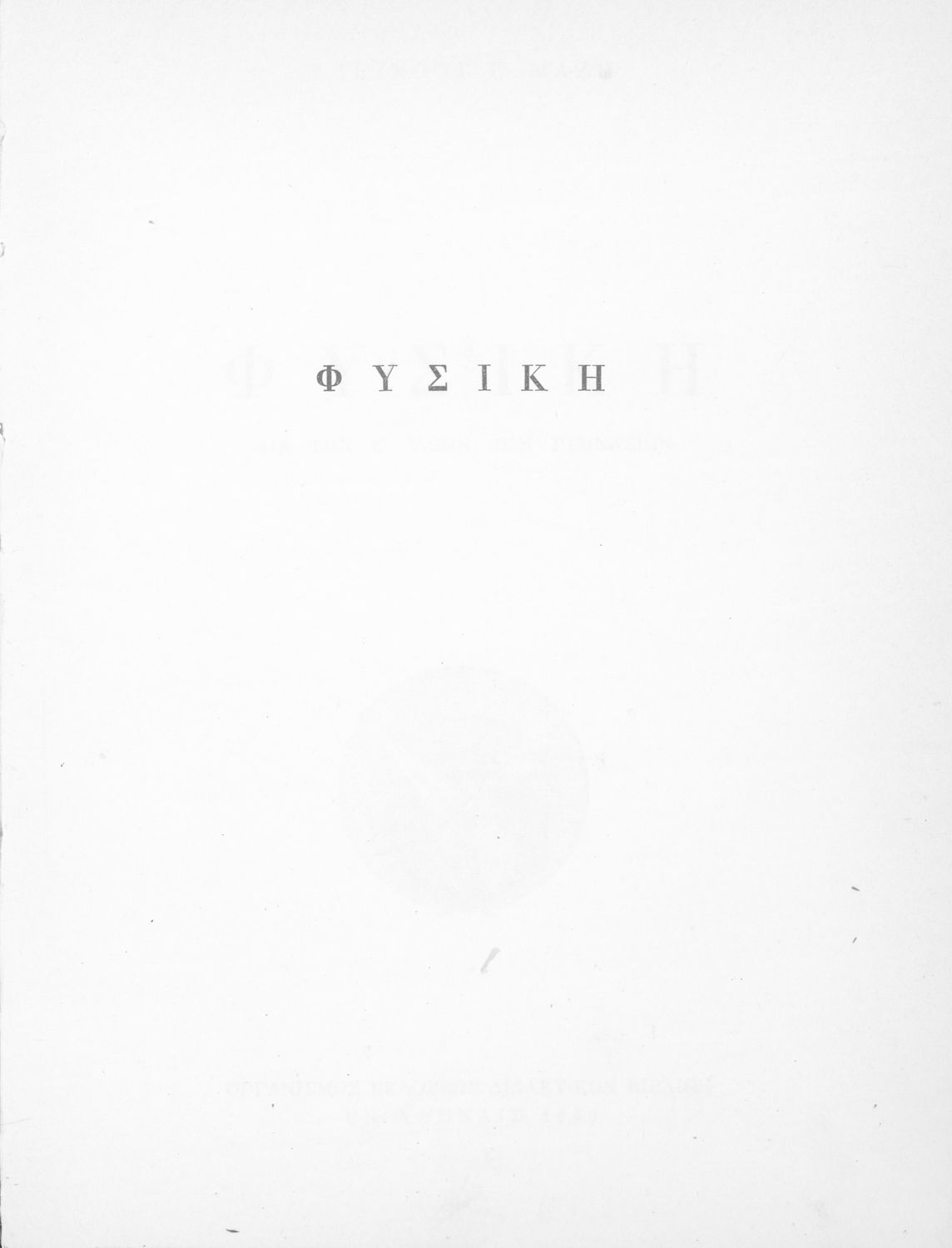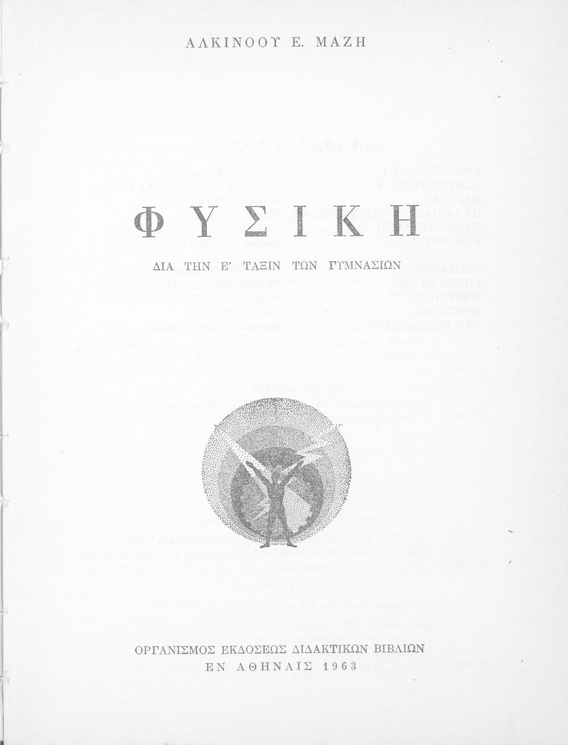 Σχολικό εγχειρίδιο της Ε΄ και ΣΤ΄ Τάξης των Δημοτικών Σχολείων και την Α΄ Τάξη των Οκτατάξιων Γυμνασίων, Προγυμνασίων και Αστικών Σχολείων για το μάθημα της Φυσικής. Παρέχει βασικές γνώσεις της φυσικής ...
