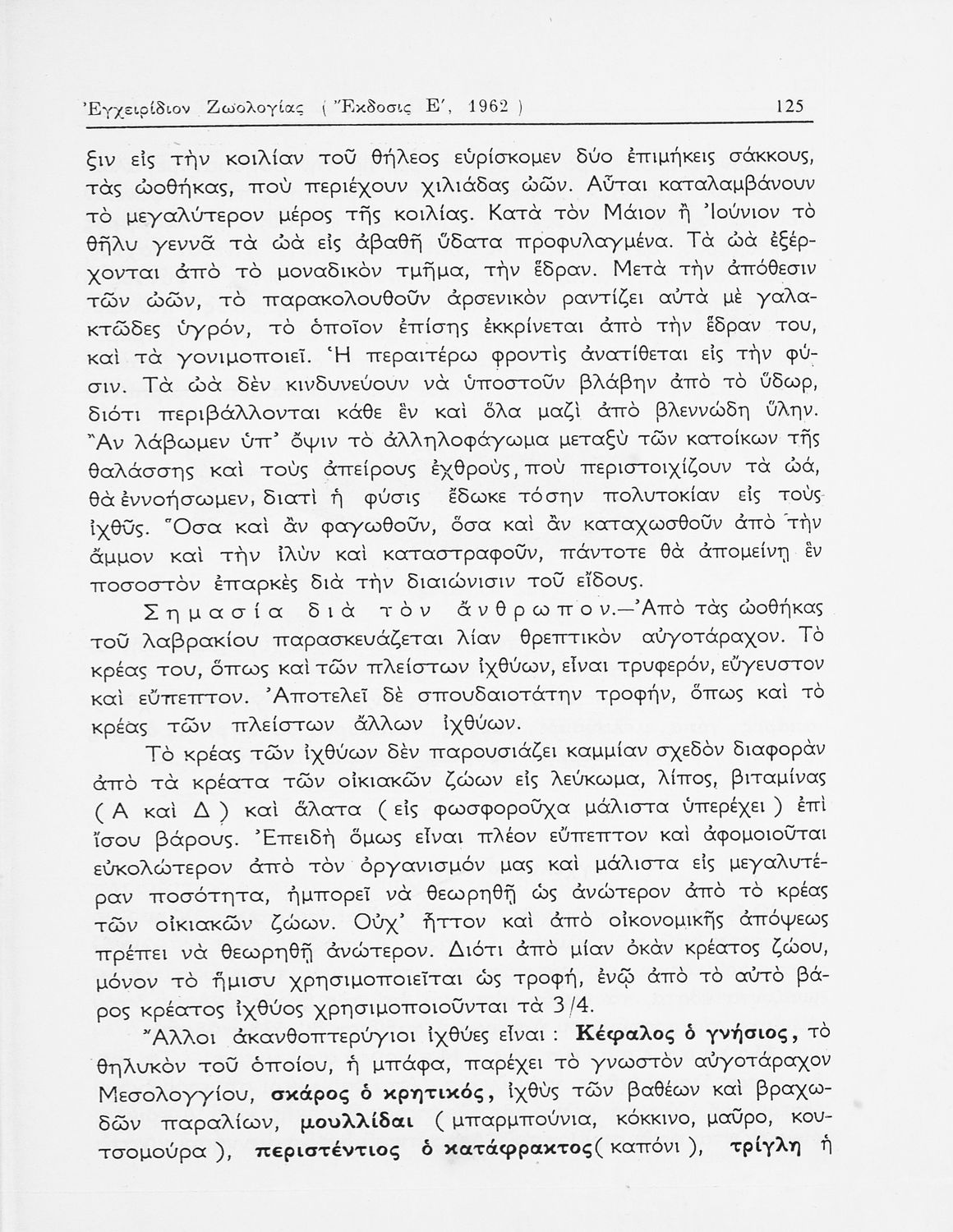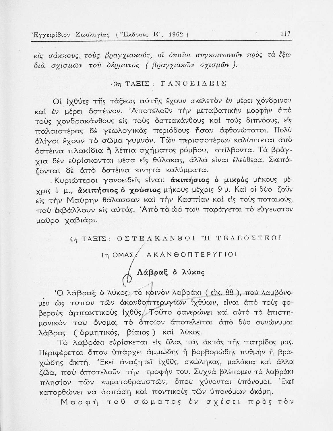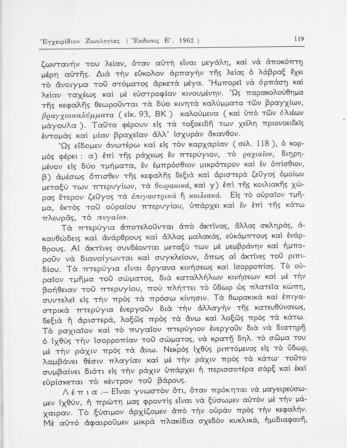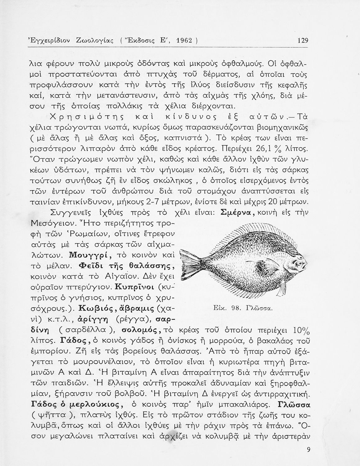 Σχολικό εγχειρίδιο Ζωολογίας για την Γ΄ τάξη των Εξαταξίων Γυμνασίων που παρουσιάζει τα διάφορα ζώα ανάλογα με την συνομοταξία στην οποία ανήκουν.