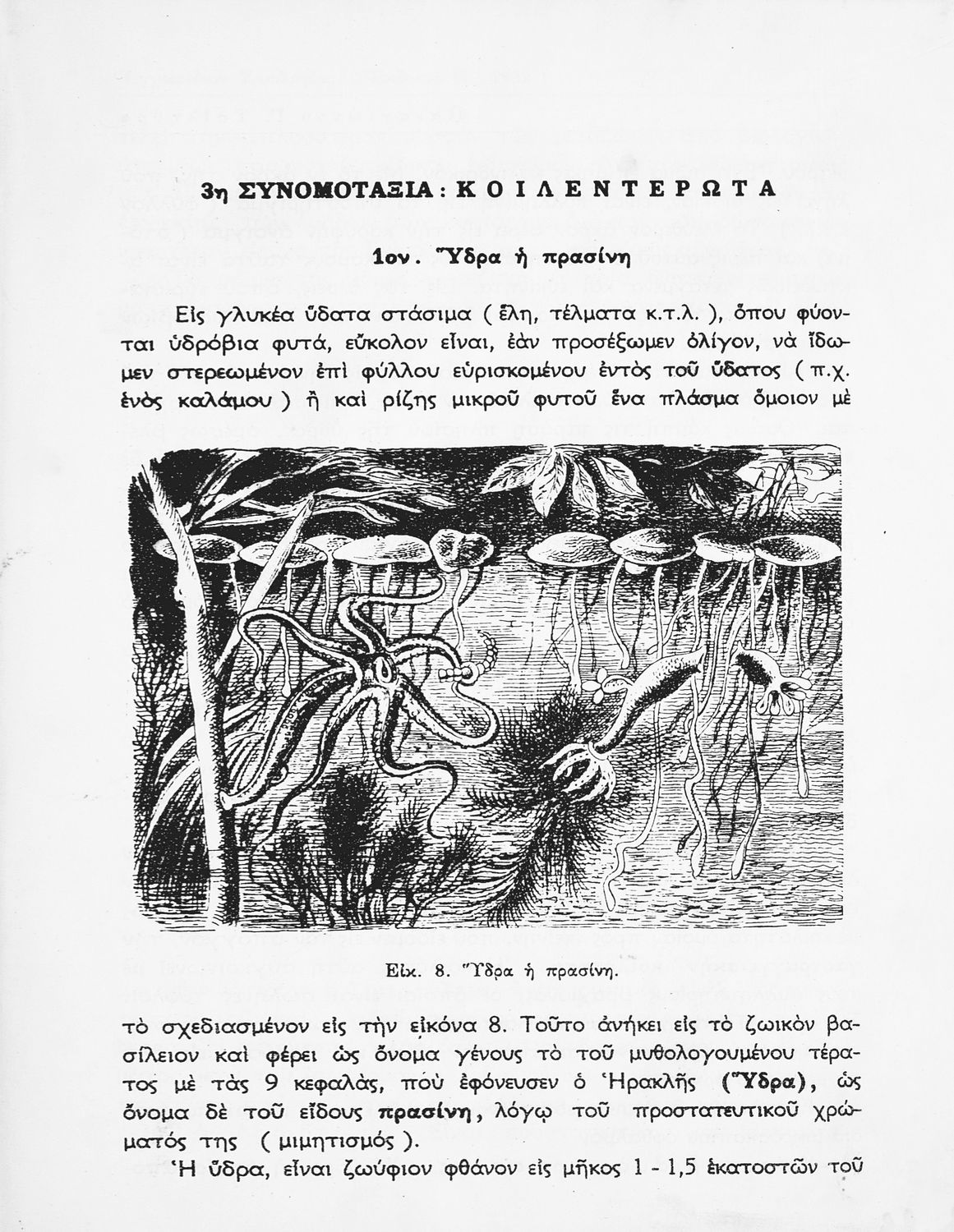 Βαθμίδα εκπαίδευσης: Δευτεροβάθμια Τάξη: Γ' Γυμνασίου Μάθημα: Ζωολογία Γλώσσα: Απλή καθαρεύουσα Παρουσίαση περιεχομένου: Σχολικό εγχειρίδιο Ζωολογίας Γ΄ Γυμνασίου που εστιάζει στη φυσιολογία και ανατομία και παρουσιάζει τα διάφορα ζώα ανάλογα με την συνομοταξία στην οποία ανήκουν. |