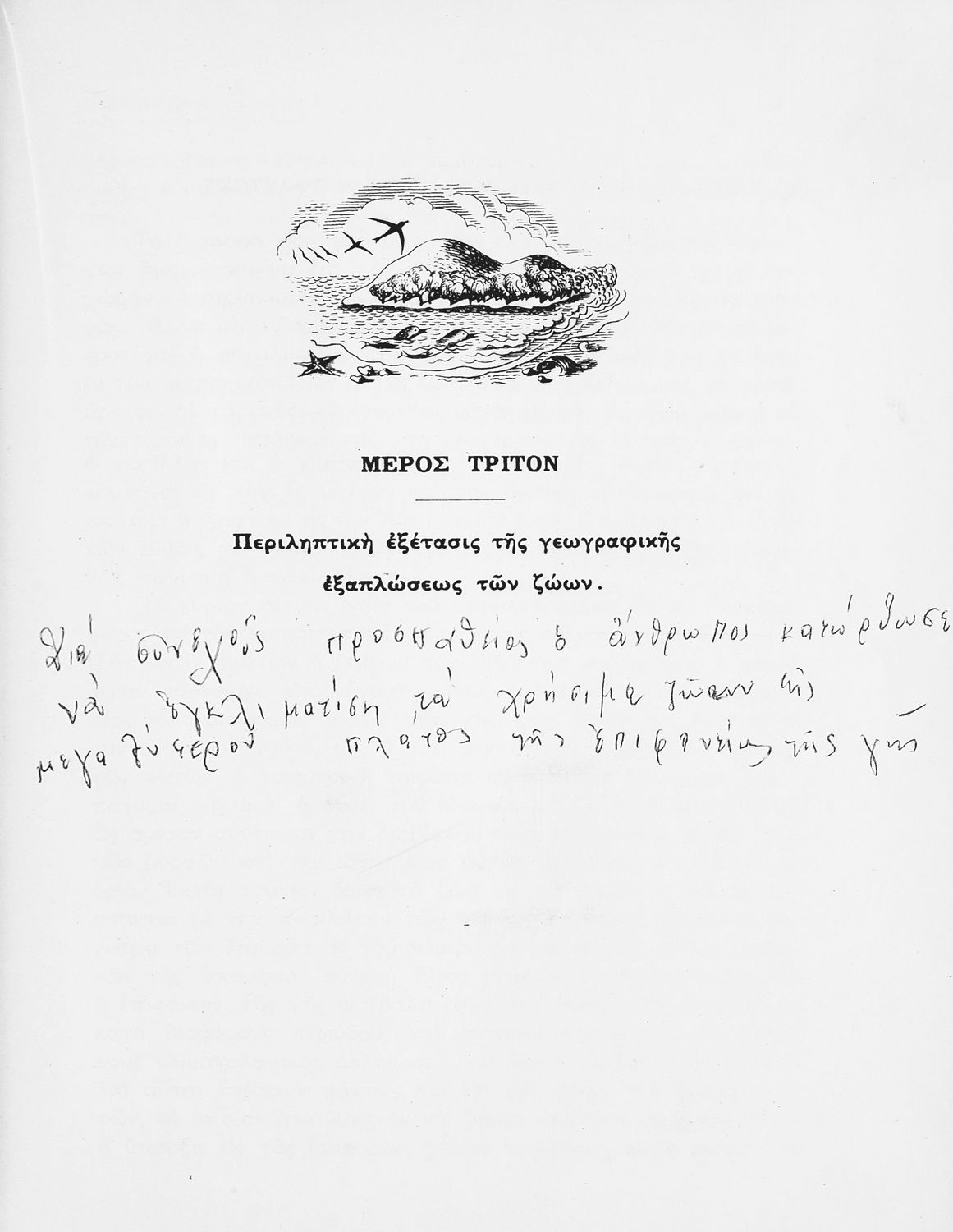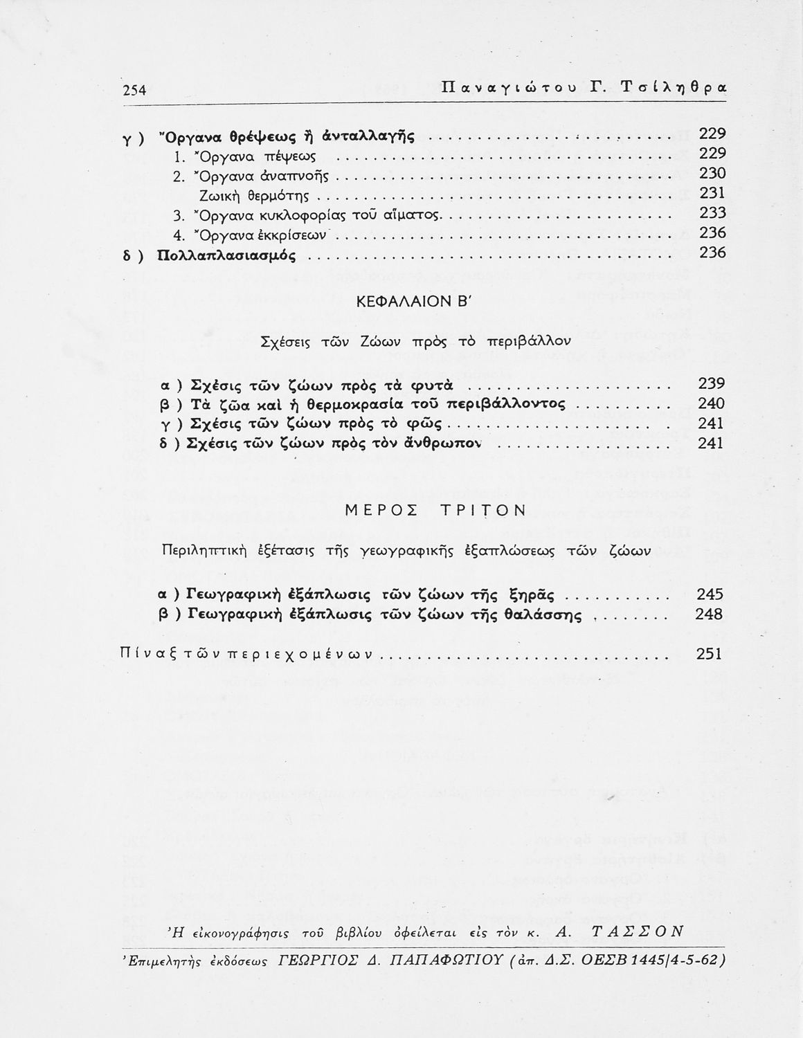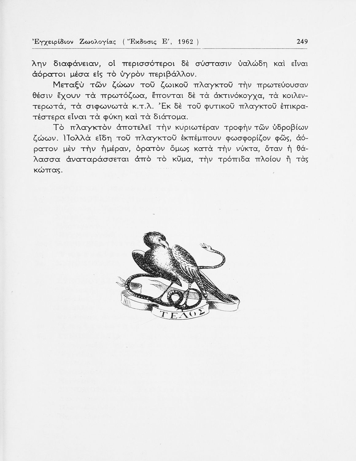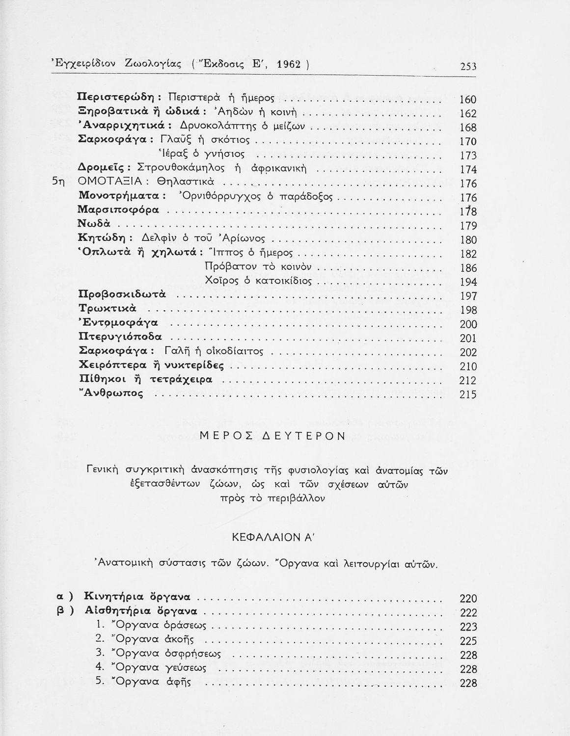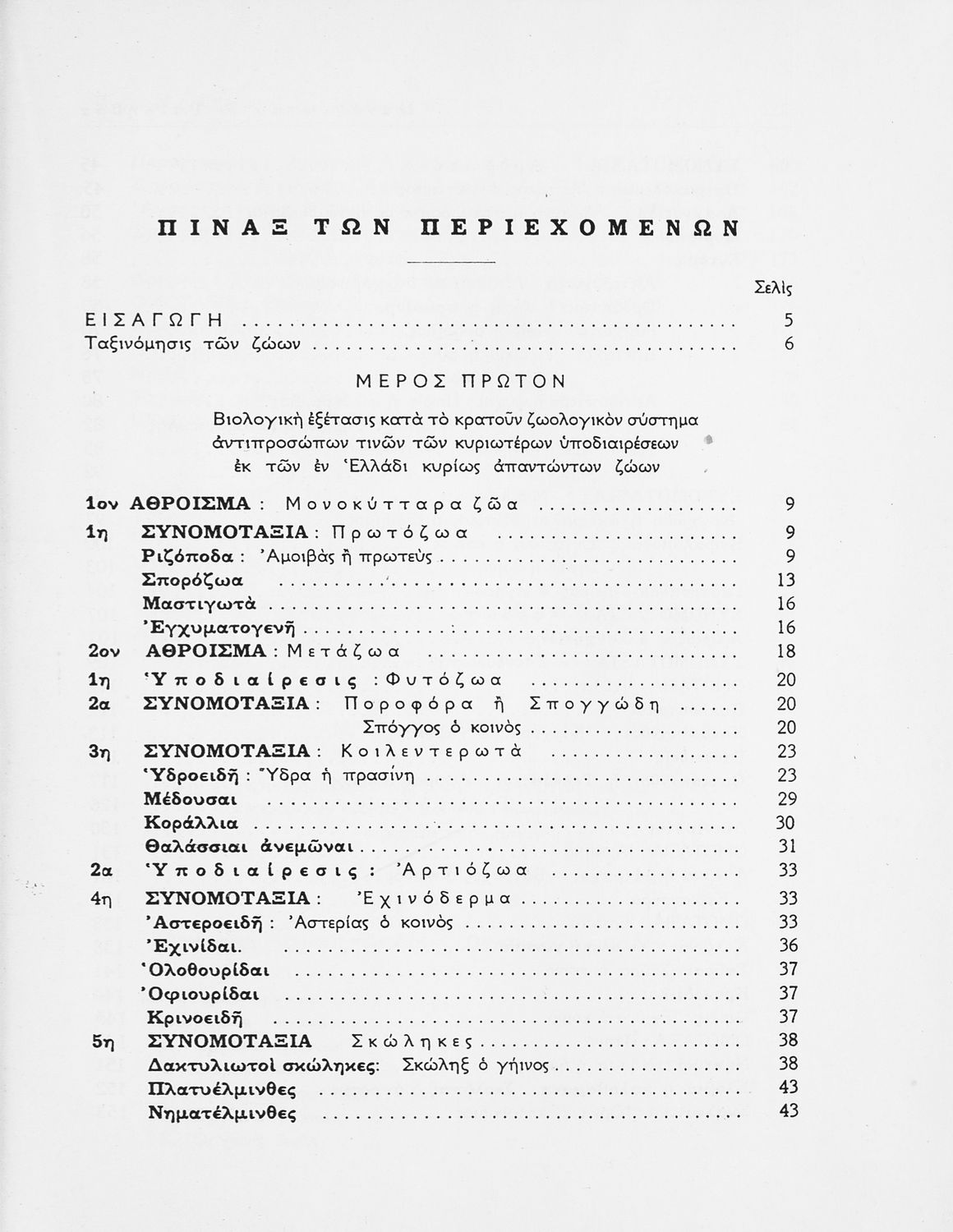 Σχολικό εγχειρίδιο Ζωολογίας για την Γ΄ τάξη των Εξαταξίων Γυμνασίων που παρουσιάζει τα διάφορα ζώα ανάλογα με την συνομοταξία στην οποία ανήκουν.