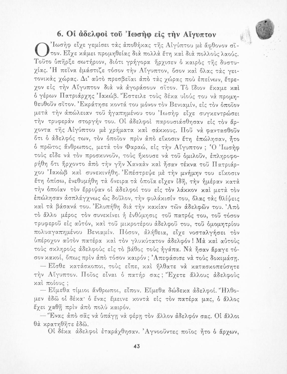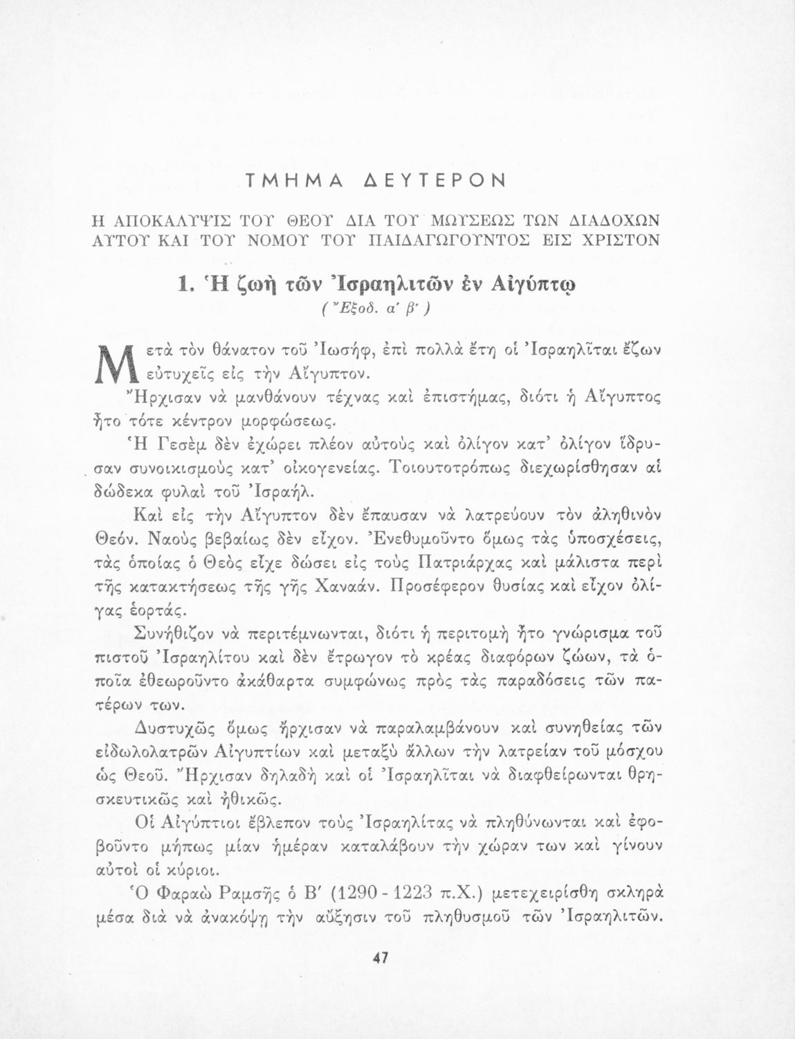 Σχολικό εγχειρίδιο Θρησκευτικών Α΄ Εξαταξίου Γυμνασίου που συνιστά μία εξιστόρηση της Παλαιάς Διαθήκης από τη δημιουργία του κόσμου ως την υποταγή των Εβραίων στους Ρωμαίους.