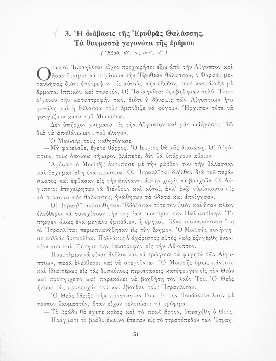 Σχολικό εγχειρίδιο Θρησκευτικών για την Α΄ Γυμνασίου και Πρακτικού Λυκείου που συνιστά μία εξιστόρηση της Παλαιάς Διαθήκης από τη δημιουργία του κόσμου ως την υποταγή των Εβραίων στους Ρωμαίους.