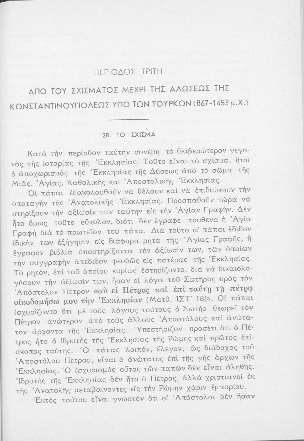 Σχολικό εγχειρίδιο Θρησκευτικών για την Δ' Γυμνασίου παλαιού τύπου που περιέχει την ιστορία της ορθόδοξης Εκκλησίας από την ίδρυσή της μέχρι την δημιουργία της Εκκλησίας της Ελλάδας.