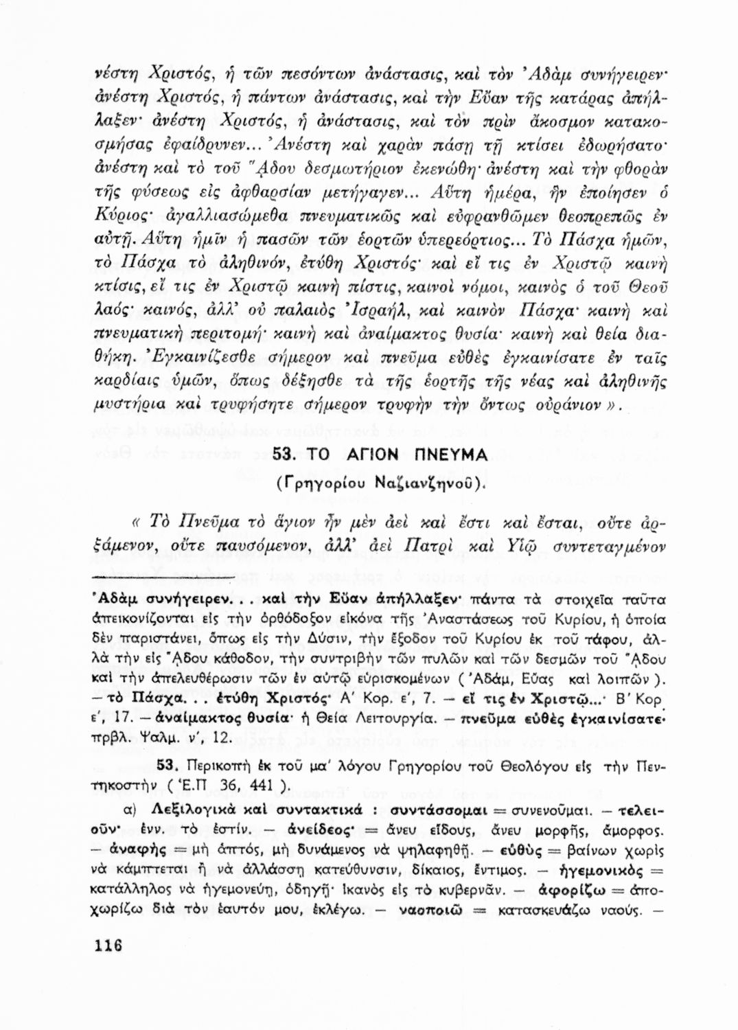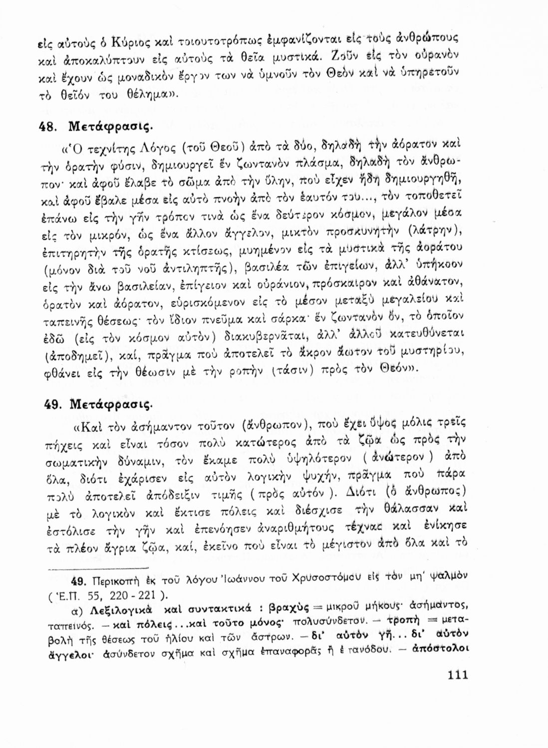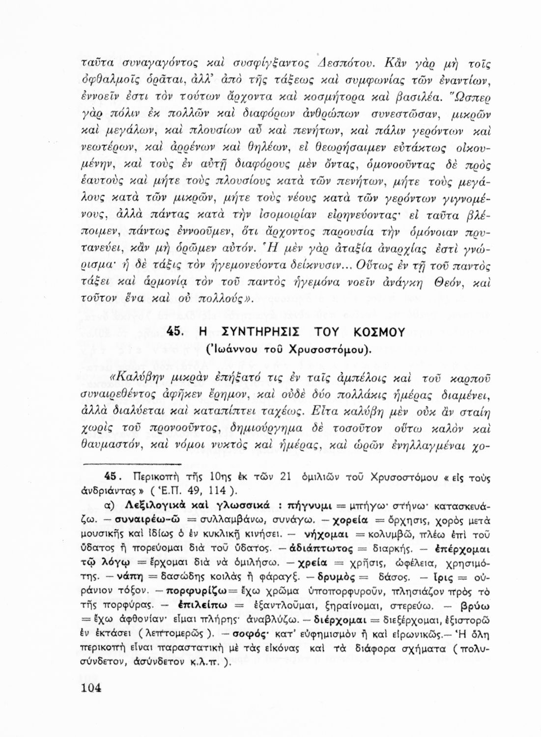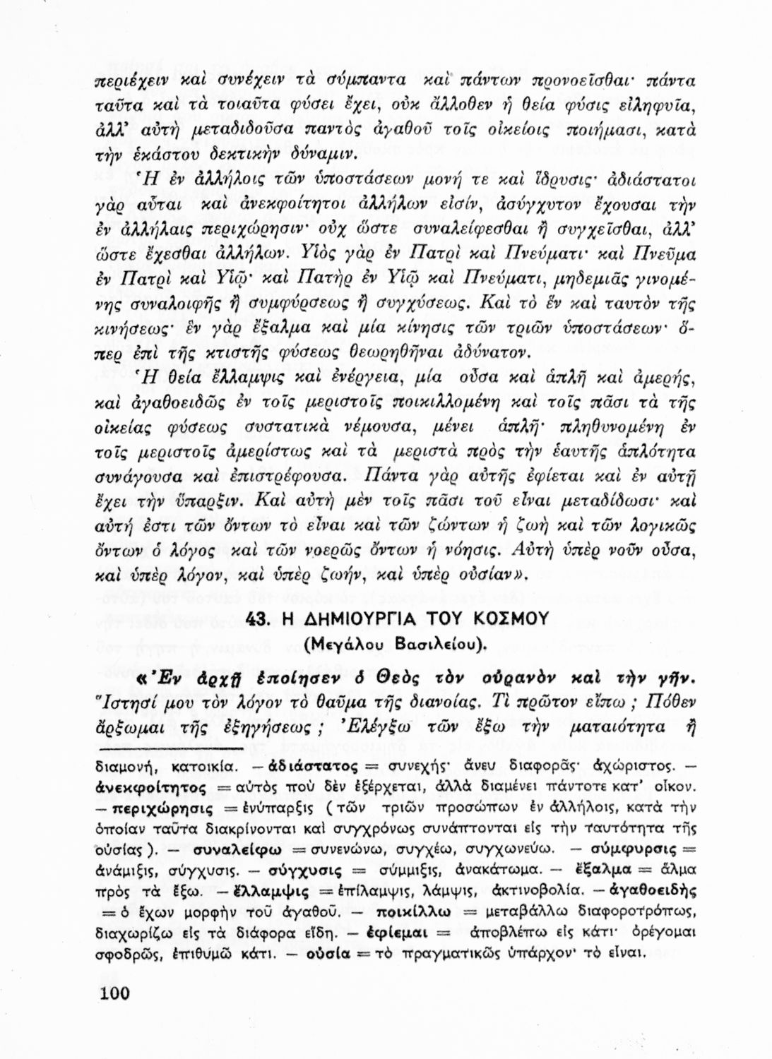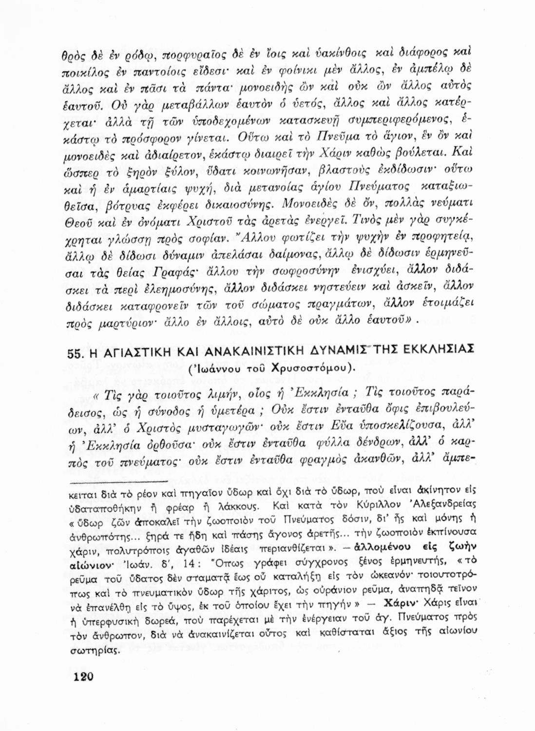 Σχολικό εγχειρίδιο Θρησκευτικών Γυμνασίου που περιλαμβάνει κείμενα των Πατέρων της Εκκλησίας, τις μεταφράσεις τους και βιογραφικά σημειώματα των συγγραφέων. Ο συγγραφέας ήταν τακτικός καθηγητής του Πανεπιστημίου Αθηνών. Φέρει το σύμβολο της δικτατορίας.