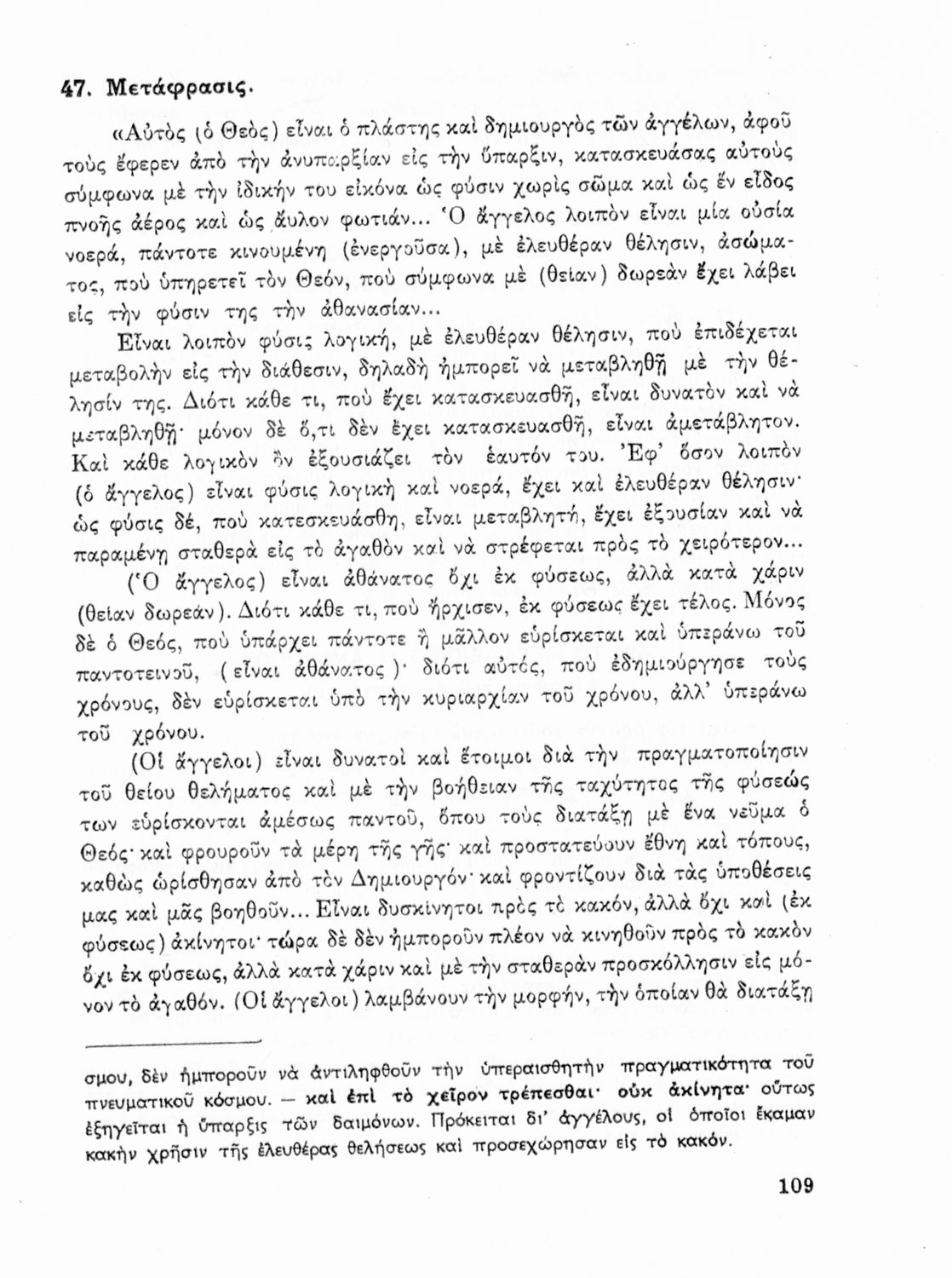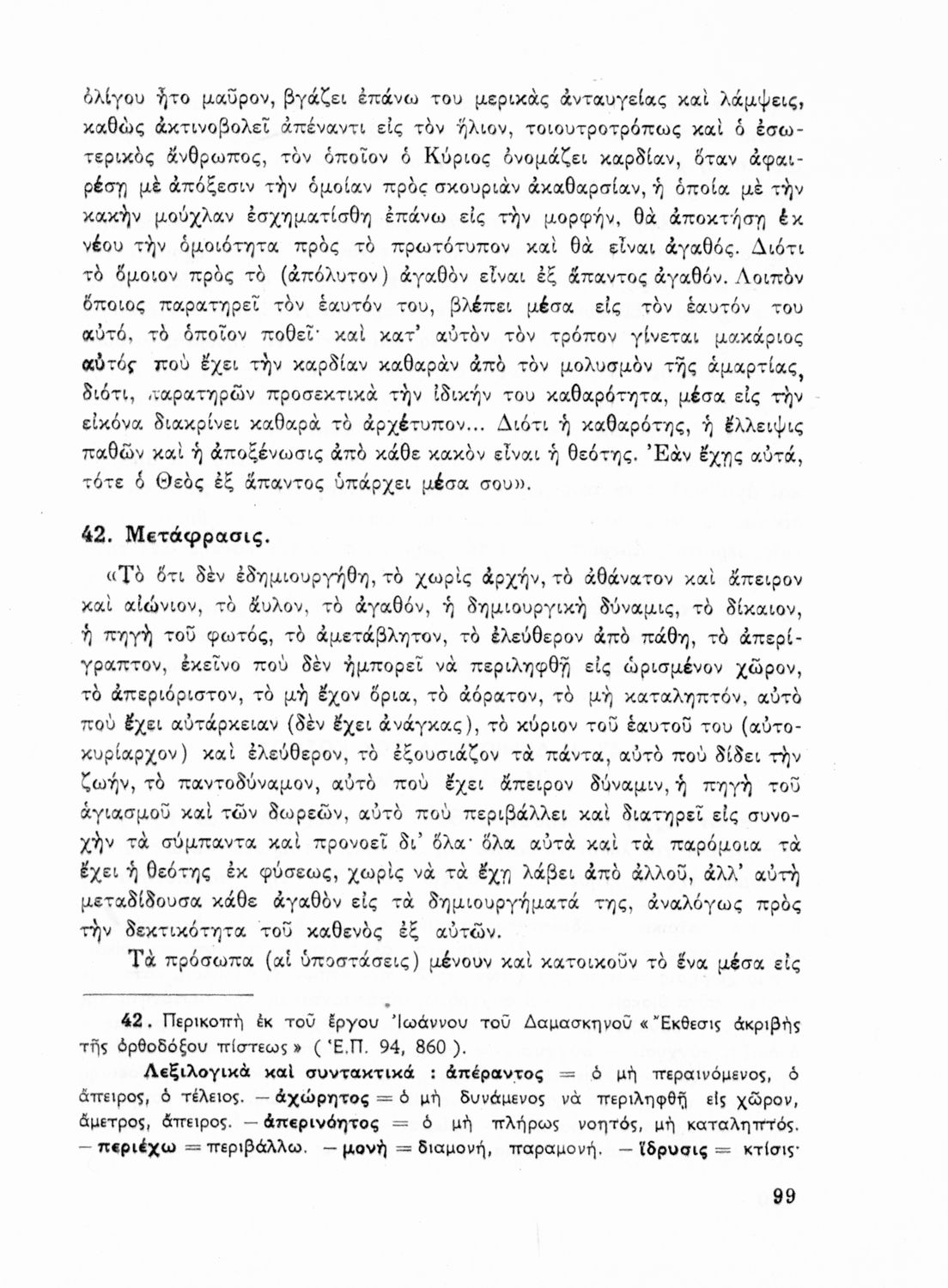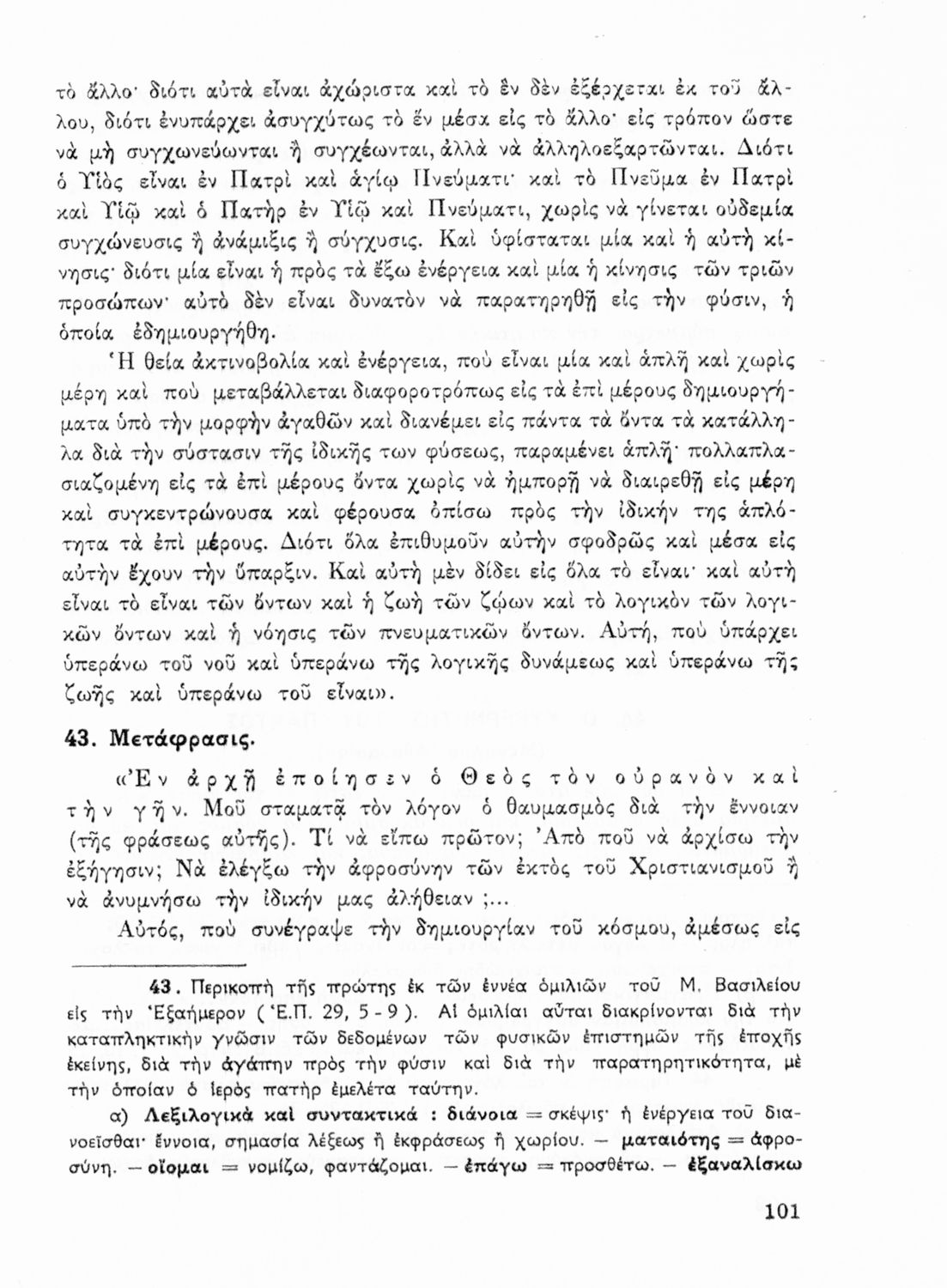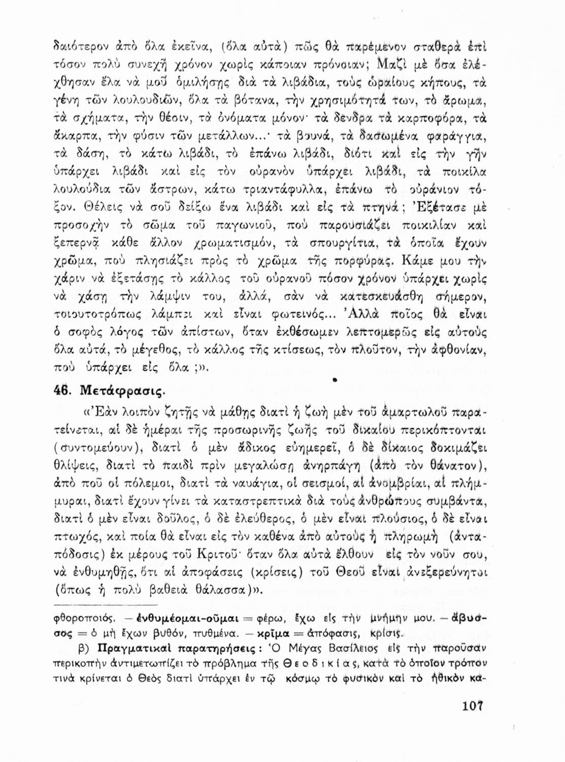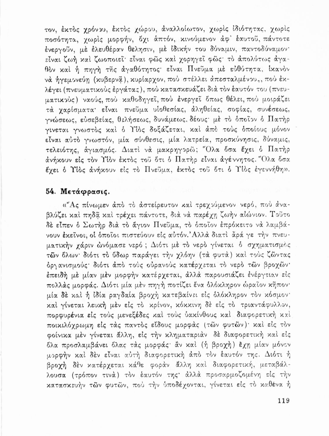 Σχολικό εγχειρίδιο Θρησκευτικών Γυμνασίου που περιλαμβάνει κείμενα των Πατέρων της Εκκλησίας, τις μεταφράσεις τους και βιογραφικά σημειώματα των συγγραφέων. Ο συγγραφέας ήταν τακτικός καθηγητής του Πανεπιστημίου Αθηνών. Φέρει το σύμβολο της δικτατορίας.