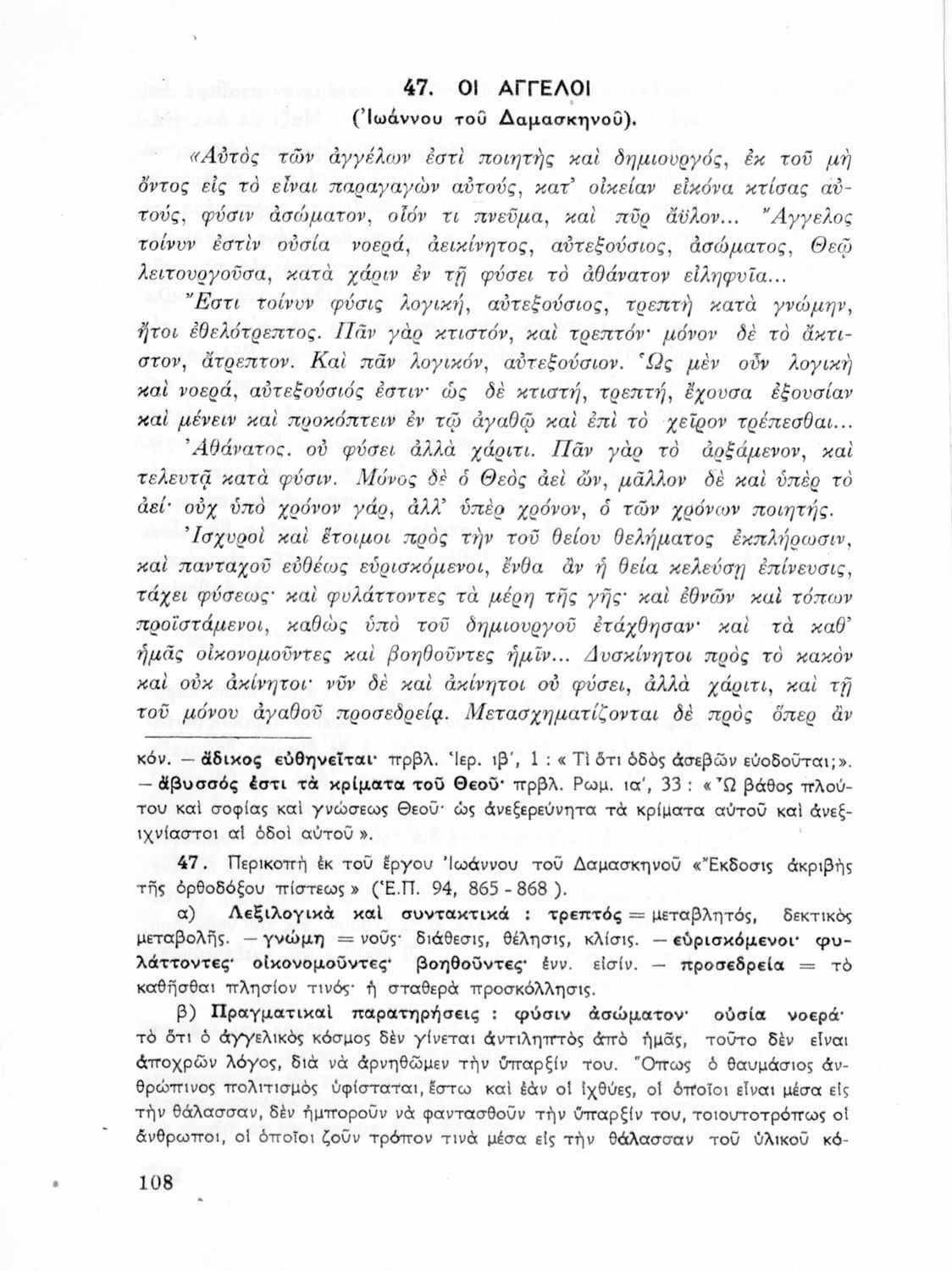 Παρουσίαση περιεχομένου: Σχολικό εγχειρίδιο Θρησκευτικών Γυμνασίου που περιλαμβάνει κείμενα των Πατέρων της Εκκλησίας, τις μεταφράσεις τους και βιογραφικά σημειώματα των συγγραφέων. Ο συγγραφέας ήταν τακτικός καθηγητής του Πανεπιστημίου Αθηνών. Φέρει το σύμβολο της δικτατορίας.