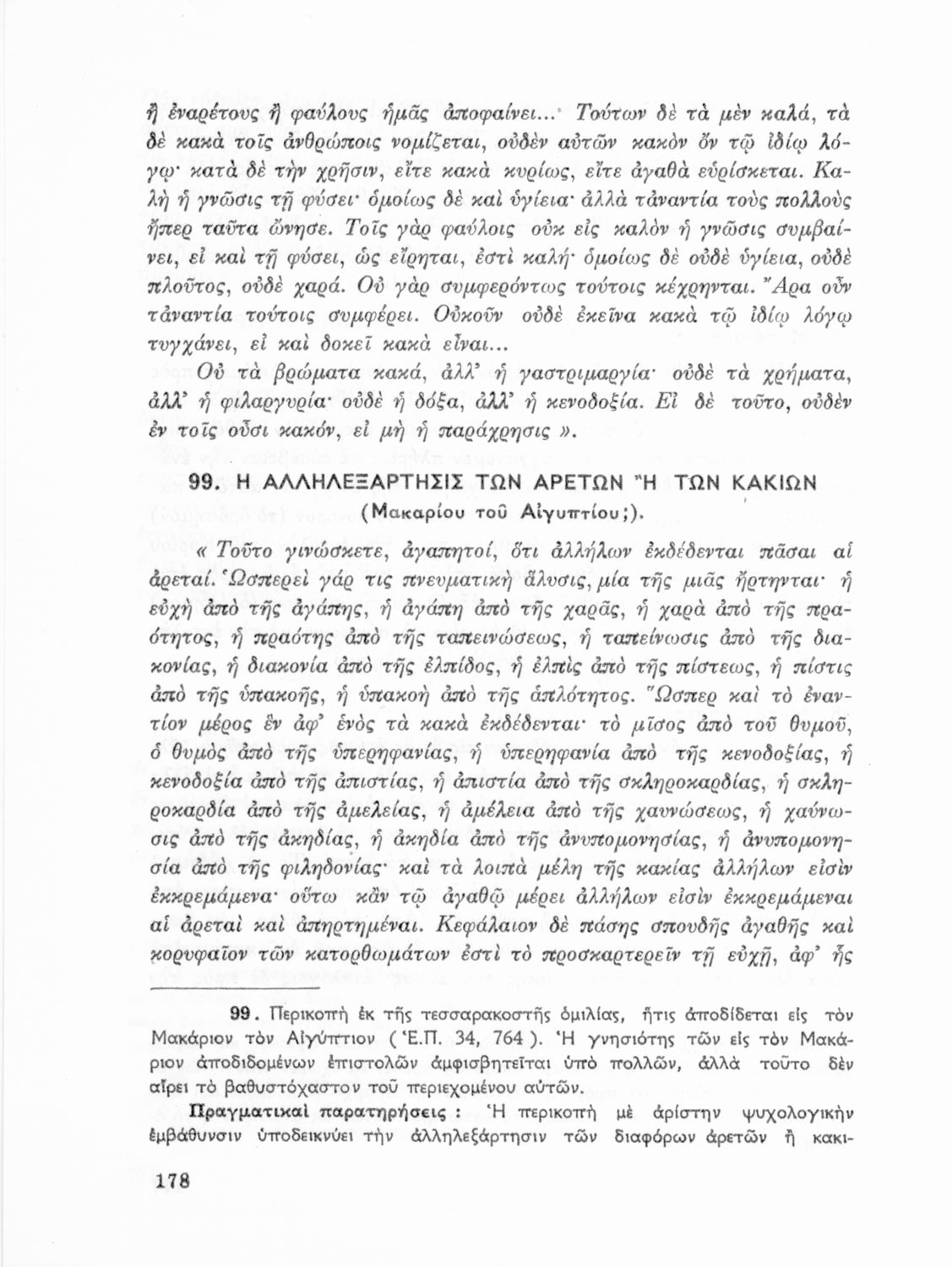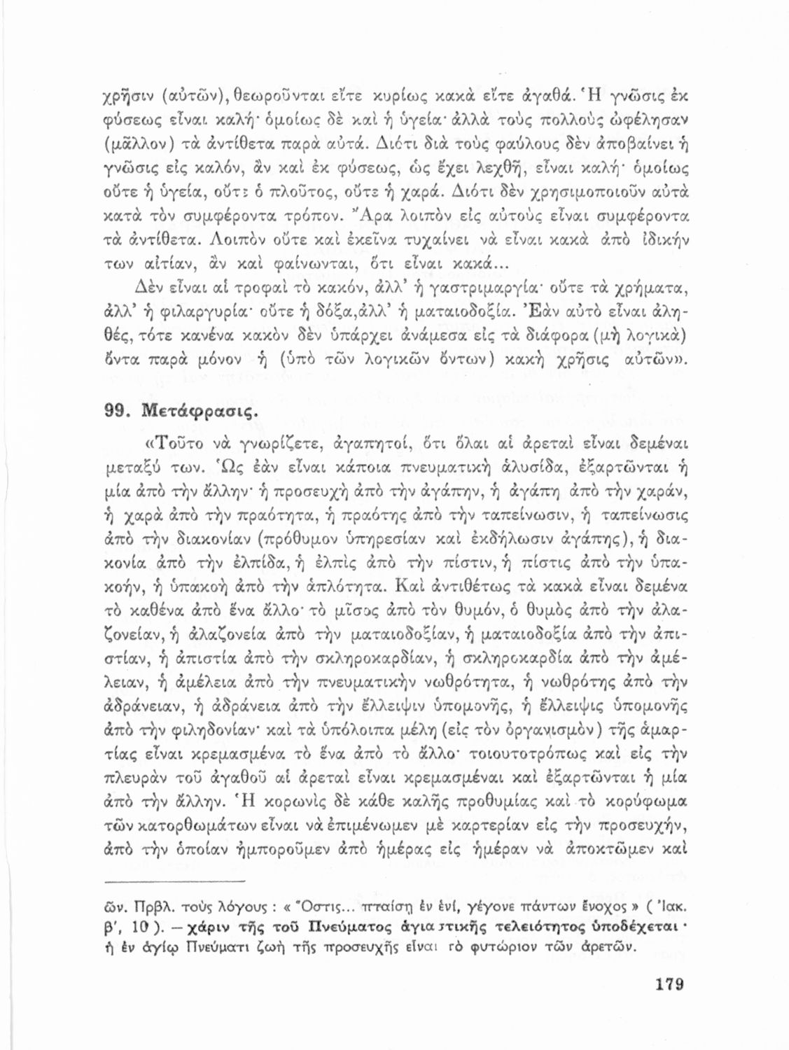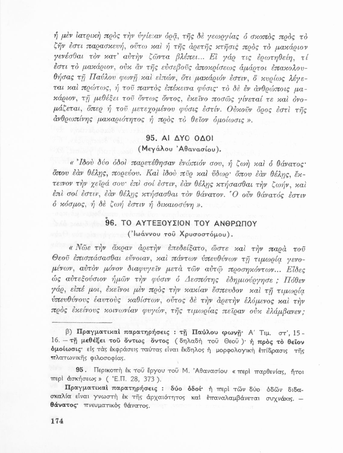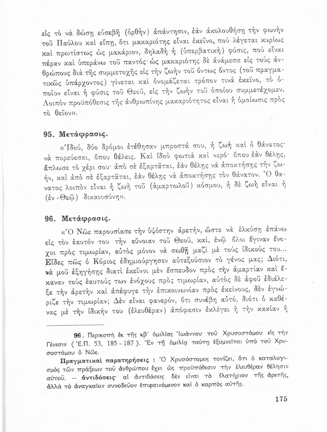 Σχολικό εγχειρίδιο Θρησκευτικών Γυμνασίου που περιλαμβάνει κείμενα των Πατέρων της Εκκλησίας, τις μεταφράσεις τους και βιογραφικά σημειώματα των συγγραφέων. Ο συγγραφέας ήταν τακτικός καθηγητής του Πανεπιστημίου Αθηνών. Φέρει το σύμβολο της δικτατορίας.