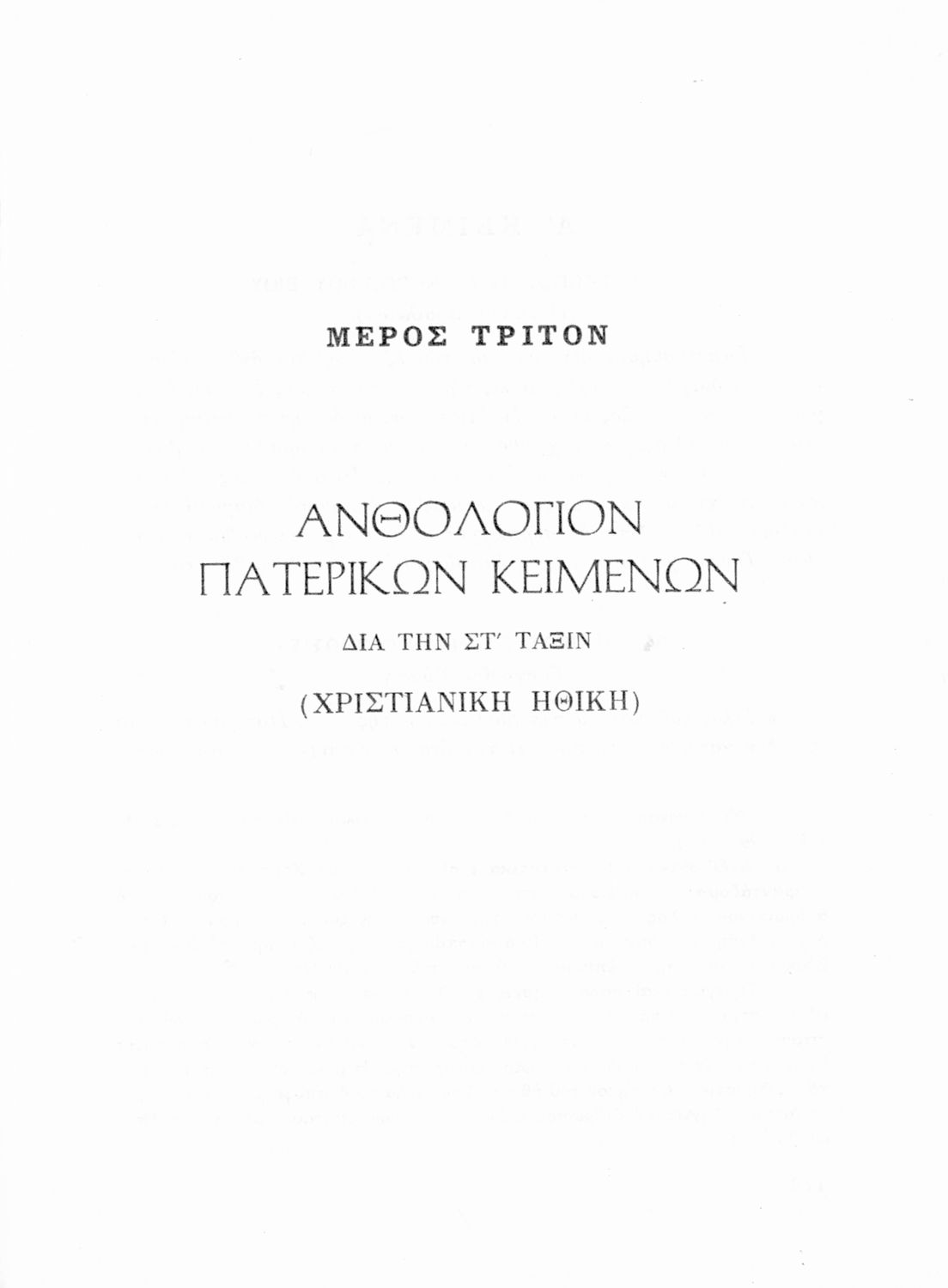 Ανθολόγιον Πατερικών Κειμένων δια τας τρεις ανωτέρας τάξεις του Γυμνασίου
