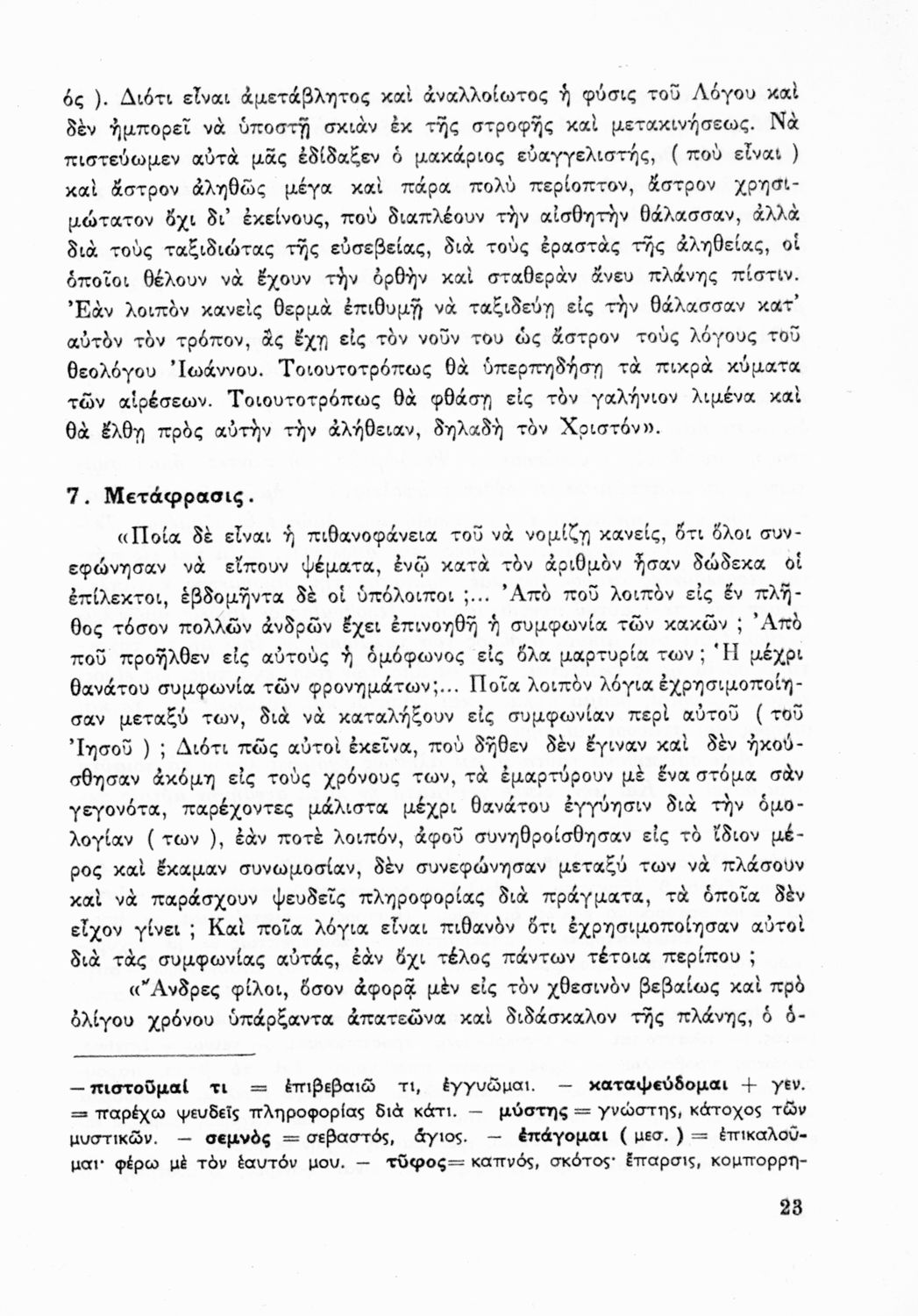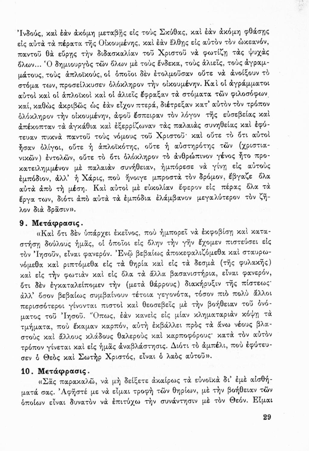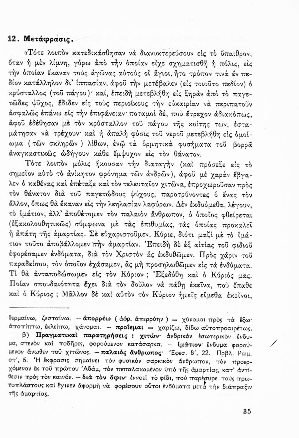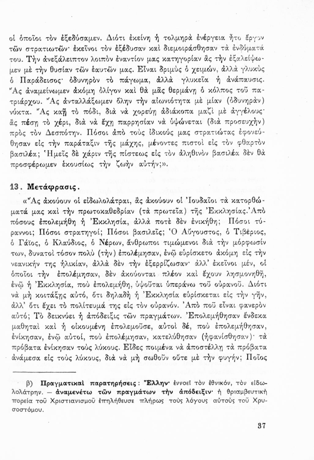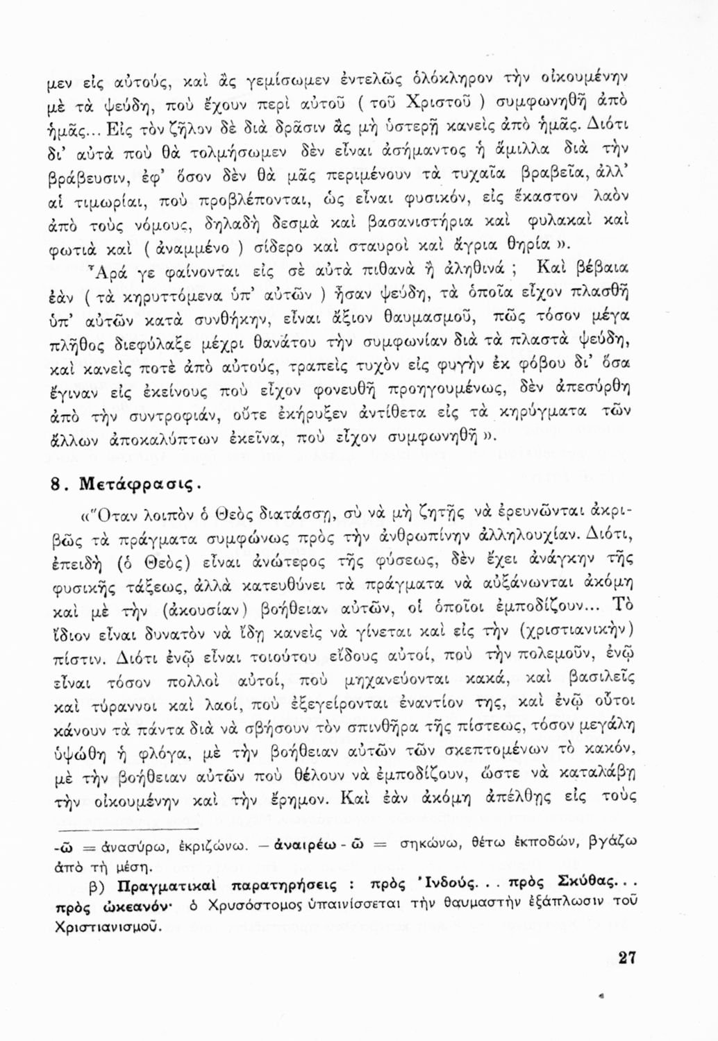 Σχολικό εγχειρίδιο Θρησκευτικών Γυμνασίου που περιλαμβάνει κείμενα των Πατέρων της Εκκλησίας, τις μεταφράσεις τους και βιογραφικά σημειώματα των συγγραφέων. Ο συγγραφέας ήταν τακτικός καθηγητής του Πανεπιστημίου Αθηνών. Φέρει το σύμβολο της δικτατορίας.
