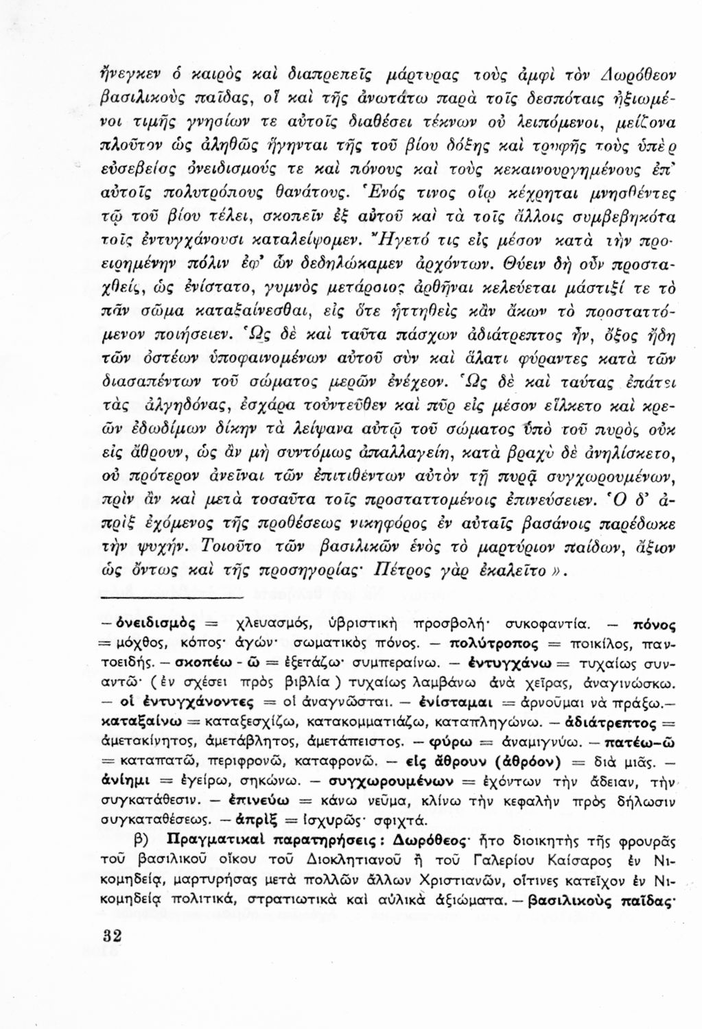 Παρουσίαση περιεχομένου: Σχολικό εγχειρίδιο Θρησκευτικών Γυμνασίου που περιλαμβάνει κείμενα των Πατέρων της Εκκλησίας, τις μεταφράσεις τους και βιογραφικά σημειώματα των συγγραφέων. Ο συγγραφέας ήταν τακτικός καθηγητής του Πανεπιστημίου Αθηνών. Φέρει το σύμβολο της δικτατορίας.