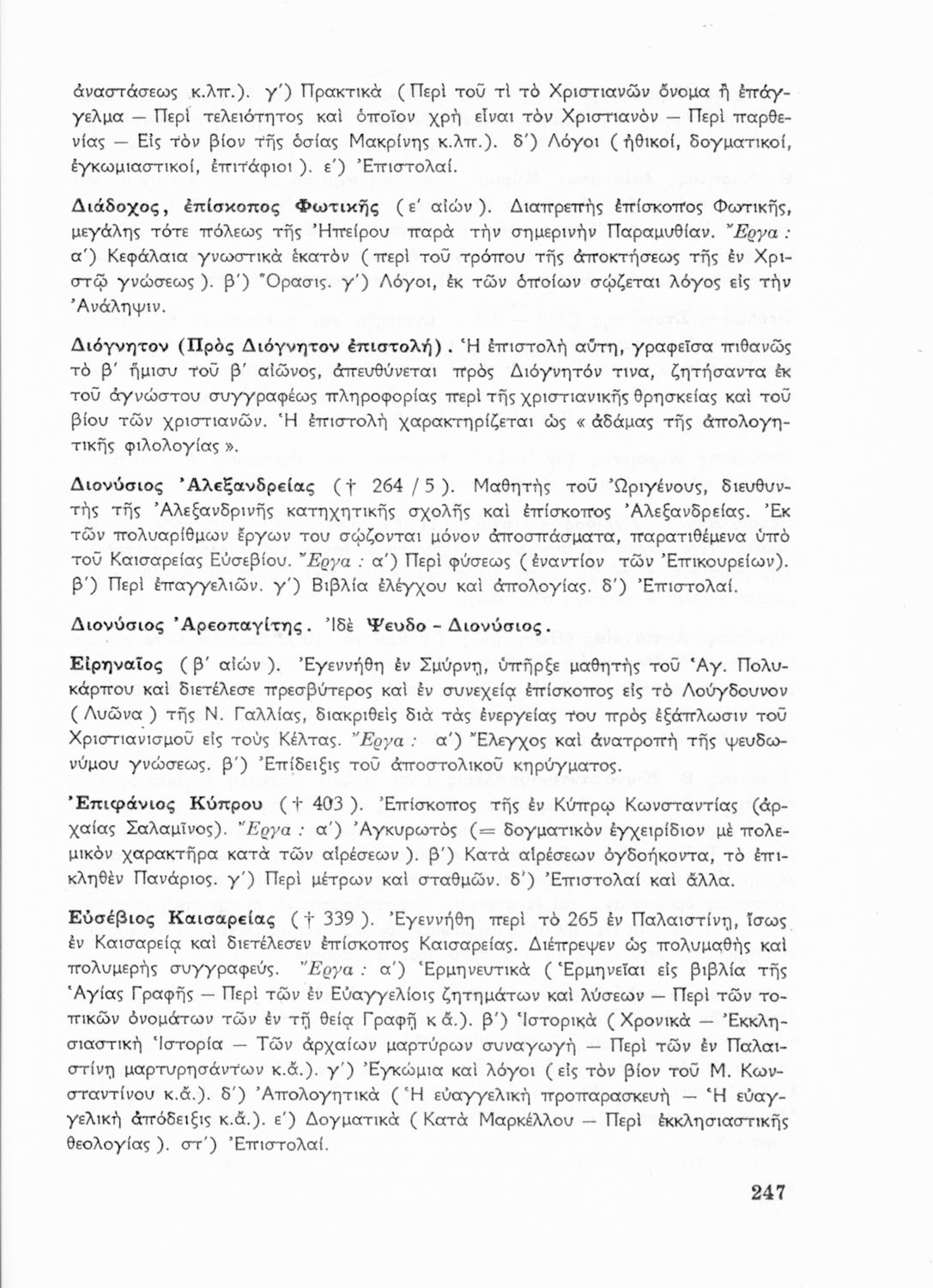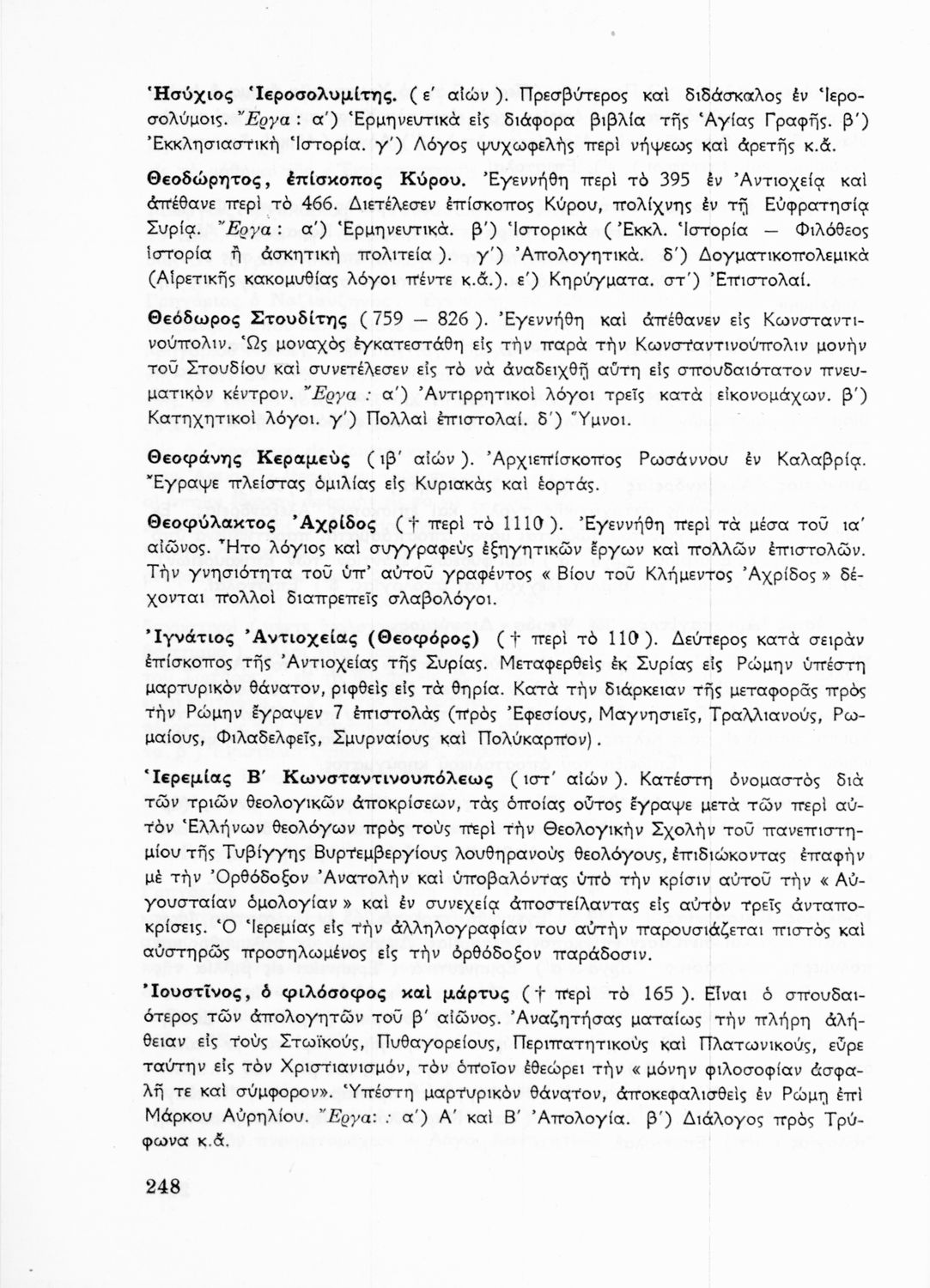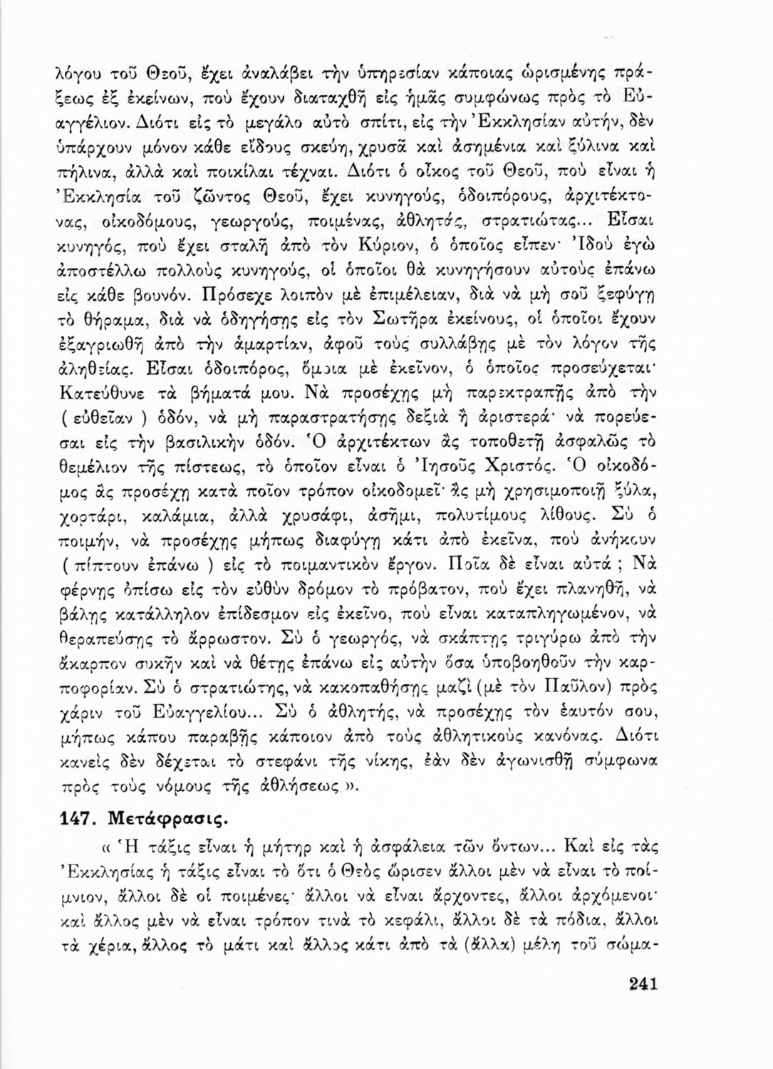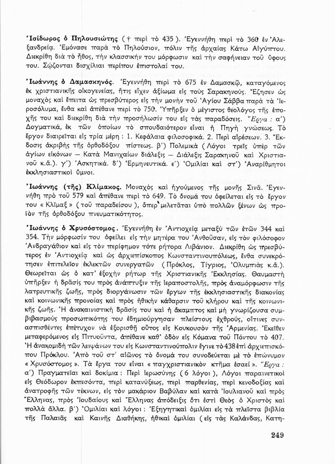 Σχολικό εγχειρίδιο Θρησκευτικών Γυμνασίου που περιλαμβάνει κείμενα των Πατέρων της Εκκλησίας, τις μεταφράσεις τους και βιογραφικά σημειώματα των συγγραφέων. Ο συγγραφέας ήταν τακτικός καθηγητής του Πανεπιστημίου Αθηνών. Φέρει το σύμβολο της δικτατορίας.
