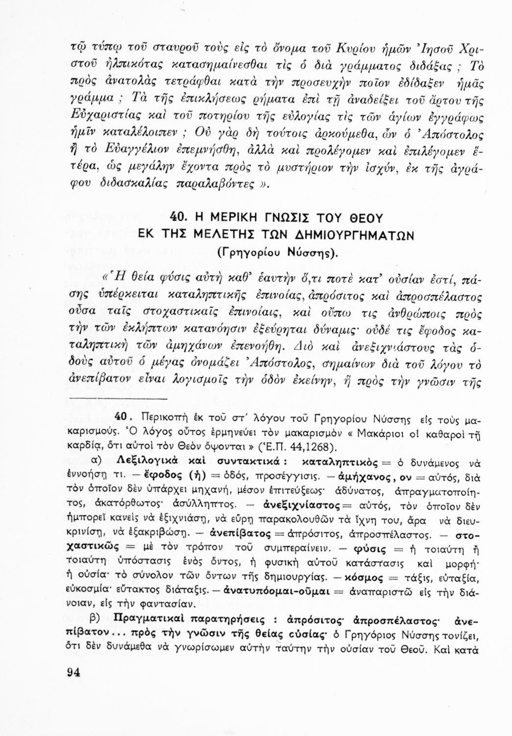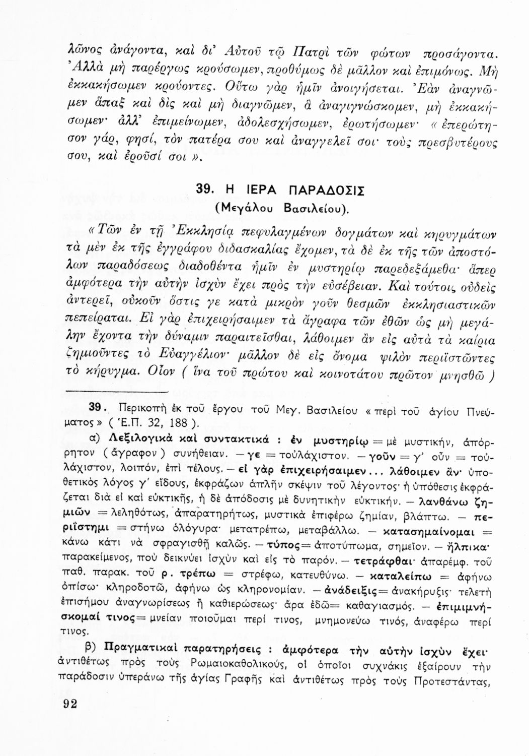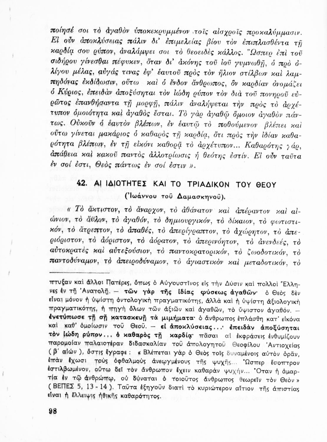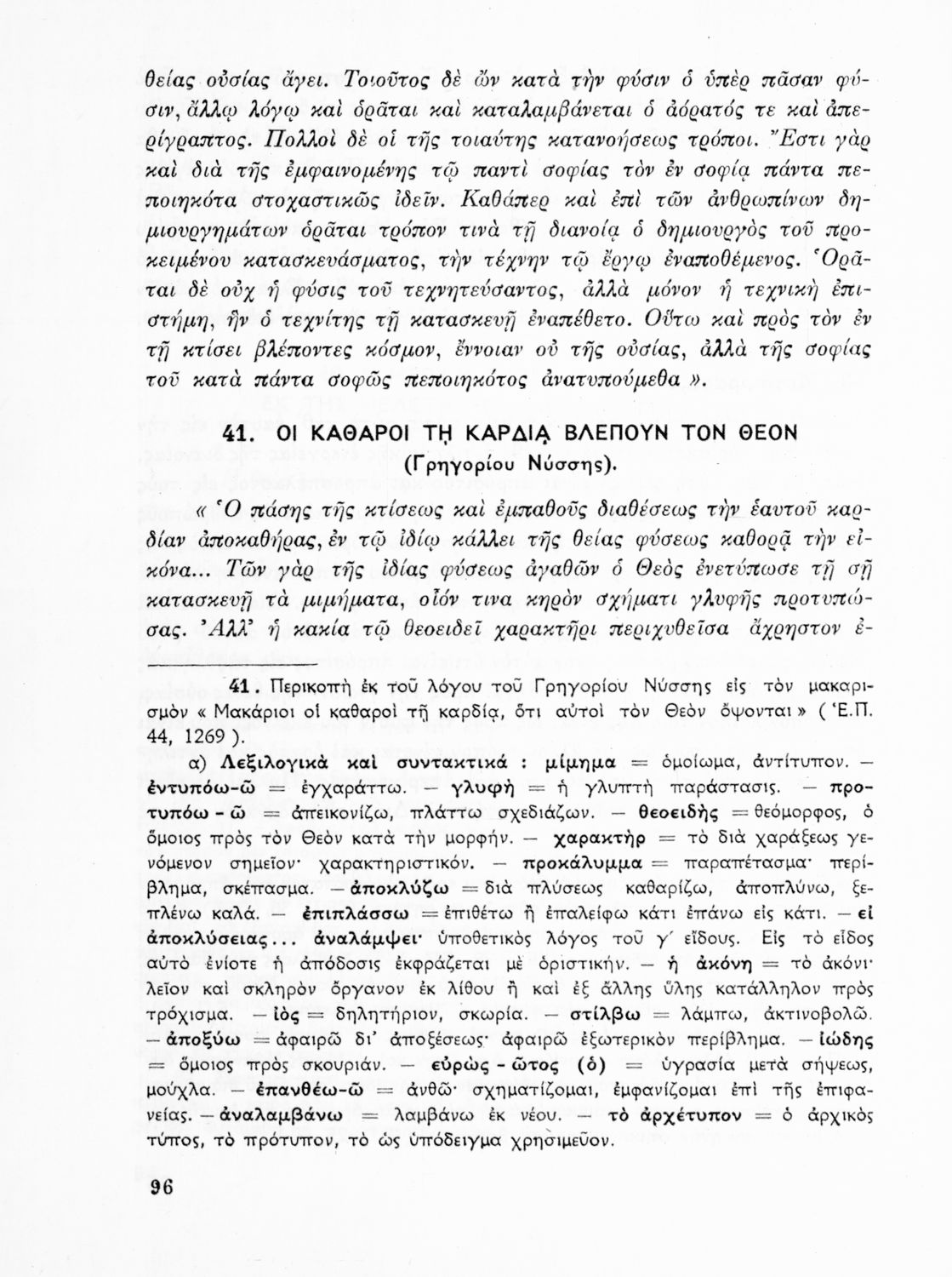 Σχολικό εγχειρίδιο Θρησκευτικών Γυμνασίου που περιλαμβάνει κείμενα των Πατέρων της Εκκλησίας, τις μεταφράσεις τους και βιογραφικά σημειώματα των συγγραφέων. Ο συγγραφέας ήταν τακτικός καθηγητής του Πανεπιστημίου Αθηνών. Φέρει το σύμβολο της δικτατορίας.