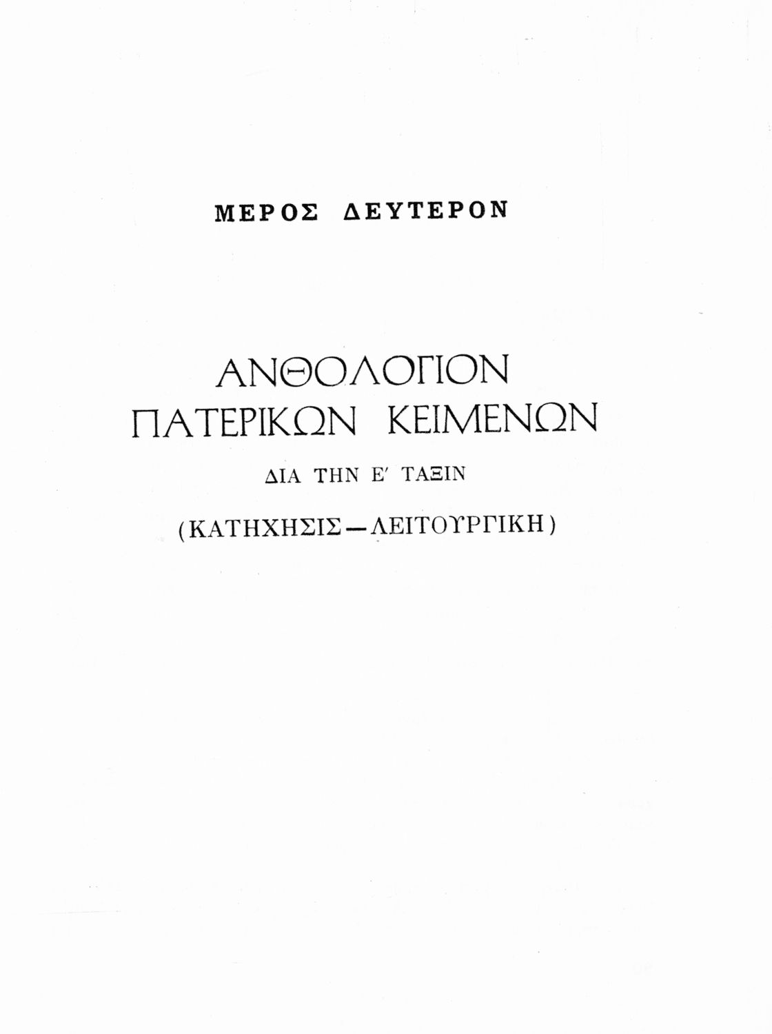 Τίτλος: Ανθολόγιον Πατερικών Κειμένων δια τας τρεις ανωτέρας τάξεις του Γυμνασίου