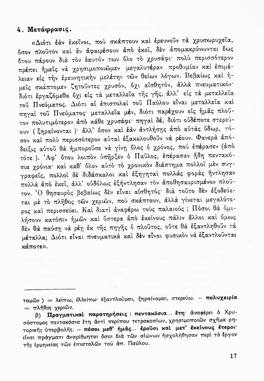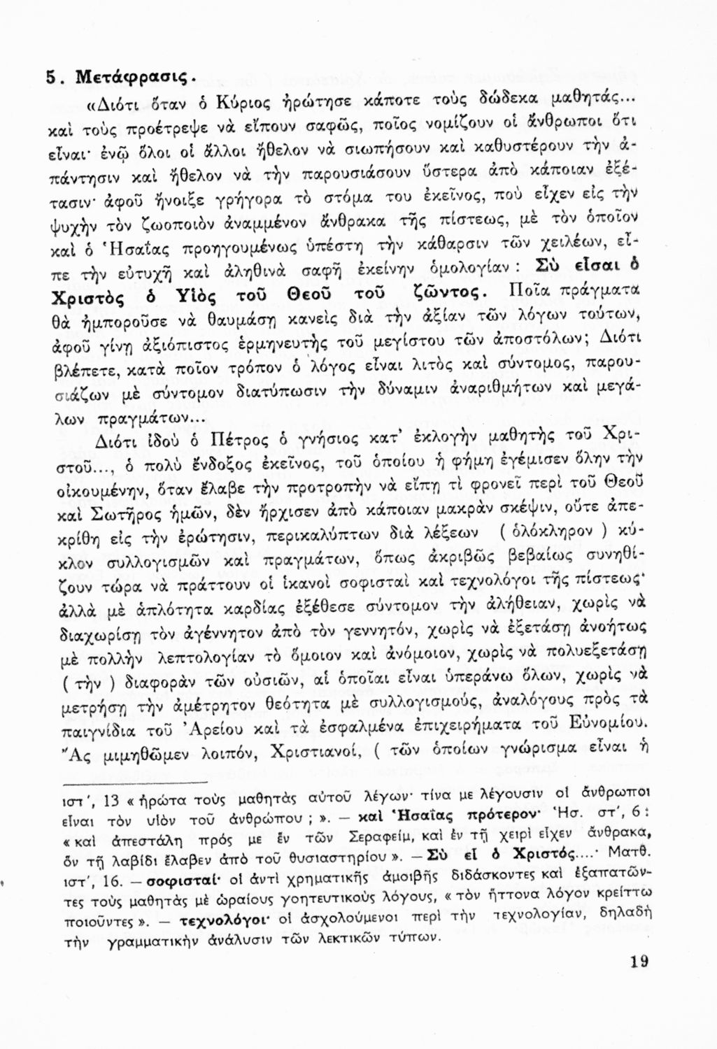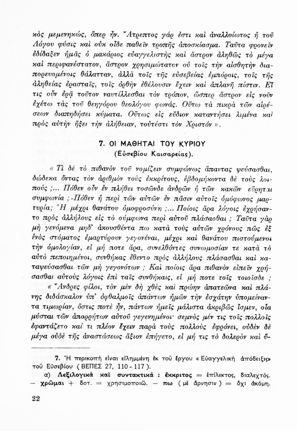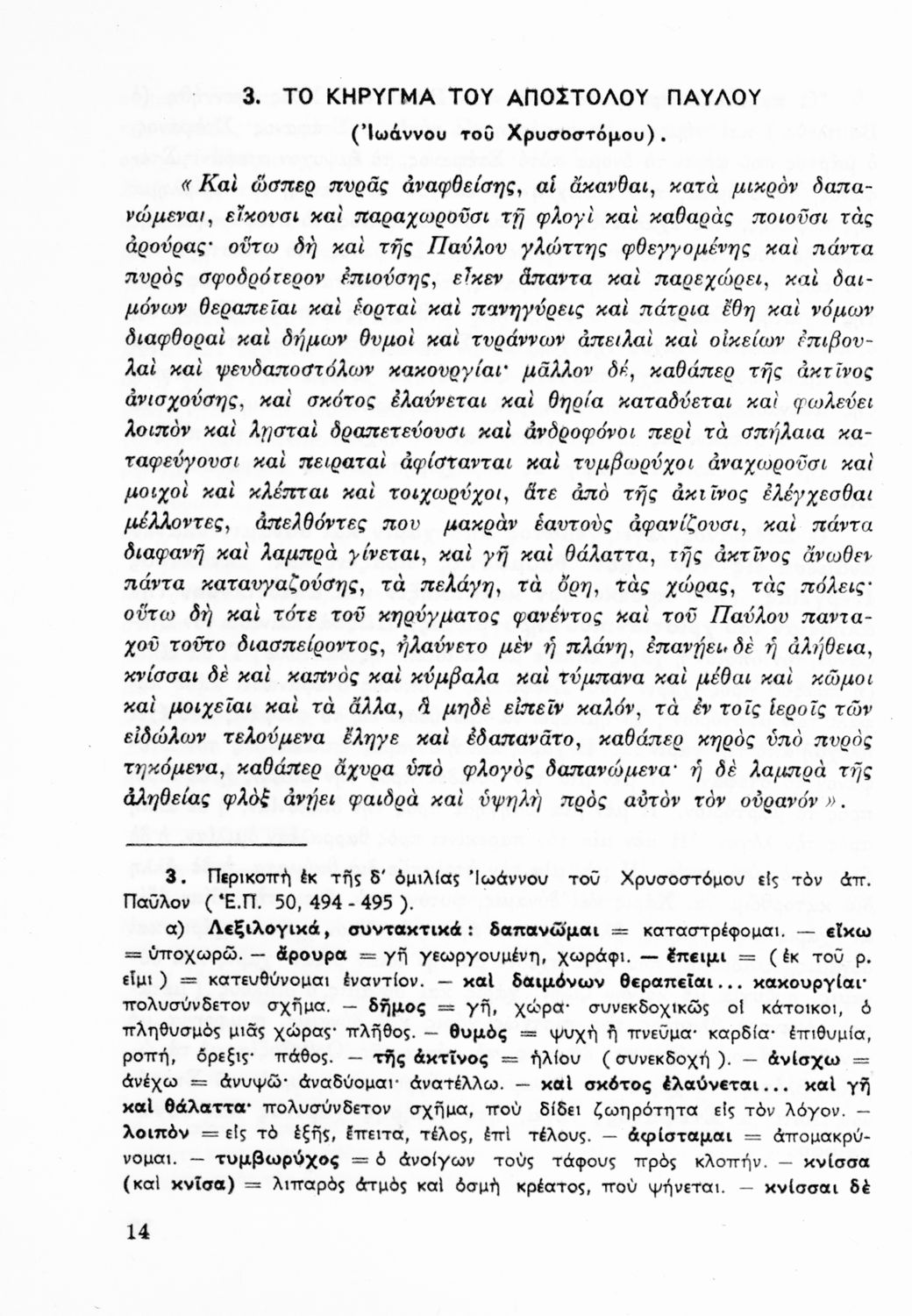 Σχολικό εγχειρίδιο Θρησκευτικών Γυμνασίου που περιλαμβάνει κείμενα των Πατέρων της Εκκλησίας, τις μεταφράσεις τους και βιογραφικά σημειώματα των συγγραφέων. Ο συγγραφέας ήταν τακτικός καθηγητής του Πανεπιστημίου Αθηνών. Φέρει το σύμβολο της δικτατορίας.