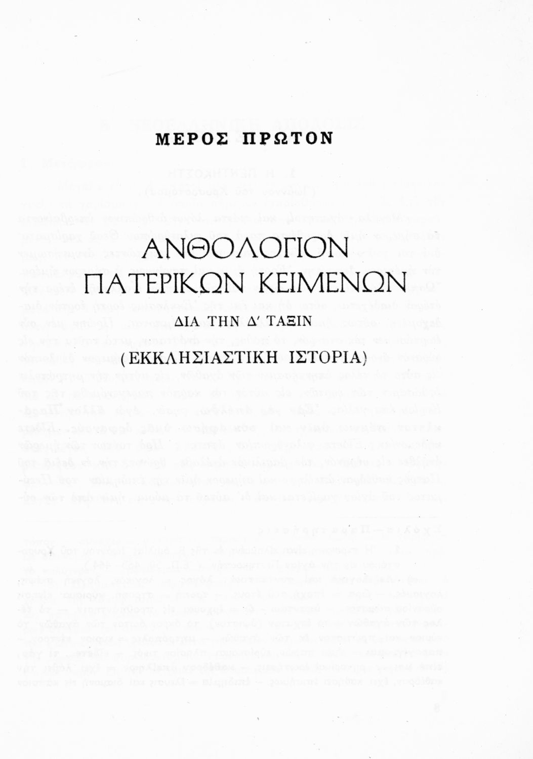 Ανθολόγιον Πατερικών Κειμένων δια τας τρεις ανωτέρας τάξεις του Γυμνασίου