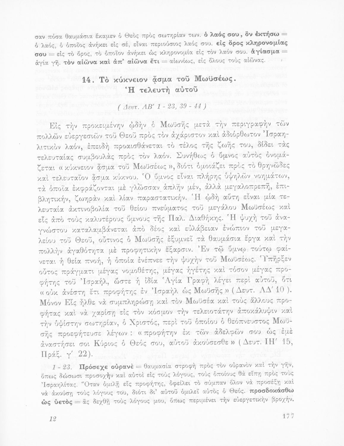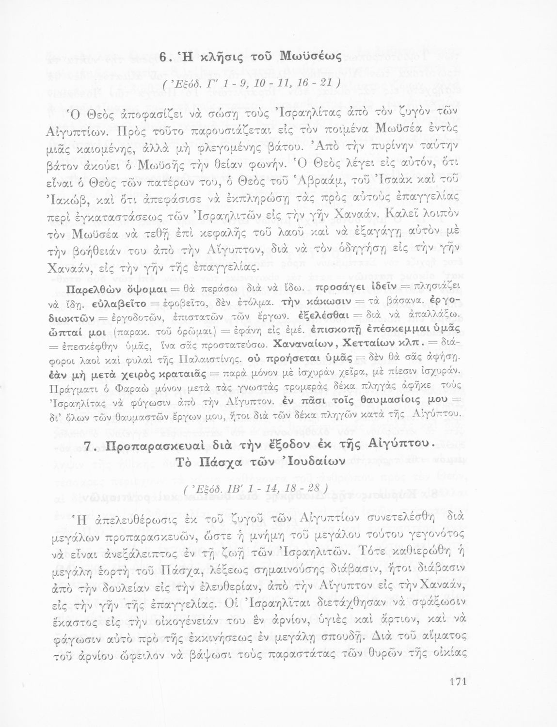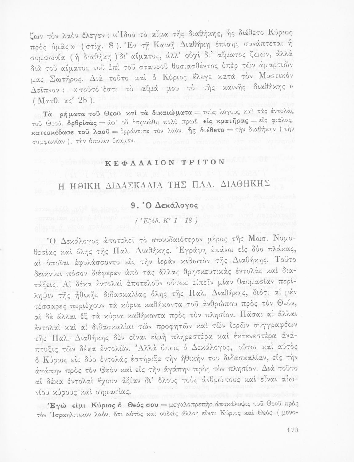 Σχολικό εγχειρίδιο Θρησκευτικών που περιλαμβάνει εισαγωγικά σχόλια στα βιβλία της Παλαιάς και Καινής Διαθήκης, περικοπές, ερμηνευτικές και πραγματολογικές σημειώσεις και πίνακα με τα κυριότερα ονόματα.