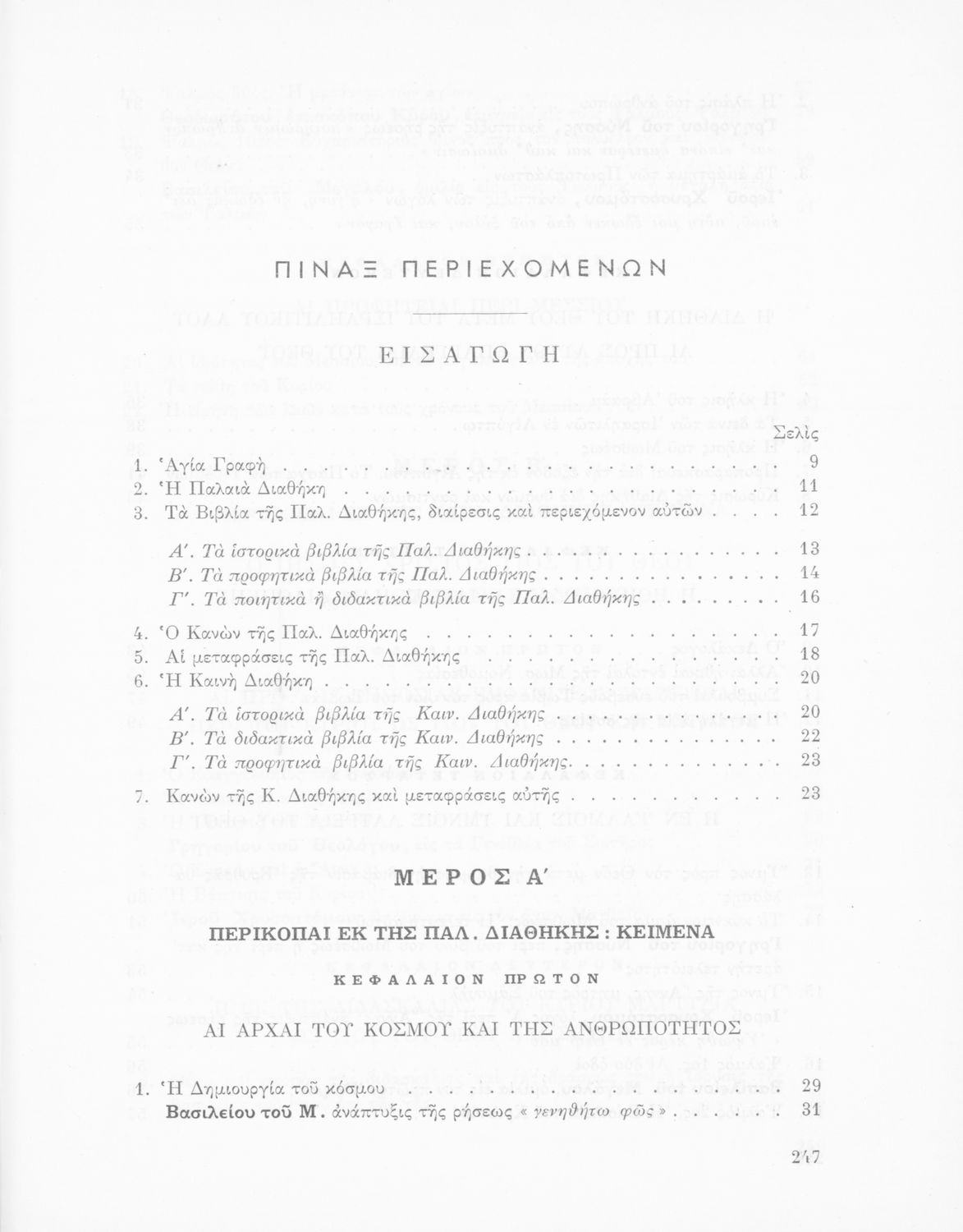 Σχολικό εγχειρίδιο Θρησκευτικών που περιλαμβάνει εισαγωγικά σχόλια στα βιβλία της Παλαιάς και Καινής Διαθήκης, περικοπές, ερμηνευτικές και πραγματολογικές σημειώσεις και πίνακα με τα κυριότερα ονόματα.