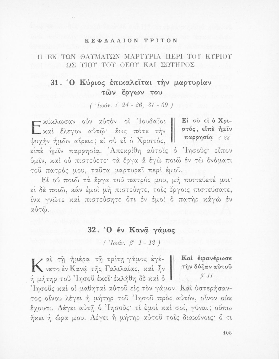 Σχολικό εγχειρίδιο Θρησκευτικών που περιλαμβάνει εισαγωγικά σχόλια στα βιβλία της Παλαιάς και Καινής Διαθήκης, περικοπές, ερμηνευτικές και πραγματολογικές σημειώσεις και πίνακα με τα κυριότερα ονόματα.