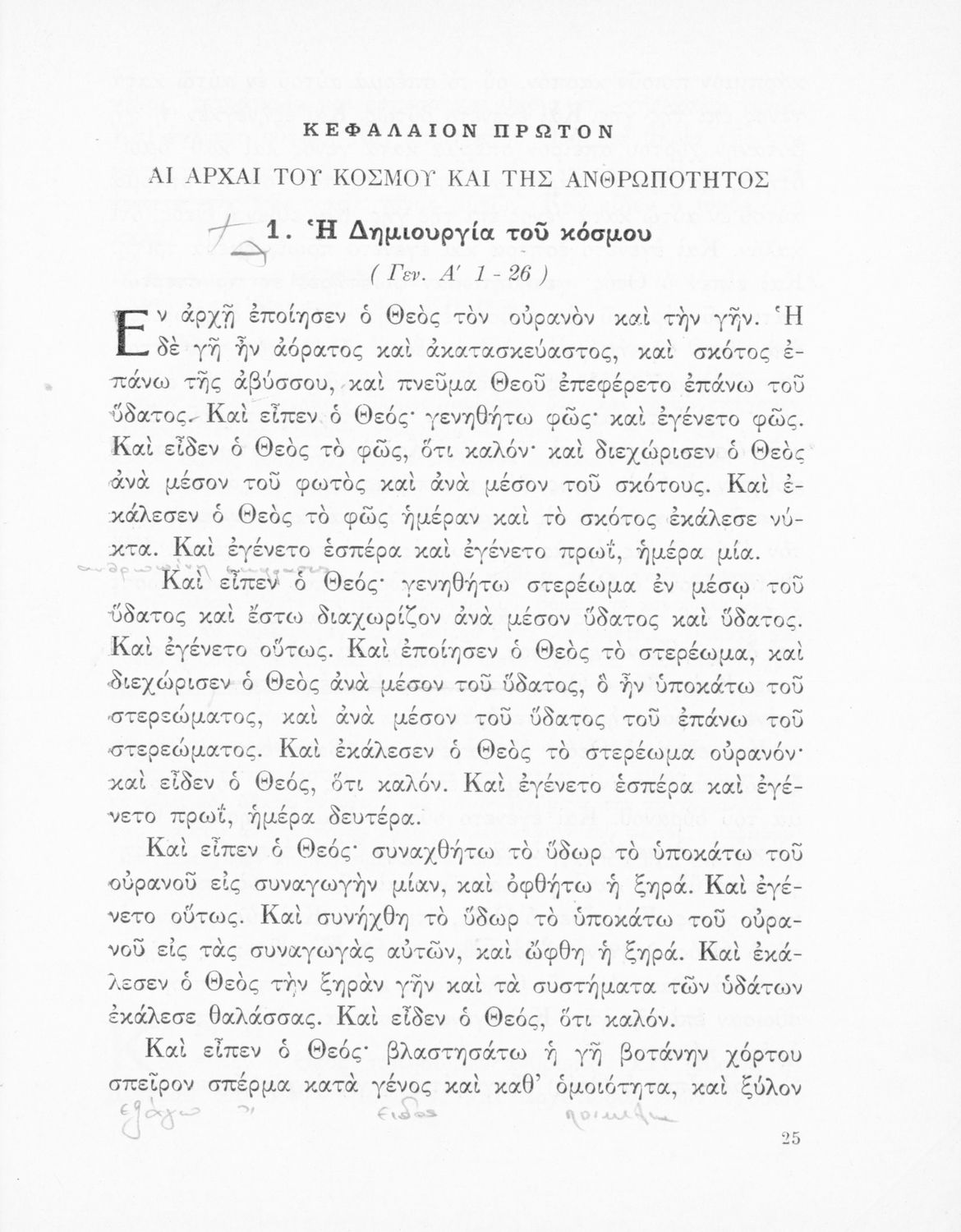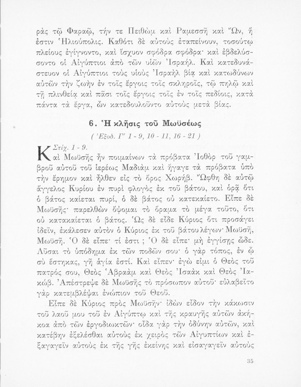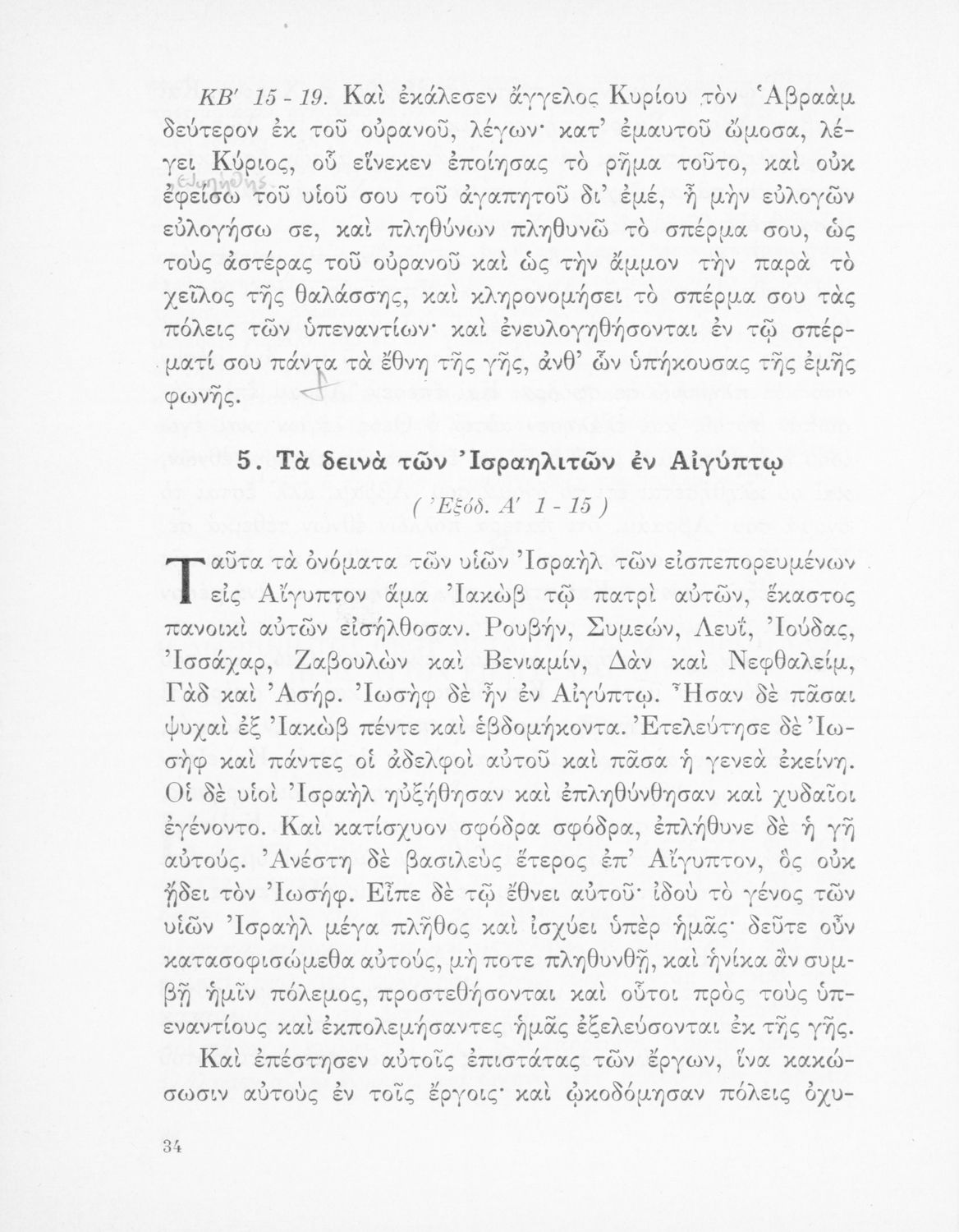 Σχολικό εγχειρίδιο Θρησκευτικών που περιλαμβάνει εισαγωγικά σχόλια στα βιβλία της Παλαιάς και Καινής Διαθήκης, περικοπές, ερμηνευτικές και πραγματολογικές σημειώσεις και πίνακα με τα κυριότερα ονόματα.