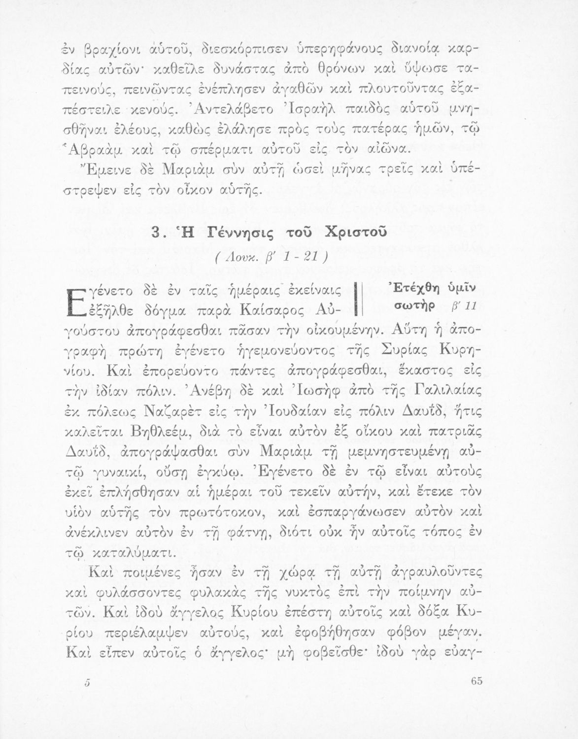 Σχολικό εγχειρίδιο Θρησκευτικών που περιλαμβάνει εισαγωγικά σχόλια στα βιβλία της Παλαιάς και Καινής Διαθήκης, περικοπές, ερμηνευτικές και πραγματολογικές σημειώσεις και πίνακα με τα κυριότερα ονόματα.