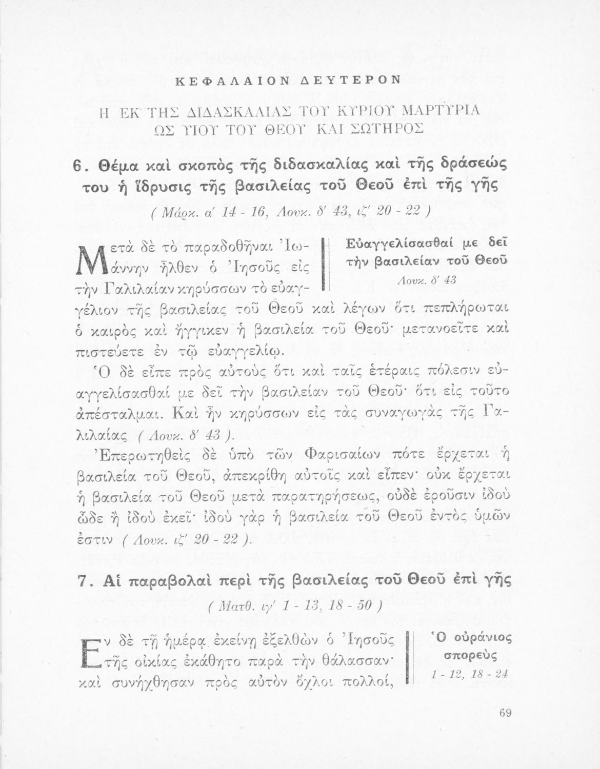 Παρουσίαση περιεχομένου: Σχολικό εγχειρίδιο Θρησκευτικών που περιλαμβάνει εισαγωγικά σχόλια στα βιβλία της Παλαιάς και Καινής Διαθήκης, περικοπές, ερμηνευτικές και πραγματολογικές σημειώσεις και πίνακα με τα κυριότερα ονόματα.