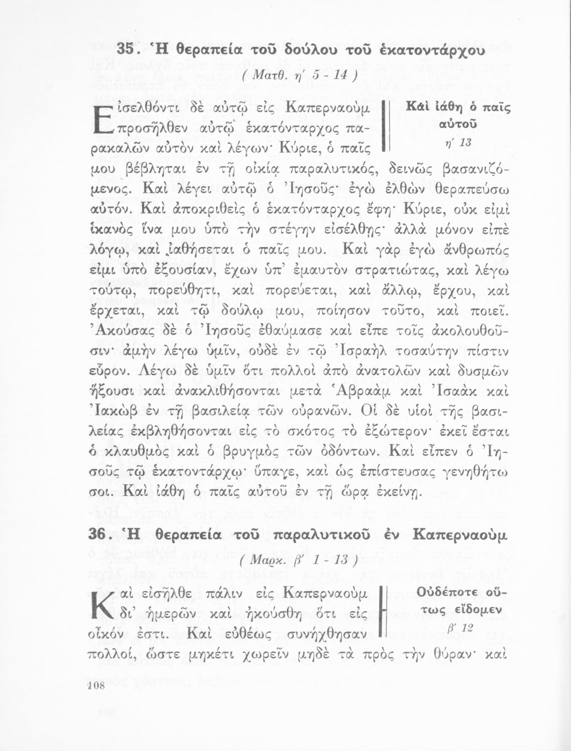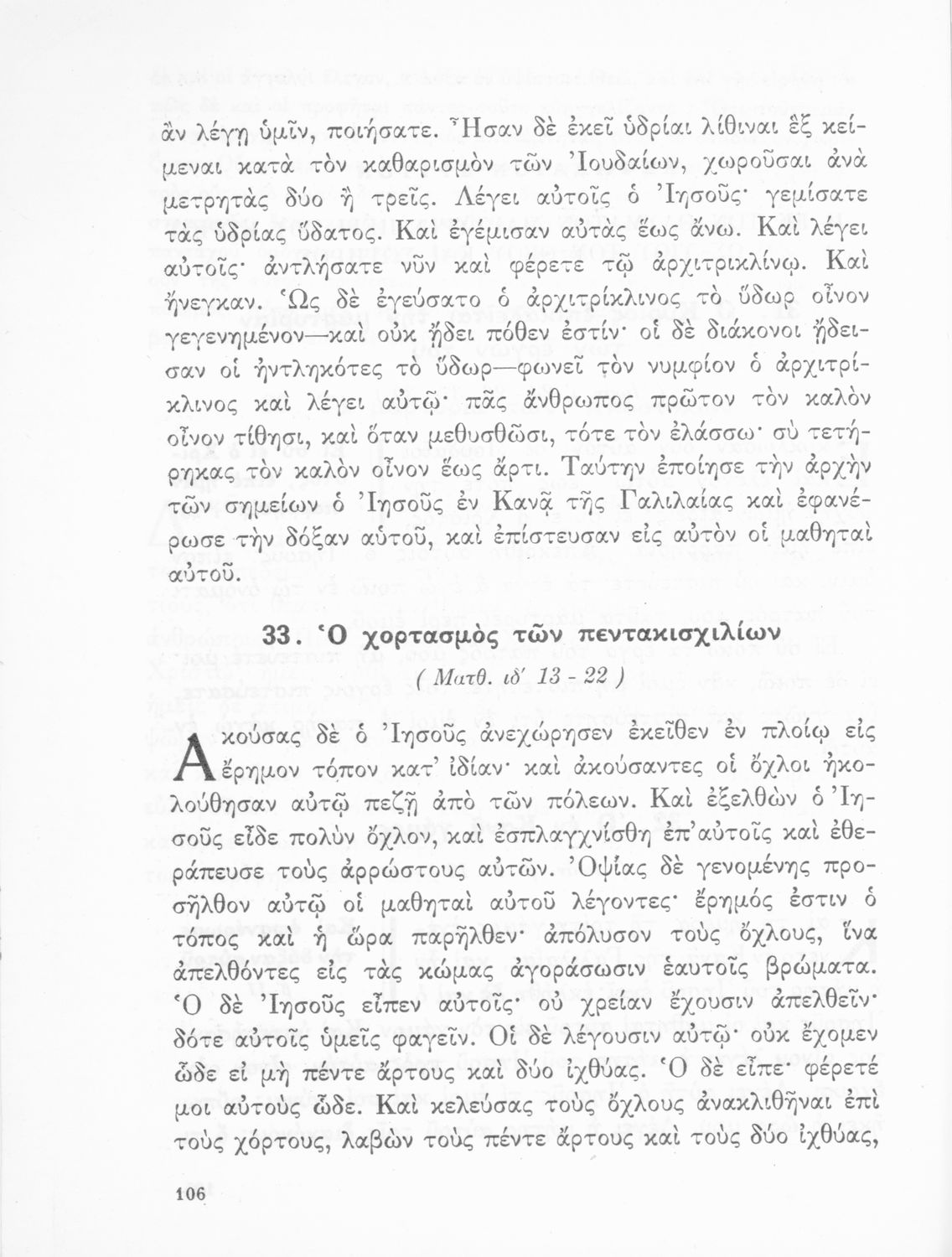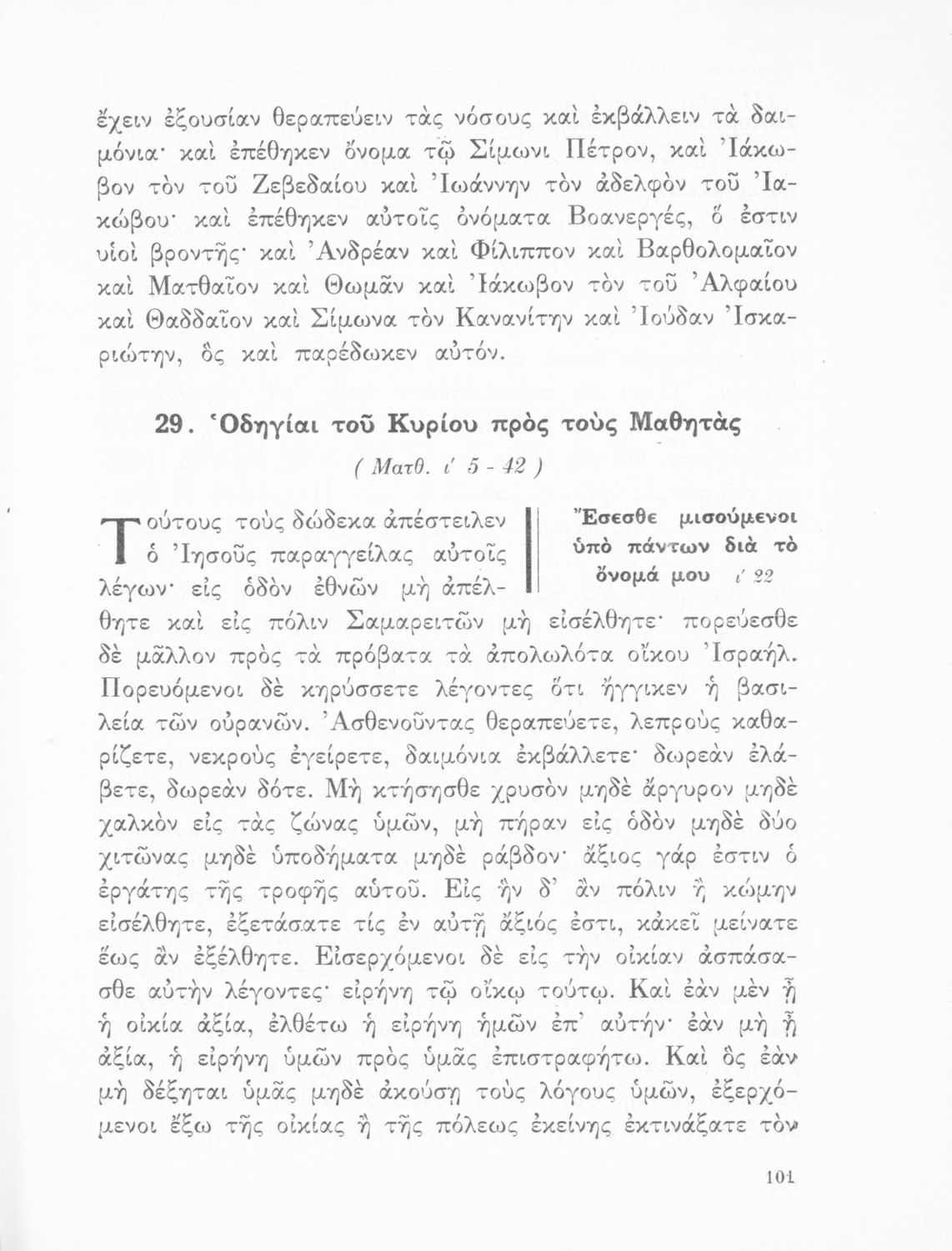 Σχολικό εγχειρίδιο Θρησκευτικών που περιλαμβάνει εισαγωγικά σχόλια στα βιβλία της Παλαιάς και Καινής Διαθήκης, περικοπές, ερμηνευτικές και πραγματολογικές σημειώσεις και πίνακα με τα κυριότερα ονόματα.