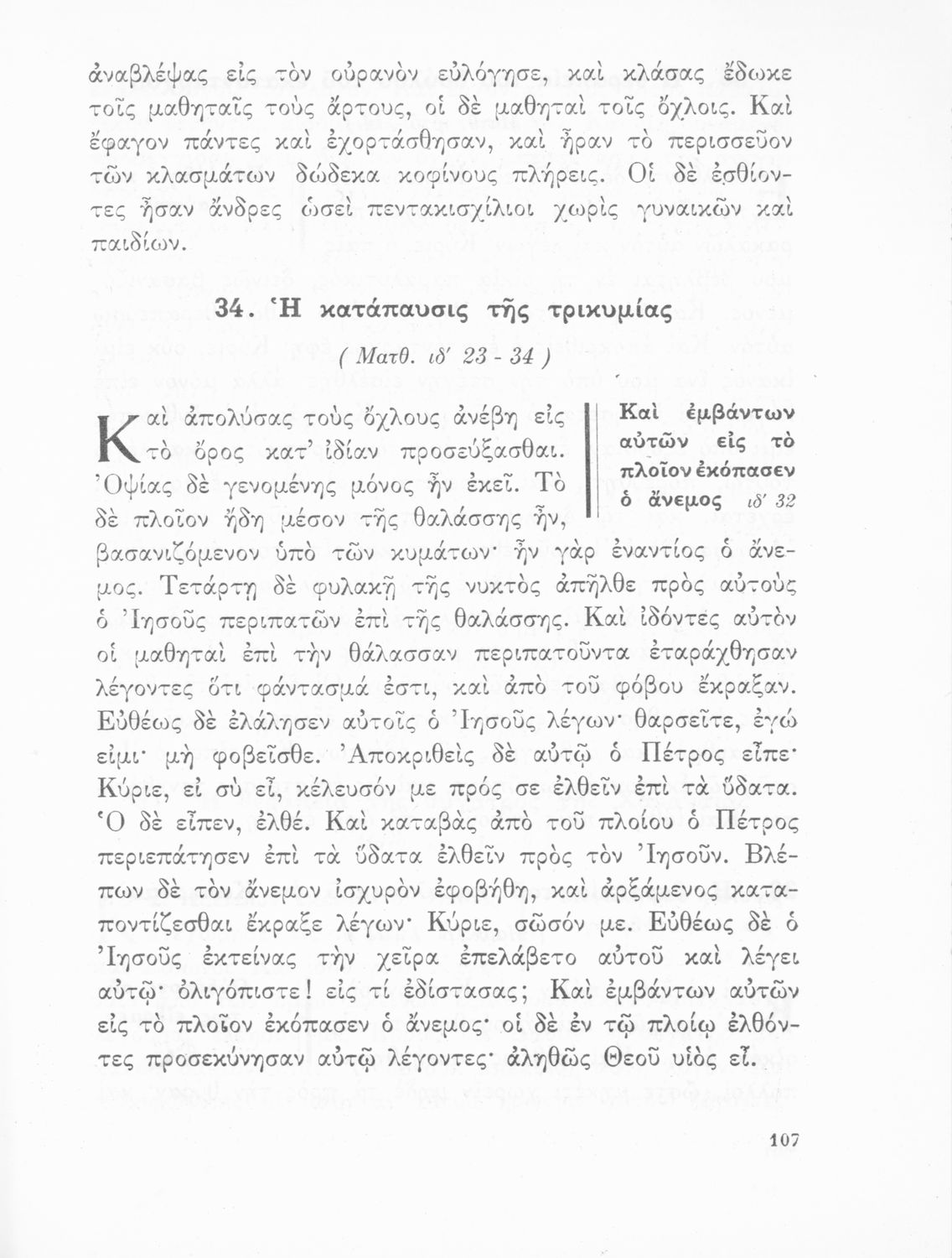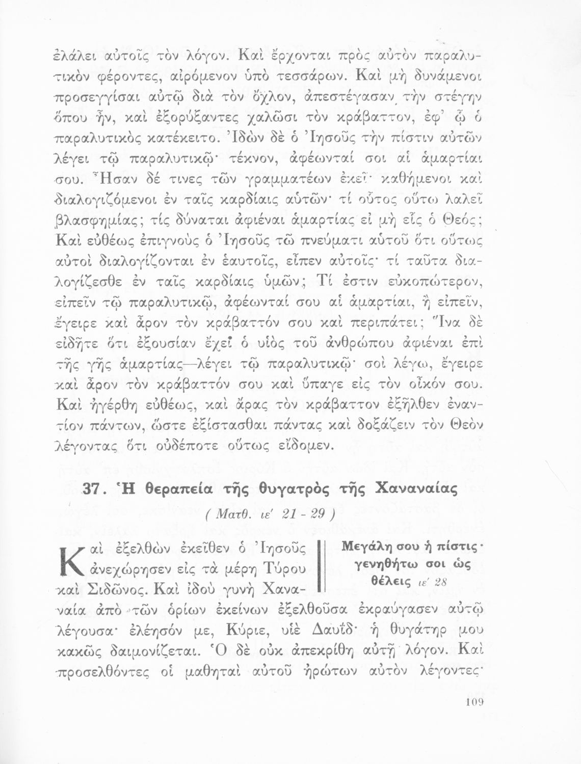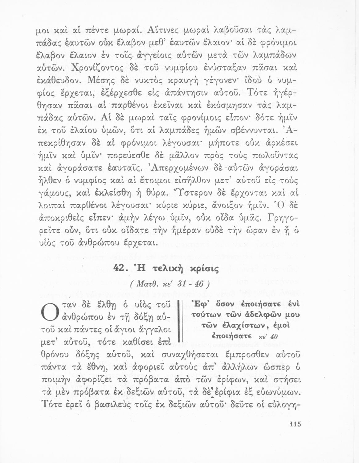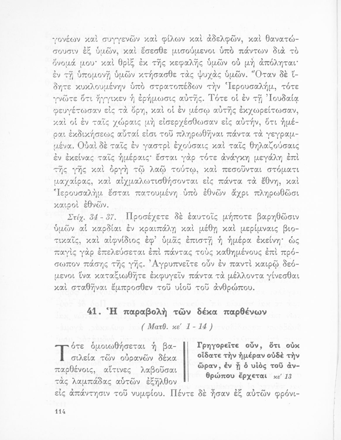 Σχολικό εγχειρίδιο Θρησκευτικών που περιλαμβάνει εισαγωγικά σχόλια στα βιβλία της Παλαιάς και Καινής Διαθήκης, περικοπές, ερμηνευτικές και πραγματολογικές σημειώσεις και πίνακα με τα κυριότερα ονόματα.