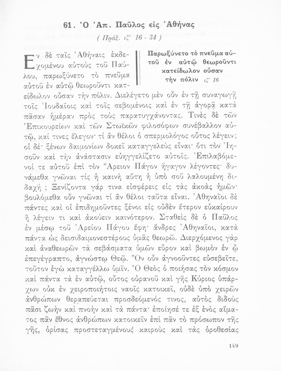 Βαθμίδα εκπαίδευσης: Δευτεροβάθμια Μάθημα: Θρησκευτικά Γλώσσα: Απλή καθαρεύουσα Παρουσίαση περιεχομένου: Σχολικό εγχειρίδιο Θρησκευτικών που περιλαμβάνει εισαγωγικά σχόλια στα βιβλία της Παλαιάς και Καινής Διαθήκης, περικοπές, ερμηνευτικές και πραγματολογικές σημειώσεις και πίνακα με τα κυριότερα ονόματα. |